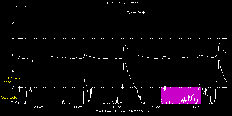 EIS Observation timeline overlay to GOES-Xray curve Code 1" 2" 40" 266" EIS Observations list for this event: STUDY ACRONYM ID DATE OBSERVED DESCRIPTION NOAA# TARGET 0 HPW021_VEL_360x512v1 | 39246 | 2014/03/18 18:23:04 | Large FOV scan of Active Region | 2005 | Active Region TIMELINE ID DATE OBSERVED FITS FILE XCEN (+W/-E) YCEN (+N/-S) DUR ----------------------------------------------------------------------------------------------------------------- 39246 | 2014/03/18 18:23:04.000 | eis_l0_20140318_182304.fits.gz | -132.05 | 338.72 | 3h5m42s : Check study information : Download file : View thumbnails For this event, also check for: