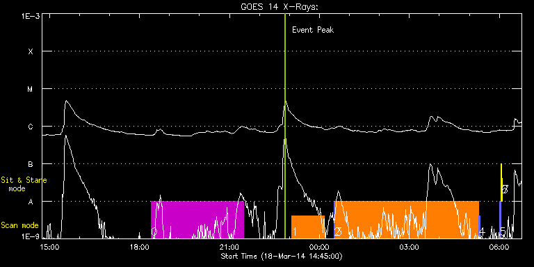 EIS Observation timeline overlay to GOES-Xray curve Code 1" 2" 40" 266" EIS Observations list for this event: STUDY ACRONYM ID DATE OBSERVED DESCRIPTION NOAA# TARGET 0 HPW021_VEL_360x512v1 | 39246 | 2014/03/18 18:23:04 | Large FOV scan of Active Region | 2005 | Active Region TIMELINE ID DATE OBSERVED FITS FILE XCEN (+W/-E) YCEN (+N/-S) DUR ----------------------------------------------------------------------------------------------------------------- 39246 | 2014/03/18 18:23:04.000 | eis_l0_20140318_182304.fits.gz | -132.05 | 338.72 | 3h5m42s 1 DHB_006 | 39247 | 2014/03/18 23:04:57 | Larger FOV scan of Active Region | 2005 | Active Region TIMELINE ID DATE OBSERVED FITS FILE XCEN (+W/-E) YCEN (+N/-S) DUR ----------------------------------------------------------------------------------------------------------------- 39247 | 2014/03/18 23:04:57.000 | eis_l0_20140318_230457.fits.gz | -103.17 | 385.27 | 1h5m23s 2 PRY_slot_context_v3 | 39248 | 2014/03/19 00:28:50 | Context image for IRIS HOP | 2007 | Active Region TIMELINE ID DATE OBSERVED FITS FILE XCEN (+W/-E) YCEN (+N/-S) DUR ----------------------------------------------------------------------------------------------------------------- 39248 | 2014/03/19 00:28:50.000 | eis_l0_20140319_002850.fits.gz | -92.26 | 339.19 | 2m56s 3 Fast_moss_scan | 39249 | 2014/03/19 00:32:12 | Extra run of Hot plage/AR moss IHOP pr | | Active Region TIMELINE ID DATE OBSERVED FITS FILE XCEN (+W/-E) YCEN (+N/-S) DUR ----------------------------------------------------------------------------------------------------------------- 39249 | 2014/03/19 00:32:12.000 | eis_l0_20140319_003212.fits.gz | -94.53 | 339.27 | 18s 39249 | 2014/03/19 00:32:33.000 | eis_l0_20140319_003233.fits.gz | -94.45 | 339.19 | 18s 39249 | 2014/03/19 00:32:54.000 | eis_l0_20140319_003254.fits.gz | -94.37 | 339.34 | 19s 39249 | 2014/03/19 00:33:15.000 | eis_l0_20140319_003315.fits.gz | -94.37 | 339.34 | 19s 39249 | 2014/03/19 00:33:37.000 | eis_l0_20140319_003337.fits.gz | -94.29 | 339.27 | 18s 39249 | 2014/03/19 00:33:58.000 | eis_l0_20140319_003358.fits.gz | -94.22 | 339.34 | 18s 39249 | 2014/03/19 00:34:19.000 | eis_l0_20140319_003419.fits.gz | -94.22 | 339.27 | 19s 39249 | 2014/03/19 00:34:40.000 | eis_l0_20140319_003440.fits.gz | -94.14 | 339.34 | 19s 39249 | 2014/03/19 00:35:02.000 | eis_l0_20140319_003502.fits.gz | -94.14 | 339.19 | 18s 39249 | 2014/03/19 00:35:23.000 | eis_l0_20140319_003523.fits.gz | -94.06 | 339.34 | 18s 39249 | 2014/03/19 00:35:44.000 | eis_l0_20140319_003544.fits.gz | -94.06 | 339.27 | 19s 39249 | 2014/03/19 00:36:06.000 | eis_l0_20140319_003606.fits.gz | -93.99 | 339.19 | 18s 39249 | 2014/03/19 00:36:27.000 | eis_l0_20140319_003627.fits.gz | -93.91 | 339.11 | 18s 39249 | 2014/03/19 00:36:48.000 | eis_l0_20140319_003648.fits.gz | -93.91 | 339.34 | 19s 39249 | 2014/03/19 00:37:09.000 | eis_l0_20140319_003709.fits.gz | -93.83 | 339.34 | 19s 39249 | 2014/03/19 00:37:30.000 | eis_l0_20140319_003730.fits.gz | -93.83 | 339.27 | 19s 39249 | 2014/03/19 00:37:52.000 | eis_l0_20140319_003752.fits.gz | -93.83 | 339.42 | 18s 39249 | 2014/03/19 00:38:13.000 | eis_l0_20140319_003813.fits.gz | -93.68 | 339.34 | 18s 39249 | 2014/03/19 00:38:34.000 | eis_l0_20140319_003834.fits.gz | -93.60 | 339.27 | 19s 39249 | 2014/03/19 00:38:56.000 | eis_l0_20140319_003856.fits.gz | -93.52 | 339.27 | 18s 39249 | 2014/03/19 00:39:17.000 | eis_l0_20140319_003917.fits.gz | -93.44 | 339.42 | 18s 39249 | 2014/03/19 00:39:38.000 | eis_l0_20140319_003938.fits.gz | -93.52 | 339.34 | 18s 39249 | 2014/03/19 00:39:59.000 | eis_l0_20140319_003959.fits.gz | -93.37 | 339.34 | 19s 39249 | 2014/03/19 00:40:21.000 | eis_l0_20140319_004021.fits.gz | -93.37 | 339.27 | 18s 39249 | 2014/03/19 00:40:42.000 | eis_l0_20140319_004042.fits.gz | -93.29 | 339.42 | 18s 39249 | 2014/03/19 00:41:03.000 | eis_l0_20140319_004103.fits.gz | -93.21 | 339.34 | 19s 39249 | 2014/03/19 00:41:25.000 | eis_l0_20140319_004125.fits.gz | -93.21 | 339.42 | 18s 39249 | 2014/03/19 00:41:46.000 | eis_l0_20140319_004146.fits.gz | -93.06 | 339.34 | 19s 39249 | 2014/03/19 00:42:07.000 | eis_l0_20140319_004207.fits.gz | -93.06 | 339.27 | 19s 39249 | 2014/03/19 00:42:29.000 | eis_l0_20140319_004229.fits.gz | -92.98 | 339.42 | 18s 39249 | 2014/03/19 00:42:50.000 | eis_l0_20140319_004250.fits.gz | -92.90 | 339.34 | 18s 39249 | 2014/03/19 00:43:11.000 | eis_l0_20140319_004311.fits.gz | -92.98 | 339.34 | 19s 39249 | 2014/03/19 00:43:33.000 | eis_l0_20140319_004333.fits.gz | -92.83 | 339.27 | 18s 39249 | 2014/03/19 00:43:54.000 | eis_l0_20140319_004354.fits.gz | -92.83 | 339.34 | 18s 39249 | 2014/03/19 00:44:15.000 | eis_l0_20140319_004415.fits.gz | -92.75 | 339.27 | 19s 39249 | 2014/03/19 00:44:37.000 | eis_l0_20140319_004437.fits.gz | -92.67 | 339.42 | 18s 39249 | 2014/03/19 00:44:58.000 | eis_l0_20140319_004458.fits.gz | -92.59 | 339.27 | 18s 39249 | 2014/03/19 00:45:19.000 | eis_l0_20140319_004519.fits.gz | -92.59 | 339.27 | 19s 39249 | 2014/03/19 00:45:41.000 | eis_l0_20140319_004541.fits.gz | -92.52 | 339.34 | 18s 39249 | 2014/03/19 00:46:02.000 | eis_l0_20140319_004602.fits.gz | -92.44 | 339.27 | 18s 39249 | 2014/03/19 00:46:23.000 | eis_l0_20140319_004623.fits.gz | -92.44 | 339.27 | 18s 39249 | 2014/03/19 00:46:44.000 | eis_l0_20140319_004644.fits.gz | -92.36 | 339.34 | 19s 39249 | 2014/03/19 00:47:06.000 | eis_l0_20140319_004706.fits.gz | -92.29 | 339.50 | 18s 39249 | 2014/03/19 00:47:27.000 | eis_l0_20140319_004727.fits.gz | -92.21 | 339.34 | 19s 39249 | 2014/03/19 00:47:48.000 | eis_l0_20140319_004748.fits.gz | -92.13 | 339.19 | 19s 39249 | 2014/03/19 00:48:10.000 | eis_l0_20140319_004810.fits.gz | -92.13 | 339.27 | 18s 39249 | 2014/03/19 00:48:31.000 | eis_l0_20140319_004831.fits.gz | -92.05 | 339.27 | 18s 39249 | 2014/03/19 00:48:52.000 | eis_l0_20140319_004852.fits.gz | -92.05 | 339.27 | 19s 39249 | 2014/03/19 00:49:13.000 | eis_l0_20140319_004913.fits.gz | -92.05 | 339.19 | 19s 39249 | 2014/03/19 00:49:35.000 | eis_l0_20140319_004935