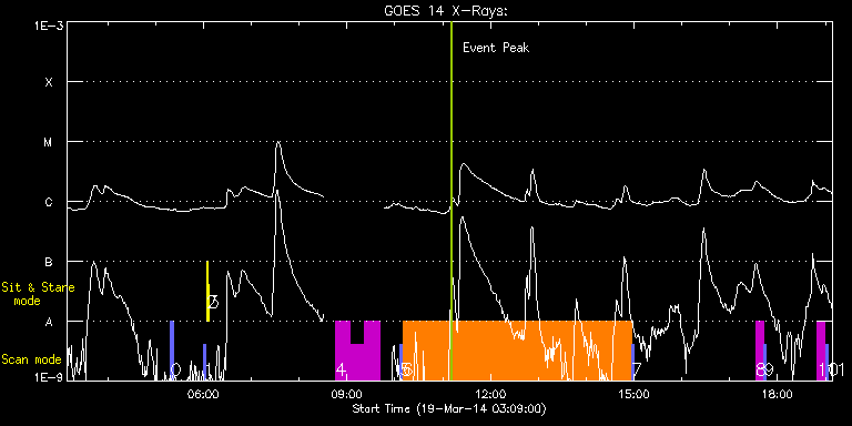 EIS Observation timeline overlay to GOES-Xray curve Code 1" 2" 40" 266" EIS Observations list for this event: STUDY ACRONYM ID DATE OBSERVED DESCRIPTION NOAA# TARGET 0 PRY_slot_context_v3 | 39250 | 2014/03/19 05:19:03 | Context image for IRIS HOP | 2005 | Active Region TIMELINE ID DATE OBSERVED FITS FILE XCEN (+W/-E) YCEN (+N/-S) DUR ----------------------------------------------------------------------------------------------------------------- 39250 | 2014/03/19 05:19:03.000 | eis_l0_20140319_051903.fits.gz | -48.69 | 338.57 | 2m56s 1 PRY_slot_contextLITE | 39192 | 2014/03/19 06:00:40 | Change of EIS pointing and alignment w | | Active Region TIMELINE ID DATE OBSERVED FITS FILE XCEN (+W/-E) YCEN (+N/-S) DUR ----------------------------------------------------------------------------------------------------------------- 39192 | 2014/03/19 06:00:40.000 | eis_l0_20140319_060040.fits.gz | -15.14 | -0.65 | 2m56s 2 Alignment_266 | 39193 | 2014/03/19 06:03:55 | Change of EIS pointing and alignment w | | Quiet Sun TIMELINE ID DATE OBSERVED FITS FILE XCEN (+W/-E) YCEN (+N/-S) DUR ----------------------------------------------------------------------------------------------------------------- 39193 | 2014/03/19 06:03:55.000 | eis_l0_20140319_060355.fits.gz | -132.57 | -0.58 | 1m22s 3 XRT_synop_AIA | 39194 | 2014/03/19 06:06:29 | Change of EIS pointing and alignment w | | Quiet Sun TIMELINE ID DATE OBSERVED FITS FILE XCEN (+W/-E) YCEN (+N/-S) DUR ----------------------------------------------------------------------------------------------------------------- 39194 | 2014/03/19 06:06:29.000 | eis_l0_20140319_060629.fits.gz | -132.49 | -0.50 | 10s 4 YK_AR_50x384 | 39251 | 2014/03/19 08:45:34 | High speed flows associated with chrom | | Active Region TIMELINE ID DATE OBSERVED FITS FILE XCEN (+W/-E) YCEN (+N/-S) DUR ----------------------------------------------------------------------------------------------------------------- 39251 | 2014/03/19 08:45:34.000 | eis_l0_20140319_084534.fits.gz | 190.48 | 289.59 | 18m24s 39251 | 2014/03/19 09:04:02.000 | eis_l0_20140319_090402.fits.gz | 193.26 | 289.29 | 18m23s 39251 | 2014/03/19 09:22:28.000 | eis_l0_20140319_092228.fits.gz | 195.96 | 289.36 | 18m24s 5 PRY_slot_context_v3 | 39243 | 2014/03/19 10:06:33 | Context image for IRIS HOP | 2005 | Active Region TIMELINE ID DATE OBSERVED FITS FILE XCEN (+W/-E) YCEN (+N/-S) DUR ----------------------------------------------------------------------------------------------------------------- 39243 | 2014/03/19 10:06:33.000 | eis_l0_20140319_100633.fits.gz | -5.51 | 344.65 | 2m56s 6 Fast_moss_scan | 39244 | 2014/03/19 10:09:55 | Hot plage/AR moss. | | Active Region TIMELINE ID DATE OBSERVED FITS FILE XCEN (+W/-E) YCEN (+N/-S) DUR ----------------------------------------------------------------------------------------------------------------- 39244 | 2014/03/19 10:09:55.000 | eis_l0_20140319_100955.fits.gz | -7.70 | 339.57 | 18s 39244 | 2014/03/19 10:10:16.000 | eis_l0_20140319_101016.fits.gz | -7.62 | 339.50 | 18s 39244 | 2014/03/19 10:10:37.000 | eis_l0_20140319_101037.fits.gz | -7.62 | 339.57 | 19s 39244 | 2014/03/19 10:10:58.000 | eis_l0_20140319_101058.fits.gz | -7.55 | 339.57 | 19s 39244 | 2014/03/19 10:11:20.000 | eis_l0_20140319_101120.fits.gz | -7.55 | 339.50 | 18s 39244 | 2014/03/19 10:11:41.000 | eis_l0_20140319_101141.fits.gz | -7.39 | 339.57 | 18s 39244 | 2014/03/19 10:12:02.000 | eis_l0_20140319_101202.fits.gz | -7.39 | 339.73 | 19s 39244 | 2014/03/19 10:12:24.000 | eis_l0_20140319_101224.fits.gz | -7.39 | 339.57 | 18s 39244 | 2014/03/19 10:12:45.000 | eis_l0_20140319_101245.fits.gz | -7.31 | 339.50 | 18s 39244 | 2014/03/19 10:13:06.000 | eis_l0_20140319_101306.fits.gz | -7.24 | 339.65 | 19s 39244 | 2014/03/19 10:13:27.000 | eis_l0_20140319_101327.fits.gz | -7.16 | 339.57 | 19s 39244 | 2014/03/19 10:13:49.000 | eis_l0_20140319_101349.fits.gz | -7.16 | 339.57 | 18s 39244 | 2014/03/19 10:14:10.000 | eis_l0_20140319_101410.fits.gz | -7.08 | 339.65 | 18s 39244 | 2014/03/19 10:14:31.000 | eis_l0_20140319_101431.fits.gz | -7.08 | 339.50 | 19s 39244 | 2014/03/19 10:14:53.000 | eis_l0_20140319_101453.fits.gz | -7.00 | 339.65 | 18s 39244 | 2014/03/19 10:15:14.000 | eis_l0_20140319_101514.fits.gz | -6.93 | 339.57 | 18s 39244 | 2014/03/19 10:15:35.000 | eis_l0_20140319_101535.fits.gz | -6.93 | 339.65 | 19s 39244 | 2014/03/19 10:15:57.000 | eis_l0_20140319_101557.fits.gz | -6.85 | 339.57 | 18s 39244 | 2014/03/19 10:16:18.000 | eis_l0_20140319_101618.fits.gz | -6.77 | 339.65 | 18s 39244 | 2014/03/19 10:16:39.000 | eis_l0_20140319_101639.fits.gz | -6.70 | 339.50 | 19s 39244 | 2014/03/19 10:17:01.000 | eis_l0_20140319_101701.fits.gz | -6.70 | 339.65 | 18s 39244 | 2014/03/19 10:17:22.000 | eis_l0_20140319_101722.fits.gz | -6.62 | 339.57 | 18s 39244 | 2014/03/19 10:17:43.000 | eis_l0_20140319_101743.fits.gz | -6.54 | 339.57 | 18s 39244 | 2014/03/19 10:18:04.000 | eis_l0_20140319_101804.fits.gz | -6.54 | 339.57 | 19s 39244 | 2014/03/19 10:18:26.000 | eis_l0_20140319_101826.fits.gz | -6.46 | 339.65 | 18s 39244 | 2014/03/19 10:18:47.000 | eis_l0_20140319_101847.fits.gz | -6.39 | 339.50 | 18s 39244 | 2014/03/19 10:19:08.000 | eis_l0_20140319_101908.fits.gz | -6.39 | 339.65 | 19s 39244 | 2014/03/19 10:19:30.000 | eis_l0_20140319_101930.fits.gz | -6.39 | 339.73 | 18s 39244 | 2014/03/19 10:19:51.000 | eis_l0_20140319_101951.fits.gz | -6.31 | 339.65 | 18s 39244 | 2014/03/19 10:20:12.000 | eis_l0_20140319_102012.fits.gz | -6.23 | 339.65 | 18s 39244 | 2014/03/19 10:20:33.000 | eis_l0_20140319_102033.fits.gz | -6.15 | 339.65 | 19s 39244 | 2014/03/19 10:20:55.000 | eis_l0_20140319_102055.fits.gz | -6.08 | 339.65 | 18s 39244 | 2014/03/19 10:21:16.000 | eis_l0_20140319_102116.fits.gz | -6.00 | 339.65 | 18s 39244 | 2014/03/19 10:21:59.000 | eis_l0_20140319_102159.fits.gz | -5.92 | 339.50 | 18s 39244 | 2014/03/19 10:22:20.000 | eis_l0_20140319_102220.fits.gz | -5.77 | 339.57 | 18s 39244 | 2014/03/19 10:22:41.000 | eis_l0_20140319_10224