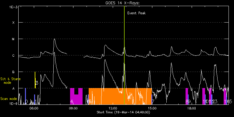 EIS Observation timeline overlay to GOES-Xray curve Code 1" 2" 40" 266" EIS Observations list for this event: STUDY ACRONYM ID DATE OBSERVED DESCRIPTION NOAA# TARGET 0 PRY_slot_context_v3 | 39250 | 2014/03/19 05:19:03 | Context image for IRIS HOP | 2005 | Active Region TIMELINE ID DATE OBSERVED FITS FILE XCEN (+W/-E) YCEN (+N/-S) DUR ----------------------------------------------------------------------------------------------------------------- 39250 | 2014/03/19 05:19:03.000 | eis_l0_20140319_051903.fits.gz | -48.69 | 338.57 | 2m56s 1 PRY_slot_contextLITE | 39192 | 2014/03/19 06:00:40 | Change of EIS pointing and alignment w | | Active Region TIMELINE ID DATE OBSERVED FITS FILE XCEN (+W/-E) YCEN (+N/-S) DUR ----------------------------------------------------------------------------------------------------------------- 39192 | 2014/03/19 06:00:40.000 | eis_l0_20140319_060040.fits.gz | -15.14 | -0.65 | 2m56s 2 Alignment_266 | 39193 | 2014/03/19 06:03:55 | Change of EIS pointing and alignment w | | Quiet Sun TIMELINE ID DATE OBSERVED FITS FILE XCEN (+W/-E) YCEN (+N/-S) DUR ----------------------------------------------------------------------------------------------------------------- 39193 | 2014/03/19 06:03:55.000 | eis_l0_20140319_060355.fits.gz | -132.57 | -0.58 | 1m22s 3 XRT_synop_AIA | 39194 | 2014/03/19 06:06:29 | Change of EIS pointing and alignment w | | Quiet Sun TIMELINE ID DATE OBSERVED FITS FILE XCEN (+W/-E) YCEN (+N/-S) DUR ----------------------------------------------------------------------------------------------------------------- 39194 | 2014/03/19 06:06:29.000 | eis_l0_20140319_060629.fits.gz | -132.49 | -0.50 | 10s 4 YK_AR_50x384 | 39251 | 2014/03/19 08:45:34 | High speed flows associated with chrom | | Active Region TIMELINE ID DATE OBSERVED FITS FILE XCEN (+W/-E) YCEN (+N/-S) DUR ----------------------------------------------------------------------------------------------------------------- 39251 | 2014/03/19 08:45:34.000 | eis_l0_20140319_084534.fits.gz | 190.48 | 289.59 | 18m24s 39251 | 2014/03/19 09:04:02.000 | eis_l0_20140319_090402.fits.gz | 193.26 | 289.29 | 18m23s 39251 | 2014/03/19 09:22:28.000 | eis_l0_20140319_092228.fits.gz | 195.96 | 289.36 | 18m24s 5 PRY_slot_context_v3 | 39243 | 2014/03/19 10:06:33 | Context image for IRIS HOP | 2005 | Active Region TIMELINE ID DATE OBSERVED FITS FILE XCEN (+W/-E) YCEN (+N/-S) DUR ----------------------------------------------------------------------------------------------------------------- 39243 | 2014/03/19 10:06:33.000 | eis_l0_20140319_100633.fits.gz | -5.51 | 344.65 | 2m56s 6 Fast_moss_scan | 39244 | 2014/03/19 10:09:55 | Hot plage/AR moss. | | Active Region TIMELINE ID DATE OBSERVED FITS FILE XCEN (+W/-E) YCEN (+N/-S) DUR ----------------------------------------------------------------------------------------------------------------- 39244 | 2014/03/19 10:09:55.000 | eis_l0_20140319_100955.fits.gz | -7.70 | 339.57 | 18s 39244 | 2014/03/19 10:10:16.000 | eis_l0_20140319_101016.fits.gz | -7.62 | 339.50 | 18s 39244 | 2014/03/19 10:10:37.000 | eis_l0_20140319_101037.fits.gz | -7.62 | 339.57 | 19s 39244 | 2014/03/19 10:10:58.000 | eis_l0_20140319_101058.fits.gz | -7.55 | 339.57 | 19s 39244 | 2014/03/19 10:11:20.000 | eis_l0_20140319_101120.fits.gz | -7.55 | 339.50 | 18s 39244 | 2014/03/19 10:11:41.000 | eis_l0_20140319_101141.fits.gz | -7.39 | 339.57 | 18s 39244 | 2014/03/19 10:12:02.000 | eis_l0_20140319_101202.fits.gz | -7.39 | 339.73 | 19s 39244 | 2014/03/19 10:12:24.000 | eis_l0_20140319_101224.fits.gz | -7.39 | 339.57 | 18s 39244 | 2014/03/19 10:12:45.000 | eis_l0_20140319_101245.fits.gz | -7.31 | 339.50 | 18s 39244 | 2014/03/19 10:13:06.000 | eis_l0_20140319_101306.fits.gz | -7.24 | 339.65 | 19s 39244 | 2014/03/19 10:13:27.000 | eis_l0_20140319_101327.fits.gz | -7.16 | 339.57 | 19s 39244 | 2014/03/19 10:13:49.000 | eis_l0_20140319_101349.fits.gz | -7.16 | 339.57 | 18s 39244 | 2014/03/19 10:14:10.000 | eis_l0_20140319_101410.fits.gz | -7.08 | 339.65 | 18s 39244 | 2014/03/19 10:14:31.000 | eis_l0_20140319_101431.fits.gz | -7.08 | 339.50 | 19s 39244 | 2014/03/19 10:14:53.000 | eis_l0_20140319_101453.fits.gz | -7.00 | 339.65 | 18s 39244 | 2014/03/19 10:15:14.000 | eis_l0_20140319_101514.fits.gz | -6.93 | 339.57 | 18s 39244 | 2014/03/19 10:15:35.000 | eis_l0_20140319_101535.fits.gz | -6.93 | 339.65 | 19s 39244 | 2014/03/19 10:15:57.000 | eis_l0_20140319_101557.fits.gz | -6.85 | 339.57 | 18s 39244 | 2014/03/19 10:16:18.000 | eis_l0_20140319_101618.fits.gz | -6.77 | 339.65 | 18s 39244 | 2014/03/19 10:16:39.000 | eis_l0_20140319_101639.fits.gz | -6.70 | 339.50 | 19s 39244 | 2014/03/19 10:17:01.000 | eis_l0_20140319_101701.fits.gz | -6.70 | 339.65 | 18s 39244 | 2014/03/19 10:17:22.000 | eis_l0_20140319_101722.fits.gz | -6.62 | 339.57 | 18s 39244 | 2014/03/19 10:17:43.000 | eis_l0_20140319_101743.fits.gz | -6.54 | 339.57 | 18s 39244 | 2014/03/19 10:18:04.000 | eis_l0_20140319_101804.fits.gz | -6.54 | 339.57 | 19s 39244 | 2014/03/19 10:18:26.000 | eis_l0_20140319_101826.fits.gz | -6.46 | 339.65 | 18s 39244 | 2014/03/19 10:18:47.000 | eis_l0_20140319_101847.fits.gz | -6.39 | 339.50 | 18s 39244 | 2014/03/19 10:19:08.000 | eis_l0_20140319_101908.fits.gz | -6.39 | 339.65 | 19s 39244 | 2014/03/19 10:19:30.000 | eis_l0_20140319_101930.fits.gz | -6.39 | 339.73 | 18s 39244 | 2014/03/19 10:19:51.000 | eis_l0_20140319_101951.fits.gz | -6.31 | 339.65 | 18s 39244 | 2014/03/19 10:20:12.000 | eis_l0_20140319_102012.fits.gz | -6.23 | 339.65 | 18s 39244 | 2014/03/19 10:20:33.000 | eis_l0_20140319_102033.fits.gz | -6.15 | 339.65 | 19s 39244 | 2014/03/19 10:20:55.000 | eis_l0_20140319_102055.fits.gz | -6.08 | 339.65 | 18s 39244 | 2014/03/19 10:21:16.000 | eis_l0_20140319_102116.fits.gz | -6.00 | 339.65 | 18s 39244 | 2014/03/19 10:21:59.000 | eis_l0_20140319_102159.fits.gz | -5.92 | 339.50 | 18s 39244 | 2014/03/19 10:22:20.000 | eis_l0_20140319_102220.fits.gz | -5.77 | 339.57 | 18s 39244 | 2014/03/19 10:22:41.000 | eis_l0_20140319_10224