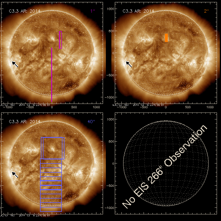 EIS Observation timeline overlay to GOES-Xray curve Code 1" 2" 40" 266" EIS Observations list for this event: STUDY ACRONYM ID DATE OBSERVED DESCRIPTION NOAA# TARGET 0 YK_AR_50x384 | 39251 | 2014/03/19 08:45:34 | High speed flows associated with chrom | | Active Region TIMELINE ID DATE OBSERVED FITS FILE XCEN (+W/-E) YCEN (+N/-S) DUR ----------------------------------------------------------------------------------------------------------------- 39251 | 2014/03/19 08:45:34.000 | eis_l0_20140319_084534.fits.gz | 190.48 | 289.59 | 18m24s 39251 | 2014/03/19 09:04:02.000 | eis_l0_20140319_090402.fits.gz | 193.26 | 289.29 | 18m23s 39251 | 2014/03/19 09:22:28.000 | eis_l0_20140319_092228.fits.gz | 195.96 | 289.36 | 18m24s 1 PRY_slot_context_v3 | 39243 | 2014/03/19 10:06:33 | Context image for IRIS HOP | 2005 | Active Region TIMELINE ID DATE OBSERVED FITS FILE XCEN (+W/-E) YCEN (+N/-S) DUR ----------------------------------------------------------------------------------------------------------------- 39243 | 2014/03/19 10:06:33.000 | eis_l0_20140319_100633.fits.gz | -5.51 | 344.65 | 2m56s 2 Fast_moss_scan | 39244 | 2014/03/19 10:09:55 | Hot plage/AR moss. | | Active Region TIMELINE ID DATE OBSERVED FITS FILE XCEN (+W/-E) YCEN (+N/-S) DUR ----------------------------------------------------------------------------------------------------------------- 39244 | 2014/03/19 10:09:55.000 | eis_l0_20140319_100955.fits.gz | -7.70 | 339.57 | 18s 39244 | 2014/03/19 10:10:16.000 | eis_l0_20140319_101016.fits.gz | -7.62 | 339.50 | 18s 39244 | 2014/03/19 10:10:37.000 | eis_l0_20140319_101037.fits.gz | -7.62 | 339.57 | 19s 39244 | 2014/03/19 10:10:58.000 | eis_l0_20140319_101058.fits.gz | -7.55 | 339.57 | 19s 39244 | 2014/03/19 10:11:20.000 | eis_l0_20140319_101120.fits.gz | -7.55 | 339.50 | 18s 39244 | 2014/03/19 10:11:41.000 | eis_l0_20140319_101141.fits.gz | -7.39 | 339.57 | 18s 39244 | 2014/03/19 10:12:02.000 | eis_l0_20140319_101202.fits.gz | -7.39 | 339.73 | 19s 39244 | 2014/03/19 10:12:24.000 | eis_l0_20140319_101224.fits.gz | -7.39 | 339.57 | 18s 39244 | 2014/03/19 10:12:45.000 | eis_l0_20140319_101245.fits.gz | -7.31 | 339.50 | 18s 39244 | 2014/03/19 10:13:06.000 | eis_l0_20140319_101306.fits.gz | -7.24 | 339.65 | 19s 39244 | 2014/03/19 10:13:27.000 | eis_l0_20140319_101327.fits.gz | -7.16 | 339.57 | 19s 39244 | 2014/03/19 10:13:49.000 | eis_l0_20140319_101349.fits.gz | -7.16 | 339.57 | 18s 39244 | 2014/03/19 10:14:10.000 | eis_l0_20140319_101410.fits.gz | -7.08 | 339.65 | 18s 39244 | 2014/03/19 10:14:31.000 | eis_l0_20140319_101431.fits.gz | -7.08 | 339.50 | 19s 39244 | 2014/03/19 10:14:53.000 | eis_l0_20140319_101453.fits.gz | -7.00 | 339.65 | 18s 39244 | 2014/03/19 10:15:14.000 | eis_l0_20140319_101514.fits.gz | -6.93 | 339.57 | 18s 39244 | 2014/03/19 10:15:35.000 | eis_l0_20140319_101535.fits.gz | -6.93 | 339.65 | 19s 39244 | 2014/03/19 10:15:57.000 | eis_l0_20140319_101557.fits.gz | -6.85 | 339.57 | 18s 39244 | 2014/03/19 10:16:18.000 | eis_l0_20140319_101618.fits.gz | -6.77 | 339.65 | 18s 39244 | 2014/03/19 10:16:39.000 | eis_l0_20140319_101639.fits.gz | -6.70 | 339.50 | 19s 39244 | 2014/03/19 10:17:01.000 | eis_l0_20140319_101701.fits.gz | -6.70 | 339.65 | 18s 39244 | 2014/03/19 10:17:22.000 | eis_l0_20140319_101722.fits.gz | -6.62 | 339.57 | 18s 39244 | 2014/03/19 10:17:43.000 | eis_l0_20140319_101743.fits.gz | -6.54 | 339.57 | 18s 39244 | 2014/03/19 10:18:04.000 | eis_l0_20140319_101804.fits.gz | -6.54 | 339.57 | 19s 39244 | 2014/03/19 10:18:26.000 | eis_l0_20140319_101826.fits.gz | -6.46 | 339.65 | 18s 39244 | 2014/03/19 10:18:47.000 | eis_l0_20140319_101847.fits.gz | -6.39 | 339.50 | 18s 39244 | 2014/03/19 10:19:08.000 | eis_l0_20140319_101908.fits.gz | -6.39 | 339.65 | 19s 39244 | 2014/03/19 10:19:30.000 | eis_l0_20140319_101930.fits.gz | -6.39 | 339.73 | 18s 39244 | 2014/03/19 10:19:51.000 | eis_l0_20140319_101951.fits.gz | -6.31 | 339.65 | 18s 39244 | 2014/03/19 10:20:12.000 | eis_l0_20140319_102012.fits.gz | -6.23 | 339.65 | 18s 39244 | 2014/03/19 10:20:33.000 | eis_l0_20140319_102033.fits.gz | -6.15 | 339.65 | 19s 39244 | 2014/03/19 10:20:55.000 | eis_l0_20140319_102055.fits.gz | -6.08 | 339.65 | 18s 39244 | 2014/03/19 10:21:16.000 | eis_l0_20140319_102116.fits.gz | -6.00 | 339.65 | 18s 39244 | 2014/03/19 10:21:59.000 | eis_l0_20140319_102159.fits.gz | -5.92 | 339.50 | 18s 39244 | 2014/03/19 10:22:20.000 | eis_l0_20140319_102220.fits.gz | -5.77 | 339.57 | 18s 39244 | 2014/03/19 10:22:41.000 | eis_l0_20140319_102241.fits.gz | -5.85 | 339.73 | 18s 39244 | 2014/03/19 10:23:02.000 | eis_l0_20140319_102302.fits.gz | -5.77 | 339.57 | 19s 39244 | 2014/03/19 10:23:24.000 | eis_l0_20140319_102324.fits.gz | -5.69 | 339.57 | 18s 39244 | 2014/03/19 10:23:45.000 | eis_l0_20140319_102345.fits.gz | -5.61 | 339.65 | 18s 39244 | 2014/03/19 10:24:06.000 | eis_l0_20140319_102406.fits.gz | -5.54 | 339.57 | 19s 39244 | 2014/03/19 10:24:28.000 | eis_l0_20140319_102428.fits.gz | -5.54 | 339.57 | 18s 39244 | 2014/03/19 10:24:49.000 | eis_l0_20140319_102449.fits.gz | -5.38 | 339.57 | 18s 39244 | 2014/03/19 10:25:10.000 | eis_l0_20140319_102510.fits.gz | -5.46 | 339.57 | 19s 39244 | 2014/03/19 10:25:31.000 | eis_l0_20140319_102531.fits.gz | -5.38 | 339.57 | 19s 39244 | 2014/03/19 10:25:53.000 | eis_l0_20140319_102553.fits.gz | -5.31 | 339.65 | 18s 39244 | 2014/03/19 10:26:14.000 | eis_l0_20140319_102614.fits.gz | -5.23 | 339.57 | 19s 39244 | 2014/03/19 10:26:36.000 | eis_l0_20140319_102636.fits.gz | -5.23 | 339.65 | 18s 39244 | 2014/03/19 10:26:57.000 | eis_l0_20140319_102657.fits.gz | -5.23 | 339.57 | 18s 39244 | 2014/03/19 10:27:18.000 | eis_l0_20140319_102718.fits.gz | -5.07 | 339.57 | 18s 39244 | 2014/03/19 10:27:39.000 | eis_l0_20140319_102739.fits.gz | -5.07 | 339.65 | 19s 39244 | 2014/03/19 10:28:00.000 | eis_l0_20140319_102800.fits.gz | -5.00 | 339.57 | 19s 39244 | 2014/03/19 10:28:22.000 | eis_l0_20140319_102822.fits.gz | -4.92 | 339.65 | 18s 39244 | 2014/03/19 10:28:43.000 | eis_l0_20140319_102843.f