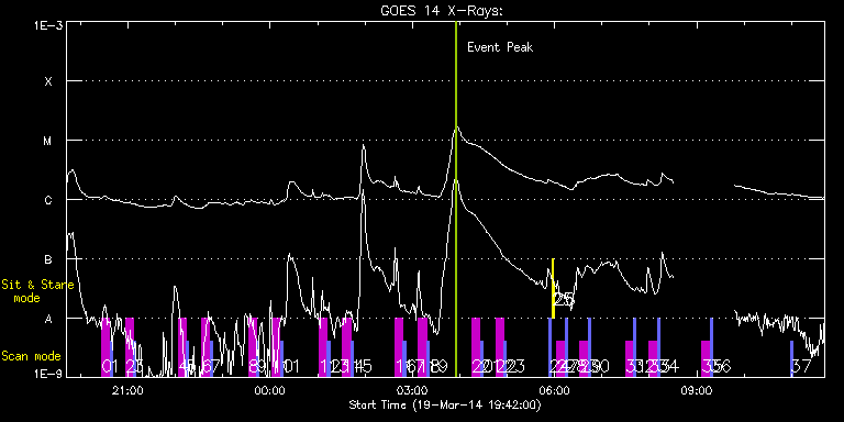 EIS Observation timeline overlay to GOES-Xray curve Code 1" 2" 40" 266" EIS Observations list for this event: STUDY ACRONYM ID DATE OBSERVED DESCRIPTION NOAA# TARGET 0 SK_DEEP_5x512_SLIT1 | 39209 | 2014/03/19 20:26:49 | Synoptic SOT Irradiance Scans | | Quiet Sun TIMELINE ID DATE OBSERVED FITS FILE XCEN (+W/-E) YCEN (+N/-S) DUR ----------------------------------------------------------------------------------------------------------------- 39209 | 2014/03/19 20:26:49.000 | eis_l0_20140319_202649.fits.gz | -7.89 | -647.22 | 10m8s 1 PRY_slot_contextLITE | 39210 | 2014/03/19 20:37:23 | Synoptic SOT Irradiance Scans | | Active Region TIMELINE ID DATE OBSERVED FITS FILE XCEN (+W/-E) YCEN (+N/-S) DUR ----------------------------------------------------------------------------------------------------------------- 39210 | 2014/03/19 20:37:23.000 | eis_l0_20140319_203723.fits.gz | -22.94 | -647.37 | 2m56s 2 SK_DEEP_5x512_SLIT1 | 39211 | 2014/03/19 20:56:49 | Synoptic SOT Irradiance Scans | | Quiet Sun TIMELINE ID DATE OBSERVED FITS FILE XCEN (+W/-E) YCEN (+N/-S) DUR ----------------------------------------------------------------------------------------------------------------- 39211 | 2014/03/19 20:56:49.000 | eis_l0_20140319_205649.fits.gz | -7.89 | -547.26 | 10m8s 3 PRY_slot_contextLITE | 39212 | 2014/03/19 21:07:22 | Synoptic SOT Irradiance Scans | | Active Region TIMELINE ID DATE OBSERVED FITS FILE XCEN (+W/-E) YCEN (+N/-S) DUR ----------------------------------------------------------------------------------------------------------------- 39212 | 2014/03/19 21:07:22.000 | eis_l0_20140319_210722.fits.gz | -22.87 | -547.41 | 2m57s 4 SK_DEEP_5x512_SLIT1 | 39213 | 2014/03/19 22:03:19 | Synoptic SOT Irradiance Scans | | Quiet Sun TIMELINE ID DATE OBSERVED FITS FILE XCEN (+W/-E) YCEN (+N/-S) DUR ----------------------------------------------------------------------------------------------------------------- 39213 | 2014/03/19 22:03:19.000 | eis_l0_20140319_220319.fits.gz | -7.89 | -447.45 | 10m8s 5 PRY_slot_contextLITE | 39214 | 2014/03/19 22:13:52 | Synoptic SOT Irradiance Scans | | Active Region TIMELINE ID DATE OBSERVED FITS FILE XCEN (+W/-E) YCEN (+N/-S) DUR ----------------------------------------------------------------------------------------------------------------- 39214 | 2014/03/19 22:13:52.000 | eis_l0_20140319_221352.fits.gz | -22.87 | -447.61 | 2m57s 6 SK_DEEP_5x512_SLIT1 | 39215 | 2014/03/19 22:33:19 | Synoptic SOT Irradiance Scans | | Quiet Sun TIMELINE ID DATE OBSERVED FITS FILE XCEN (+W/-E) YCEN (+N/-S) DUR ----------------------------------------------------------------------------------------------------------------- 39215 | 2014/03/19 22:33:19.000 | eis_l0_20140319_223319.fits.gz | -7.89 | -347.42 | 10m8s 7 PRY_slot_contextLITE | 39216 | 2014/03/19 22:43:52 | Synoptic SOT Irradiance Scans | | Active Region TIMELINE ID DATE OBSERVED FITS FILE XCEN (+W/-E) YCEN (+N/-S) DUR ----------------------------------------------------------------------------------------------------------------- 39216 | 2014/03/19 22:43:52.000 | eis_l0_20140319_224352.fits.gz | -22.94 | -347.42 | 2m57s 8 SK_DEEP_5x512_SLIT1 | 39217 | 2014/03/19 23:32:19 | Synoptic SOT Irradiance Scans | | Quiet Sun TIMELINE ID DATE OBSERVED FITS FILE XCEN (+W/-E) YCEN (+N/-S) DUR ----------------------------------------------------------------------------------------------------------------- 39217 | 2014/03/19 23:32:19.000 | eis_l0_20140319_233219.fits.gz | -7.89 | -247.46 | 10m8s 9 PRY_slot_contextLITE | 39218 | 2014/03/19 23:42:53 | Synoptic SOT Irradiance Scans | | Active Region TIMELINE ID DATE OBSERVED FITS FILE XCEN (+W/-E) YCEN (+N/-S) DUR ----------------------------------------------------------------------------------------------------------------- 39218 | 2014/03/19 23:42:53.000 | eis_l0_20140319_234253.fits.gz | -22.79 | -247.46 | 2m56s 10 SK_DEEP_5x512_SLIT1 | 39219 | 2014/03/20 00:02:19 | Synoptic SOT Irradiance Scans | | Quiet Sun TIMELINE ID DATE OBSERVED FITS FILE XCEN (+W/-E) YCEN (+N/-S) DUR ----------------------------------------------------------------------------------------------------------------- 39219 | 2014/03/20 00:02:19.000 | eis_l0_20140320_000219.fits.gz | -7.97 | -147.12 | 10m8s 11 PRY_slot_contextLITE | 39220 | 2014/03/20 00:12:52 | Synoptic SOT Irradiance Scans | | Active Region TIMELINE ID DATE OBSERVED FITS FILE XCEN (+W/-E) YCEN (+N/-S) DUR ----------------------------------------------------------------------------------------------------------------- 39220 | 2014/03/20 00:12:52.000 | eis_l0_20140320_001252.fits.gz | -22.87 | -147.27 | 2m57s 12 SK_DEEP_5x512_SLIT1 | 39221 | 2014/03/20 01:01:49 | Synoptic SOT Irradiance Scans | | Quiet Sun TIMELINE ID DATE OBSERVED FITS FILE XCEN (+W/-E) YCEN (+N/-S) DUR ----------------------------------------------------------------------------------------------------------------- 39221 | 2014/03/20 01:01:49.000 | eis_l0_20140320_010149.fits.gz | -7.89 | -47.54 | 10m8s 13 PRY_slot_contextLITE | 39222 | 2014/03/20 01:12:22 | Synoptic SOT Irradiance Scans | | Active Region TIMELINE ID DATE OBSERVED FITS FILE XCEN (+W/-E) YCEN (+N/-S) DUR ----------------------------------------------------------------------------------------------------------------- 39222 | 2014/03/20 01:12:22.000 | eis_l0_20140320_011222.fits.gz | -22.87 | -47.54 | 2m57s 14 SK_DEEP_5x512_SLIT1 | 39223 | 2014/03/20 01:31:49 | Synoptic SOT Irradiance Scans | | Quiet Sun TIMELINE ID DATE OBSERVED FITS FILE XCEN (+W/-E) YCEN (+N/-S) DUR ----------------------------------------------------------------------------------------------------------------- 39223 | 2014/03/20 01:31:49.000 | eis_l0_20140320_013149.fits.gz | -7.97 | 42.45 | 10m8s 15 PRY_slot_contextLITE | 39224 | 2014/03/20 01:42:22 | Synoptic SOT Irradiance Scans | | Active Region TIMELINE ID DATE OBSERVED FITS FILE XCEN (+W/-E) YCEN (+N/-S) DUR --------------------------------------------------------------------------------------