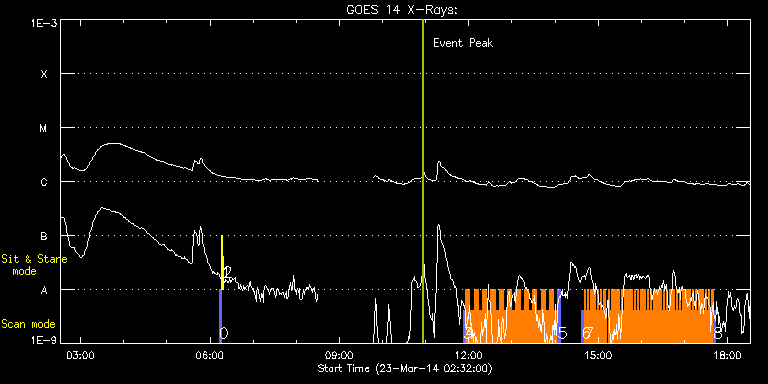 EIS Observation timeline overlay to GOES-Xray curve Code 1" 2" 40" 266" EIS Observations list for this event: STUDY ACRONYM ID DATE OBSERVED DESCRIPTION NOAA# TARGET 0 PRY_slot_contextLITE | 39263 | 2014/03/23 06:12:49 | Change of EIS pointing and alignment w | 2010 | Active Region TIMELINE ID DATE OBSERVED FITS FILE XCEN (+W/-E) YCEN (+N/-S) DUR ----------------------------------------------------------------------------------------------------------------- 39263 | 2014/03/23 06:12:49.000 | eis_l0_20140323_061249.fits.gz | -15.14 | -0.27 | 2m57s 1 Alignment_266 | 39264 | 2014/03/23 06:16:04 | Change of EIS pointing and alignment w | 2010 | Quiet Sun TIMELINE ID DATE OBSERVED FITS FILE XCEN (+W/-E) YCEN (+N/-S) DUR ----------------------------------------------------------------------------------------------------------------- 39264 | 2014/03/23 06:16:04.000 | eis_l0_20140323_061604.fits.gz | -132.49 | -0.27 | 1m22s 2 XRT_synop_AIA | 39265 | 2014/03/23 06:18:11 | Change of EIS pointing and alignment w | 2010 | Quiet Sun TIMELINE ID DATE OBSERVED FITS FILE XCEN (+W/-E) YCEN (+N/-S) DUR ----------------------------------------------------------------------------------------------------------------- 39265 | 2014/03/23 06:18:11.000 | eis_l0_20140323_061811.fits.gz | -132.57 | -0.42 | 10s 3 PRY_slot_context_v3 | 39345 | 2014/03/23 11:52:26 | Effects of Quiet Sun Weak Fields on th | 2010 | Active Region TIMELINE ID DATE OBSERVED FITS FILE XCEN (+W/-E) YCEN (+N/-S) DUR ----------------------------------------------------------------------------------------------------------------- 39345 | 2014/03/23 11:52:26.000 | eis_l0_20140323_115226.fits.gz | -4.91 | 42.48 | 2m56s 4 Cor_Hole_Jet_v1 | 39346 | 2014/03/23 11:55:48 | Effects of Quiet Sun Weak Fields on th | | Quiet Sun TIMELINE ID DATE OBSERVED FITS FILE XCEN (+W/-E) YCEN (+N/-S) DUR ----------------------------------------------------------------------------------------------------------------- 39346 | 2014/03/23 11:55:48.000 | eis_l0_20140323_115548.fits.gz | 9.30 | 42.56 | 5m46s 39346 | 2014/03/23 12:01:37.000 | eis_l0_20140323_120137.fits.gz | 10.30 | 42.33 | 5m47s 39346 | 2014/03/23 12:07:27.000 | eis_l0_20140323_120727.fits.gz | 11.15 | 42.48 | 5m47s 39346 | 2014/03/23 12:13:17.000 | eis_l0_20140323_121317.fits.gz | 12.08 | 42.41 | 5m47s 39346 | 2014/03/23 12:19:07.000 | eis_l0_20140323_121907.fits.gz | 12.93 | 42.41 | 5m46s 39346 | 2014/03/23 12:24:56.000 | eis_l0_20140323_122456.fits.gz | 13.93 | 42.33 | 5m47s 39346 | 2014/03/23 12:30:46.000 | eis_l0_20140323_123046.fits.gz | 14.70 | 42.33 | 5m47s 39346 | 2014/03/23 12:36:36.000 | eis_l0_20140323_123636.fits.gz | 15.71 | 42.41 | 5m47s 39346 | 2014/03/23 12:42:26.000 | eis_l0_20140323_124226.fits.gz | 16.56 | 42.48 | 5m46s 39346 | 2014/03/23 12:48:15.000 | eis_l0_20140323_124815.fits.gz | 17.48 | 42.33 | 5m47s 39346 | 2014/03/23 12:54:05.000 | eis_l0_20140323_125405.fits.gz | 18.41 | 42.48 | 5m47s 39346 | 2014/03/23 12:59:54.000 | eis_l0_20140323_125954.fits.gz | 19.26 | 42.41 | 5m47s 39346 | 2014/03/23 13:05:44.000 | eis_l0_20140323_130544.fits.gz | 20.27 | 42.33 | 5m47s 39346 | 2014/03/23 13:11:34.000 | eis_l0_20140323_131134.fits.gz | 21.04 | 42.41 | 5m47s 39346 | 2014/03/23 13:17:23.000 | eis_l0_20140323_131723.fits.gz | 22.04 | 42.25 | 5m47s 39346 | 2014/03/23 13:23:13.000 | eis_l0_20140323_132313.fits.gz | 22.89 | 42.41 | 5m47s 39346 | 2014/03/23 13:29:03.000 | eis_l0_20140323_132903.fits.gz | 23.82 | 42.25 | 5m47s 39346 | 2014/03/23 13:34:53.000 | eis_l0_20140323_133453.fits.gz | 24.75 | 42.41 | 5m46s 39346 | 2014/03/23 13:40:42.000 | eis_l0_20140323_134042.fits.gz | 25.75 | 42.33 | 5m47s 39346 | 2014/03/23 13:46:32.000 | eis_l0_20140323_134632.fits.gz | 26.60 | 42.41 | 5m46s 39346 | 2014/03/23 13:52:21.000 | eis_l0_20140323_135221.fits.gz | 27.53 | 42.17 | 5m47s 39346 | 2014/03/23 13:58:11.000 | eis_l0_20140323_135811.fits.gz | 28.38 | 42.33 | 5m47s 5 PRY_slot_context_v3 | 39347 | 2014/03/23 14:04:08 | Effects of Quiet Sun Weak Fields on th | 2010 | Active Region TIMELINE ID DATE OBSERVED FITS FILE XCEN (+W/-E) YCEN (+N/-S) DUR ----------------------------------------------------------------------------------------------------------------- 39347 | 2014/03/23 14:04:08.000 | eis_l0_20140323_140408.fits.gz | 15.64 | 42.41 | 2m57s 6 PRY_slot_context_v3 | 39327 | 2014/03/23 14:37:13 | Spectropolarimetry of flares | 2014 | Active Region TIMELINE ID DATE OBSERVED FITS FILE XCEN (+W/-E) YCEN (+N/-S) DUR ----------------------------------------------------------------------------------------------------------------- 39327 | 2014/03/23 14:37:13.000 | eis_l0_20140323_143713.fits.gz | -486.01 | -141.37 | 2m56s 7 Cam_flare_diag | 39328 | 2014/03/23 14:40:34 | Spectropolarimetry of flares | | Flare TIMELINE ID DATE OBSERVED FITS FILE XCEN (+W/-E) YCEN (+N/-S) DUR ----------------------------------------------------------------------------------------------------------------- 39328 | 2014/03/23 14:40:34.000 | eis_l0_20140323_144034.fits.gz | -471.30 | -141.37 | 2m12s 39328 | 2014/03/23 14:42:48.000 | eis_l0_20140323_144248.fits.gz | -470.99 | -141.37 | 2m12s 39328 | 2014/03/23 14:45:03.000 | eis_l0_20140323_144503.fits.gz | -470.68 | -141.37 | 2m12s 39328 | 2014/03/23 14:47:17.000 | eis_l0_20140323_144717.fits.gz | -470.38 | -141.44 | 2m12s 39328 | 2014/03/23 14:49:32.000 | eis_l0_20140323_144932.fits.gz | -470.14 | -141.44 | 2m12s 39328 | 2014/03/23 14:51:46.000 | eis_l0_20140323_145146.fits.gz | -469.83 | -141.29 | 2m12s 39328 | 2014/03/23 14:54:01.000 | eis_l0_20140323_145401.fits.gz | -469.60 | -141.29 | 2m12s 39328 | 2014/03/23 14:56:15.000 | eis_l0_20140323_145615.fits.gz | -469.29 | -141.21 | 2m12s 39328 | 2014/03/23 14:58:30.000 | eis_l0_20140323_145830.fits.gz | -468.98 | -141.37 | 2m12s 39328 | 2014/03/23 15:00:44.000 | eis_l0_20140323_150044.fits.gz | -468.68 | -141.21 | 2m12s 39328 | 2014/03/23 15:02:59.000 | eis_l0_20140323_150259.fits.gz | -468.37 | -141.21 | 2m12s 39328 | 2014/03