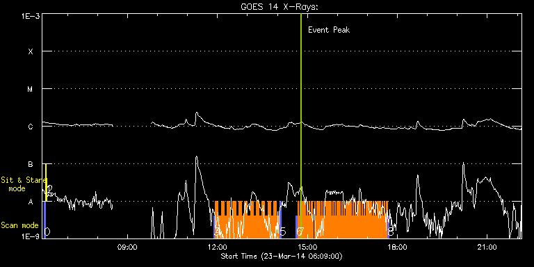 EIS Observation timeline overlay to GOES-Xray curve Code 1" 2" 40" 266" EIS Observations list for this event: STUDY ACRONYM ID DATE OBSERVED DESCRIPTION NOAA# TARGET 0 PRY_slot_contextLITE | 39263 | 2014/03/23 06:12:49 | Change of EIS pointing and alignment w | 2010 | Active Region TIMELINE ID DATE OBSERVED FITS FILE XCEN (+W/-E) YCEN (+N/-S) DUR ----------------------------------------------------------------------------------------------------------------- 39263 | 2014/03/23 06:12:49.000 | eis_l0_20140323_061249.fits.gz | -15.14 | -0.27 | 2m57s 1 Alignment_266 | 39264 | 2014/03/23 06:16:04 | Change of EIS pointing and alignment w | 2010 | Quiet Sun TIMELINE ID DATE OBSERVED FITS FILE XCEN (+W/-E) YCEN (+N/-S) DUR ----------------------------------------------------------------------------------------------------------------- 39264 | 2014/03/23 06:16:04.000 | eis_l0_20140323_061604.fits.gz | -132.49 | -0.27 | 1m22s 2 XRT_synop_AIA | 39265 | 2014/03/23 06:18:11 | Change of EIS pointing and alignment w | 2010 | Quiet Sun TIMELINE ID DATE OBSERVED FITS FILE XCEN (+W/-E) YCEN (+N/-S) DUR ----------------------------------------------------------------------------------------------------------------- 39265 | 2014/03/23 06:18:11.000 | eis_l0_20140323_061811.fits.gz | -132.57 | -0.42 | 10s 3 PRY_slot_context_v3 | 39345 | 2014/03/23 11:52:26 | Effects of Quiet Sun Weak Fields on th | 2010 | Active Region TIMELINE ID DATE OBSERVED FITS FILE XCEN (+W/-E) YCEN (+N/-S) DUR ----------------------------------------------------------------------------------------------------------------- 39345 | 2014/03/23 11:52:26.000 | eis_l0_20140323_115226.fits.gz | -4.91 | 42.48 | 2m56s 4 Cor_Hole_Jet_v1 | 39346 | 2014/03/23 11:55:48 | Effects of Quiet Sun Weak Fields on th | | Quiet Sun TIMELINE ID DATE OBSERVED FITS FILE XCEN (+W/-E) YCEN (+N/-S) DUR ----------------------------------------------------------------------------------------------------------------- 39346 | 2014/03/23 11:55:48.000 | eis_l0_20140323_115548.fits.gz | 9.30 | 42.56 | 5m46s 39346 | 2014/03/23 12:01:37.000 | eis_l0_20140323_120137.fits.gz | 10.30 | 42.33 | 5m47s 39346 | 2014/03/23 12:07:27.000 | eis_l0_20140323_120727.fits.gz | 11.15 | 42.48 | 5m47s 39346 | 2014/03/23 12:13:17.000 | eis_l0_20140323_121317.fits.gz | 12.08 | 42.41 | 5m47s 39346 | 2014/03/23 12:19:07.000 | eis_l0_20140323_121907.fits.gz | 12.93 | 42.41 | 5m46s 39346 | 2014/03/23 12:24:56.000 | eis_l0_20140323_122456.fits.gz | 13.93 | 42.33 | 5m47s 39346 | 2014/03/23 12:30:46.000 | eis_l0_20140323_123046.fits.gz | 14.70 | 42.33 | 5m47s 39346 | 2014/03/23 12:36:36.000 | eis_l0_20140323_123636.fits.gz | 15.71 | 42.41 | 5m47s 39346 | 2014/03/23 12:42:26.000 | eis_l0_20140323_124226.fits.gz | 16.56 | 42.48 | 5m46s 39346 | 2014/03/23 12:48:15.000 | eis_l0_20140323_124815.fits.gz | 17.48 | 42.33 | 5m47s 39346 | 2014/03/23 12:54:05.000 | eis_l0_20140323_125405.fits.gz | 18.41 | 42.48 | 5m47s 39346 | 2014/03/23 12:59:54.000 | eis_l0_20140323_125954.fits.gz | 19.26 | 42.41 | 5m47s 39346 | 2014/03/23 13:05:44.000 | eis_l0_20140323_130544.fits.gz | 20.27 | 42.33 | 5m47s 39346 | 2014/03/23 13:11:34.000 | eis_l0_20140323_131134.fits.gz | 21.04 | 42.41 | 5m47s 39346 | 2014/03/23 13:17:23.000 | eis_l0_20140323_131723.fits.gz | 22.04 | 42.25 | 5m47s 39346 | 2014/03/23 13:23:13.000 | eis_l0_20140323_132313.fits.gz | 22.89 | 42.41 | 5m47s 39346 | 2014/03/23 13:29:03.000 | eis_l0_20140323_132903.fits.gz | 23.82 | 42.25 | 5m47s 39346 | 2014/03/23 13:34:53.000 | eis_l0_20140323_133453.fits.gz | 24.75 | 42.41 | 5m46s 39346 | 2014/03/23 13:40:42.000 | eis_l0_20140323_134042.fits.gz | 25.75 | 42.33 | 5m47s 39346 | 2014/03/23 13:46:32.000 | eis_l0_20140323_134632.fits.gz | 26.60 | 42.41 | 5m46s 39346 | 2014/03/23 13:52:21.000 | eis_l0_20140323_135221.fits.gz | 27.53 | 42.17 | 5m47s 39346 | 2014/03/23 13:58:11.000 | eis_l0_20140323_135811.fits.gz | 28.38 | 42.33 | 5m47s 5 PRY_slot_context_v3 | 39347 | 2014/03/23 14:04:08 | Effects of Quiet Sun Weak Fields on th | 2010 | Active Region TIMELINE ID DATE OBSERVED FITS FILE XCEN (+W/-E) YCEN (+N/-S) DUR ----------------------------------------------------------------------------------------------------------------- 39347 | 2014/03/23 14:04:08.000 | eis_l0_20140323_140408.fits.gz | 15.64 | 42.41 | 2m57s 6 PRY_slot_context_v3 | 39327 | 2014/03/23 14:37:13 | Spectropolarimetry of flares | 2014 | Active Region TIMELINE ID DATE OBSERVED FITS FILE XCEN (+W/-E) YCEN (+N/-S) DUR ----------------------------------------------------------------------------------------------------------------- 39327 | 2014/03/23 14:37:13.000 | eis_l0_20140323_143713.fits.gz | -486.01 | -141.37 | 2m56s 7 Cam_flare_diag | 39328 | 2014/03/23 14:40:34 | Spectropolarimetry of flares | | Flare TIMELINE ID DATE OBSERVED FITS FILE XCEN (+W/-E) YCEN (+N/-S) DUR ----------------------------------------------------------------------------------------------------------------- 39328 | 2014/03/23 14:40:34.000 | eis_l0_20140323_144034.fits.gz | -471.30 | -141.37 | 2m12s 39328 | 2014/03/23 14:42:48.000 | eis_l0_20140323_144248.fits.gz | -470.99 | -141.37 | 2m12s 39328 | 2014/03/23 14:45:03.000 | eis_l0_20140323_144503.fits.gz | -470.68 | -141.37 | 2m12s 39328 | 2014/03/23 14:47:17.000 | eis_l0_20140323_144717.fits.gz | -470.38 | -141.44 | 2m12s 39328 | 2014/03/23 14:49:32.000 | eis_l0_20140323_144932.fits.gz | -470.14 | -141.44 | 2m12s 39328 | 2014/03/23 14:51:46.000 | eis_l0_20140323_145146.fits.gz | -469.83 | -141.29 | 2m12s 39328 | 2014/03/23 14:54:01.000 | eis_l0_20140323_145401.fits.gz | -469.60 | -141.29 | 2m12s 39328 | 2014/03/23 14:56:15.000 | eis_l0_20140323_145615.fits.gz | -469.29 | -141.21 | 2m12s 39328 | 2014/03/23 14:58:30.000 | eis_l0_20140323_145830.fits.gz | -468.98 | -141.37 | 2m12s 39328 | 2014/03/23 15:00:44.000 | eis_l0_20140323_150044.fits.gz | -468.68 | -141.21 | 2m12s 39328 | 2014/03/23 15:02:59.000 | eis_l0_20140323_150259.fits.gz | -468.37 | -141.21 | 2m12s 39328 | 2014/03