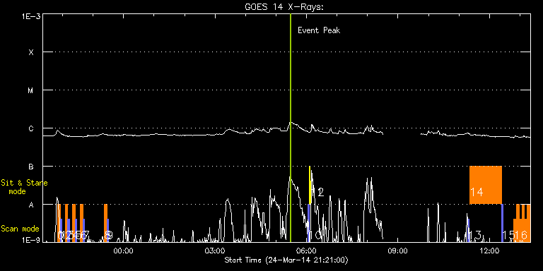 EIS Observation timeline overlay to GOES-Xray curve Code 1" 2" 40" 266" EIS Observations list for this event: STUDY ACRONYM ID DATE OBSERVED DESCRIPTION NOAA# TARGET 0 SK_DEEP_10x512_SLIT2 | 39289 | 2014/03/24 21:50:02 | Synoptic SOT Irradiance Scans | | Quiet Sun TIMELINE ID DATE OBSERVED FITS FILE XCEN (+W/-E) YCEN (+N/-S) DUR ----------------------------------------------------------------------------------------------------------------- 39289 | 2014/03/24 21:50:02.000 | eis_l0_20140324_215002.fits.gz | 189.94 | -140.31 | 5m8s 1 PRY_slot_contextLITE | 39290 | 2014/03/24 21:55:22 | Synoptic SOT Irradiance Scans | 2010 | Active Region TIMELINE ID DATE OBSERVED FITS FILE XCEN (+W/-E) YCEN (+N/-S) DUR ----------------------------------------------------------------------------------------------------------------- 39290 | 2014/03/24 21:55:22.000 | eis_l0_20140324_215522.fits.gz | 175.29 | -140.39 | 2m56s 2 SK_DEEP_10x512_SLIT2 | 39291 | 2014/03/24 22:05:02 | Synoptic SOT Irradiance Scans | | Quiet Sun TIMELINE ID DATE OBSERVED FITS FILE XCEN (+W/-E) YCEN (+N/-S) DUR ----------------------------------------------------------------------------------------------------------------- 39291 | 2014/03/24 22:05:02.000 | eis_l0_20140324_220502.fits.gz | 379.97 | -147.57 | 5m8s 3 PRY_slot_contextLITE | 39292 | 2014/03/24 22:10:21 | Synoptic SOT Irradiance Scans | 2010 | Active Region TIMELINE ID DATE OBSERVED FITS FILE XCEN (+W/-E) YCEN (+N/-S) DUR ----------------------------------------------------------------------------------------------------------------- 39292 | 2014/03/24 22:10:21.000 | eis_l0_20140324_221021.fits.gz | 365.40 | -147.57 | 2m56s 4 SK_DEEP_10x512_SLIT2 | 39293 | 2014/03/24 22:20:02 | Synoptic SOT Irradiance Scans | | Quiet Sun TIMELINE ID DATE OBSERVED FITS FILE XCEN (+W/-E) YCEN (+N/-S) DUR ----------------------------------------------------------------------------------------------------------------- 39293 | 2014/03/24 22:20:02.000 | eis_l0_20140324_222002.fits.gz | 563.89 | -161.48 | 5m8s 5 PRY_slot_contextLITE | 39294 | 2014/03/24 22:25:22 | Synoptic SOT Irradiance Scans | 2008 | Active Region TIMELINE ID DATE OBSERVED FITS FILE XCEN (+W/-E) YCEN (+N/-S) DUR ----------------------------------------------------------------------------------------------------------------- 39294 | 2014/03/24 22:25:22.000 | eis_l0_20140324_222522.fits.gz | 549.40 | -161.25 | 2m56s 6 SK_DEEP_10x512_SLIT2 | 39295 | 2014/03/24 22:35:02 | Synoptic SOT Irradiance Scans | | Quiet Sun TIMELINE ID DATE OBSERVED FITS FILE XCEN (+W/-E) YCEN (+N/-S) DUR ----------------------------------------------------------------------------------------------------------------- 39295 | 2014/03/24 22:35:02.000 | eis_l0_20140324_223502.fits.gz | 742.18 | -183.73 | 5m8s 7 PRY_slot_contextLITE | 39296 | 2014/03/24 22:40:21 | Synoptic SOT Irradiance Scans | 2008 | Active Region TIMELINE ID DATE OBSERVED FITS FILE XCEN (+W/-E) YCEN (+N/-S) DUR ----------------------------------------------------------------------------------------------------------------- 39296 | 2014/03/24 22:40:21.000 | eis_l0_20140324_224021.fits.gz | 727.61 | -183.57 | 2m56s 8 SK_DEEP_10x512_SLIT2 | 39297 | 2014/03/24 23:22:02 | Synoptic SOT Irradiance Scans | | Quiet Sun TIMELINE ID DATE OBSERVED FITS FILE XCEN (+W/-E) YCEN (+N/-S) DUR ----------------------------------------------------------------------------------------------------------------- 39297 | 2014/03/24 23:22:02.000 | eis_l0_20140324_232202.fits.gz | 907.03 | -235.40 | 5m8s 9 PRY_slot_contextLITE | 39298 | 2014/03/24 23:27:21 | Synoptic SOT Irradiance Scans | 2008 | Active Region TIMELINE ID DATE OBSERVED FITS FILE XCEN (+W/-E) YCEN (+N/-S) DUR ----------------------------------------------------------------------------------------------------------------- 39298 | 2014/03/24 23:27:21.000 | eis_l0_20140324_232721.fits.gz | 892.54 | -235.48 | 2m57s 10 PRY_slot_contextLITE | 39269 | 2014/03/25 06:02:39 | Change of EIS pointing and alignment w | 2014 | Active Region TIMELINE ID DATE OBSERVED FITS FILE XCEN (+W/-E) YCEN (+N/-S) DUR ----------------------------------------------------------------------------------------------------------------- 39269 | 2014/03/25 06:02:39.000 | eis_l0_20140325_060239.fits.gz | -15.21 | -0.42 | 2m56s 11 Alignment_266 | 39270 | 2014/03/25 06:05:53 | Change of EIS pointing and alignment w | 2014 | Quiet Sun TIMELINE ID DATE OBSERVED FITS FILE XCEN (+W/-E) YCEN (+N/-S) DUR ----------------------------------------------------------------------------------------------------------------- 39270 | 2014/03/25 06:05:53.000 | eis_l0_20140325_060553.fits.gz | -132.49 | -0.42 | 1m22s 12 XRT_synop_AIA | 39271 | 2014/03/25 06:08:01 | Change of EIS pointing and alignment w | 2014 | Quiet Sun TIMELINE ID DATE OBSERVED FITS FILE XCEN (+W/-E) YCEN (+N/-S) DUR ----------------------------------------------------------------------------------------------------------------- 39271 | 2014/03/25 06:08:01.000 | eis_l0_20140325_060801.fits.gz | -132.49 | -0.50 | 10s 13 PRY_slot_context_v3 | 39383 | 2014/03/25 11:17:28 | IHOP248 (AR 12009 on NW-limb; coronal | 2005 | Active Region TIMELINE ID DATE OBSERVED FITS FILE XCEN (+W/-E) YCEN (+N/-S) DUR ----------------------------------------------------------------------------------------------------------------- 39383 | 2014/03/25 11:17:28.000 | eis_l0_20140325_111728.fits.gz | 892.54 | 211.78 | 2m56s 14 vhh_slowar_sas_1h6m | 39384 | 2014/03/25 11:20:49 | IHOP248 (AR 12009 on NW-limb; coronal | | Active Region TIMELINE ID DATE OBSERVED FITS FILE XCEN (+W/-E) YCEN (+N/-S) DUR ----------------------------------------------------------------------------------------------------------------- 39384 | 2014/03/25 11:20:49.000 | eis_l0_20140325_112049.fits.gz | 1007.11 | 211.71 | 1h2m49s 15 PRY_slot_context_v3 | 39398 | 2014/03/25 12:23:49 | IHOP248 (AR 12009 on NW-limb; coronal | 2005 | Active Region TIMELINE ID DATE OBSERVED FITS FILE XCEN (+W/-E) YCEN 