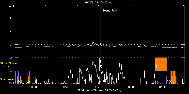 EIS Observation timeline overlay to GOES-Xray curve Code 1" 2" 40" 266" EIS Observations list for this event: STUDY ACRONYM ID DATE OBSERVED DESCRIPTION NOAA# TARGET 0 PRY_slot_contextLITE | 39292 | 2014/03/24 22:10:21 | Synoptic SOT Irradiance Scans | 2010 | Active Region TIMELINE ID DATE OBSERVED FITS FILE XCEN (+W/-E) YCEN (+N/-S) DUR ----------------------------------------------------------------------------------------------------------------- 39292 | 2014/03/24 22:10:21.000 | eis_l0_20140324_221021.fits.gz | 365.40 | -147.57 | 2m56s 1 SK_DEEP_10x512_SLIT2 | 39293 | 2014/03/24 22:20:02 | Synoptic SOT Irradiance Scans | | Quiet Sun TIMELINE ID DATE OBSERVED FITS FILE XCEN (+W/-E) YCEN (+N/-S) DUR ----------------------------------------------------------------------------------------------------------------- 39293 | 2014/03/24 22:20:02.000 | eis_l0_20140324_222002.fits.gz | 563.89 | -161.48 | 5m8s 2 PRY_slot_contextLITE | 39294 | 2014/03/24 22:25:22 | Synoptic SOT Irradiance Scans | 2008 | Active Region TIMELINE ID DATE OBSERVED FITS FILE XCEN (+W/-E) YCEN (+N/-S) DUR ----------------------------------------------------------------------------------------------------------------- 39294 | 2014/03/24 22:25:22.000 | eis_l0_20140324_222522.fits.gz | 549.40 | -161.25 | 2m56s 3 SK_DEEP_10x512_SLIT2 | 39295 | 2014/03/24 22:35:02 | Synoptic SOT Irradiance Scans | | Quiet Sun TIMELINE ID DATE OBSERVED FITS FILE XCEN (+W/-E) YCEN (+N/-S) DUR ----------------------------------------------------------------------------------------------------------------- 39295 | 2014/03/24 22:35:02.000 | eis_l0_20140324_223502.fits.gz | 742.18 | -183.73 | 5m8s 4 PRY_slot_contextLITE | 39296 | 2014/03/24 22:40:21 | Synoptic SOT Irradiance Scans | 2008 | Active Region TIMELINE ID DATE OBSERVED FITS FILE XCEN (+W/-E) YCEN (+N/-S) DUR ----------------------------------------------------------------------------------------------------------------- 39296 | 2014/03/24 22:40:21.000 | eis_l0_20140324_224021.fits.gz | 727.61 | -183.57 | 2m56s 5 SK_DEEP_10x512_SLIT2 | 39297 | 2014/03/24 23:22:02 | Synoptic SOT Irradiance Scans | | Quiet Sun TIMELINE ID DATE OBSERVED FITS FILE XCEN (+W/-E) YCEN (+N/-S) DUR ----------------------------------------------------------------------------------------------------------------- 39297 | 2014/03/24 23:22:02.000 | eis_l0_20140324_232202.fits.gz | 907.03 | -235.40 | 5m8s 6 PRY_slot_contextLITE | 39298 | 2014/03/24 23:27:21 | Synoptic SOT Irradiance Scans | 2008 | Active Region TIMELINE ID DATE OBSERVED FITS FILE XCEN (+W/-E) YCEN (+N/-S) DUR ----------------------------------------------------------------------------------------------------------------- 39298 | 2014/03/24 23:27:21.000 | eis_l0_20140324_232721.fits.gz | 892.54 | -235.48 | 2m57s 7 PRY_slot_contextLITE | 39269 | 2014/03/25 06:02:39 | Change of EIS pointing and alignment w | 2014 | Active Region TIMELINE ID DATE OBSERVED FITS FILE XCEN (+W/-E) YCEN (+N/-S) DUR ----------------------------------------------------------------------------------------------------------------- 39269 | 2014/03/25 06:02:39.000 | eis_l0_20140325_060239.fits.gz | -15.21 | -0.42 | 2m56s 8 Alignment_266 | 39270 | 2014/03/25 06:05:53 | Change of EIS pointing and alignment w | 2014 | Quiet Sun TIMELINE ID DATE OBSERVED FITS FILE XCEN (+W/-E) YCEN (+N/-S) DUR ----------------------------------------------------------------------------------------------------------------- 39270 | 2014/03/25 06:05:53.000 | eis_l0_20140325_060553.fits.gz | -132.49 | -0.42 | 1m22s 9 XRT_synop_AIA | 39271 | 2014/03/25 06:08:01 | Change of EIS pointing and alignment w | 2014 | Quiet Sun TIMELINE ID DATE OBSERVED FITS FILE XCEN (+W/-E) YCEN (+N/-S) DUR ----------------------------------------------------------------------------------------------------------------- 39271 | 2014/03/25 06:08:01.000 | eis_l0_20140325_060801.fits.gz | -132.49 | -0.50 | 10s 10 PRY_slot_context_v3 | 39383 | 2014/03/25 11:17:28 | IHOP248 (AR 12009 on NW-limb; coronal | 2005 | Active Region TIMELINE ID DATE OBSERVED FITS FILE XCEN (+W/-E) YCEN (+N/-S) DUR ----------------------------------------------------------------------------------------------------------------- 39383 | 2014/03/25 11:17:28.000 | eis_l0_20140325_111728.fits.gz | 892.54 | 211.78 | 2m56s 11 vhh_slowar_sas_1h6m | 39384 | 2014/03/25 11:20:49 | IHOP248 (AR 12009 on NW-limb; coronal | | Active Region TIMELINE ID DATE OBSERVED FITS FILE XCEN (+W/-E) YCEN (+N/-S) DUR ----------------------------------------------------------------------------------------------------------------- 39384 | 2014/03/25 11:20:49.000 | eis_l0_20140325_112049.fits.gz | 1007.11 | 211.71 | 1h2m49s 12 PRY_slot_context_v3 | 39398 | 2014/03/25 12:23:49 | IHOP248 (AR 12009 on NW-limb; coronal | 2005 | Active Region TIMELINE ID DATE OBSERVED FITS FILE XCEN (+W/-E) YCEN (+N/-S) DUR ----------------------------------------------------------------------------------------------------------------- 39398 | 2014/03/25 12:23:49.000 | eis_l0_20140325_122349.fits.gz | 892.46 | 211.78 | 2m56s 13 HH_Flare+AR_180x152 | 39399 | 2014/03/25 12:47:51 | AR12009 (IHOP248, NW-limb; coronal rai | 2005 | Flare TIMELINE ID DATE OBSERVED FITS FILE XCEN (+W/-E) YCEN (+N/-S) DUR ----------------------------------------------------------------------------------------------------------------- 39399 | 2014/03/25 12:47:51.000 | eis_l0_20140325_124751.fits.gz | 975.17 | 211.71 | 5m17s 39399 | 2014/03/25 12:53:11.000 | eis_l0_20140325_125311.fits.gz | 975.09 | 211.71 | 5m18s 39399 | 2014/03/25 12:58:32.000 | eis_l0_20140325_125832.fits.gz | 975.09 | 211.71 | 5m17s 39399 | 2014/03/25 13:03:52.000 | eis_l0_20140325_130352.fits.gz | 975.09 | 211.71 | 5m18s 39399 | 2014/03/25 13:09:13.000 | eis_l0_20140325_130913.fits.gz | 975.09 | 211.47 | 5m18s 39399 | 2014/03/25 13:14:34.000 | eis_l0_20140325_131434.fits.gz | 975.09 | 211.63 | 5m18s : Check study information : Download file : View thumbnails For this ev