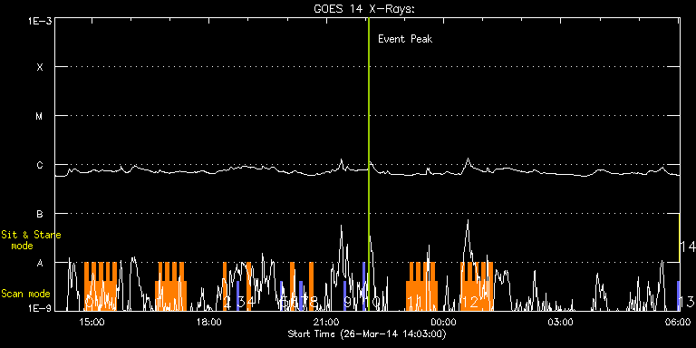 EIS Observation timeline overlay to GOES-Xray curve Code 1" 2" 40" 266" EIS Observations list for this event: STUDY ACRONYM ID DATE OBSERVED DESCRIPTION NOAA# TARGET 0 HH_Flare+AR_180x152 | 39394 | 2014/03/26 14:49:33 | AR12014 (HOP251) | | Flare TIMELINE ID DATE OBSERVED FITS FILE XCEN (+W/-E) YCEN (+N/-S) DUR ----------------------------------------------------------------------------------------------------------------- 39394 | 2014/03/26 14:49:33.000 | eis_l0_20140326_144933.fits.gz | 176.42 | -106.78 | 5m19s 39394 | 2014/03/26 14:54:55.000 | eis_l0_20140326_145455.fits.gz | 177.20 | -106.78 | 5m18s 39394 | 2014/03/26 15:00:16.000 | eis_l0_20140326_150016.fits.gz | 177.97 | -106.94 | 5m18s 39394 | 2014/03/26 15:05:37.000 | eis_l0_20140326_150537.fits.gz | 178.74 | -107.01 | 5m17s 39394 | 2014/03/26 15:10:57.000 | eis_l0_20140326_151057.fits.gz | 179.59 | -107.01 | 5m19s 39394 | 2014/03/26 15:16:19.000 | eis_l0_20140326_151619.fits.gz | 180.36 | -107.01 | 5m18s 39394 | 2014/03/26 15:21:40.000 | eis_l0_20140326_152140.fits.gz | 181.14 | -107.01 | 5m18s 39394 | 2014/03/26 15:27:00.000 | eis_l0_20140326_152700.fits.gz | 181.91 | -107.09 | 5m19s 39394 | 2014/03/26 15:32:22.000 | eis_l0_20140326_153222.fits.gz | 182.76 | -107.01 | 5m17s 1 HH_Flare+AR_180x152 | 39395 | 2014/03/26 16:37:10 | AR12014 (HOP251) | | Flare TIMELINE ID DATE OBSERVED FITS FILE XCEN (+W/-E) YCEN (+N/-S) DUR ----------------------------------------------------------------------------------------------------------------- 39395 | 2014/03/26 16:37:10.000 | eis_l0_20140326_163710.fits.gz | 192.26 | -107.32 | 5m18s 39395 | 2014/03/26 16:42:30.000 | eis_l0_20140326_164230.fits.gz | 193.03 | -107.40 | 5m19s 39395 | 2014/03/26 16:47:51.000 | eis_l0_20140326_164751.fits.gz | 193.80 | -107.32 | 5m18s 39395 | 2014/03/26 16:53:12.000 | eis_l0_20140326_165312.fits.gz | 194.65 | -107.25 | 5m19s 39395 | 2014/03/26 16:58:34.000 | eis_l0_20140326_165834.fits.gz | 195.43 | -107.25 | 5m17s 39395 | 2014/03/26 17:03:54.000 | eis_l0_20140326_170354.fits.gz | 196.20 | -107.25 | 5m18s 39395 | 2014/03/26 17:09:15.000 | eis_l0_20140326_170915.fits.gz | 196.97 | -107.48 | 5m18s 39395 | 2014/03/26 17:14:36.000 | eis_l0_20140326_171436.fits.gz | 197.74 | -107.56 | 5m18s 39395 | 2014/03/26 17:19:57.000 | eis_l0_20140326_171957.fits.gz | 198.60 | -107.63 | 5m18s 2 SK_DEEP_10x512_SLIT2 | 39360 | 2014/03/26 18:21:14 | HOP79 SOT irradiance scan (E-W scan, 1 | | Quiet Sun TIMELINE ID DATE OBSERVED FITS FILE XCEN (+W/-E) YCEN (+N/-S) DUR ----------------------------------------------------------------------------------------------------------------- 39360 | 2014/03/26 18:21:14.000 | eis_l0_20140326_182114.fits.gz | -9861.46 | -9947.20 | 5m7s 3 PRY_slot_contextLITE | 39403 | 2014/03/26 18:42:20 | HOP79 SOT irradiance scan (E-W scan, 2 | | Active Region TIMELINE ID DATE OBSERVED FITS FILE XCEN (+W/-E) YCEN (+N/-S) DUR ----------------------------------------------------------------------------------------------------------------- 39403 | 2014/03/26 18:42:20.000 | eis_l0_20140326_184220.fits.gz | -717.71 | -4.66 | 2m57s 4 SK_DEEP_10x512_SLIT2 | 39364 | 2014/03/26 18:58:02 | HOP79 SOT irradiance scan (E-W scan, 3 | | Quiet Sun TIMELINE ID DATE OBSERVED FITS FILE XCEN (+W/-E) YCEN (+N/-S) DUR ----------------------------------------------------------------------------------------------------------------- 39364 | 2014/03/26 18:58:02.000 | eis_l0_20140326_185802.fits.gz | -503.91 | -4.51 | 5m8s 5 PRY_slot_contextLITE | 39404 | 2014/03/26 19:49:20 | HOP79 SOT irradiance scan (E-W scan, 4 | 2018 | Active Region TIMELINE ID DATE OBSERVED FITS FILE XCEN (+W/-E) YCEN (+N/-S) DUR ----------------------------------------------------------------------------------------------------------------- 39404 | 2014/03/26 19:49:20.000 | eis_l0_20140326_194920.fits.gz | -319.50 | -4.51 | 2m56s 6 SK_DEEP_10x512_SLIT2 | 39368 | 2014/03/26 20:04:33 | HOP79 SOT irradiance scan (E-W scan, 5 | | Quiet Sun TIMELINE ID DATE OBSERVED FITS FILE XCEN (+W/-E) YCEN (+N/-S) DUR ----------------------------------------------------------------------------------------------------------------- 39368 | 2014/03/26 20:04:33.000 | eis_l0_20140326_200433.fits.gz | -106.33 | -4.43 | 5m7s 7 PRY_slot_contextLITE | 39405 | 2014/03/26 20:19:20 | HOP79 SOT irradiance scan (E-W scan, 6 | 2014 | Active Region TIMELINE ID DATE OBSERVED FITS FILE XCEN (+W/-E) YCEN (+N/-S) DUR ----------------------------------------------------------------------------------------------------------------- 39405 | 2014/03/26 20:19:20.000 | eis_l0_20140326_201920.fits.gz | 78.25 | -4.58 | 2m56s 8 SK_DEEP_10x512_SLIT2 | 39372 | 2014/03/26 20:34:33 | HOP79 SOT irradiance scan (E-W scan, 7 | | Quiet Sun TIMELINE ID DATE OBSERVED FITS FILE XCEN (+W/-E) YCEN (+N/-S) DUR ----------------------------------------------------------------------------------------------------------------- 39372 | 2014/03/26 20:34:33.000 | eis_l0_20140326_203433.fits.gz | 292.05 | -4.43 | 5m8s 9 PRY_slot_contextLITE | 39406 | 2014/03/26 21:26:20 | HOP79 SOT irradiance scan (E-W scan, 8 | 2010 | Active Region TIMELINE ID DATE OBSERVED FITS FILE XCEN (+W/-E) YCEN (+N/-S) DUR ----------------------------------------------------------------------------------------------------------------- 39406 | 2014/03/26 21:26:20.000 | eis_l0_20140326_212620.fits.gz | 476.38 | -4.66 | 2m56s 10 PRY_slot_contextLITE | 39407 | 2014/03/26 21:56:20 | HOP79 SOT irradiance scan (E-W scan, 1 | 2015 | Active Region TIMELINE ID DATE OBSERVED FITS FILE XCEN (+W/-E) YCEN (+N/-S) DUR ----------------------------------------------------------------------------------------------------------------- 39407 | 2014/03/26 21:56:20.000 | eis_l0_20140326_215620.fits.gz | 874.13 | -4.58 | 2m56s 11 HH_Flare+AR_180x152 | 39396 | 2014/03/26 23:02:32 | AR12014 (HOP246) | | Flare TIMELINE ID DATE OBSERVED FITS FILE XCEN (+W/-E) YCEN (+N/-S) DUR -------------------------------------------------------------