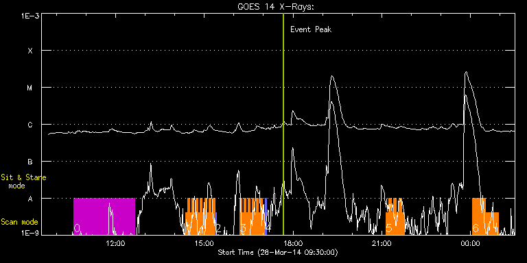 EIS Observation timeline overlay to GOES-Xray curve Code 1" 2" 40" 266" EIS Observations list for this event: STUDY ACRONYM ID DATE OBSERVED DESCRIPTION NOAA# TARGET 0 HPW021_VEL_240x512v1 | 39426 | 2014/03/28 10:35:27 | AR12014 raster scan obs (velocity map) | 2014 | Active Region TIMELINE ID DATE OBSERVED FITS FILE XCEN (+W/-E) YCEN (+N/-S) DUR ----------------------------------------------------------------------------------------------------------------- 39426 | 2014/03/28 10:35:27.000 | eis_l0_20140328_103527.fits.gz | 546.95 | -156.30 | 2h3m47s 1 HH_Flare_162x152 | 39420 | 2014/03/28 14:22:27 | IHOP251 (AR12014, flare region) with I | 2014 | Flare TIMELINE ID DATE OBSERVED FITS FILE XCEN (+W/-E) YCEN (+N/-S) DUR ----------------------------------------------------------------------------------------------------------------- 39420 | 2014/03/28 14:22:27.000 | eis_l0_20140328_142227.fits.gz | 574.17 | -159.77 | 4m10s 39420 | 2014/03/28 14:26:40.000 | eis_l0_20140328_142640.fits.gz | 574.71 | -159.77 | 4m11s 39420 | 2014/03/28 14:30:54.000 | eis_l0_20140328_143054.fits.gz | 575.18 | -159.85 | 4m10s 39420 | 2014/03/28 14:35:07.000 | eis_l0_20140328_143507.fits.gz | 575.72 | -159.85 | 4m11s 39420 | 2014/03/28 14:39:20.000 | eis_l0_20140328_143920.fits.gz | 576.18 | -160.00 | 4m11s 39420 | 2014/03/28 14:43:34.000 | eis_l0_20140328_144334.fits.gz | 576.72 | -160.08 | 4m10s 39420 | 2014/03/28 14:47:47.000 | eis_l0_20140328_144747.fits.gz | 577.18 | -160.00 | 4m11s 39420 | 2014/03/28 14:52:01.000 | eis_l0_20140328_145201.fits.gz | 577.57 | -160.08 | 4m10s 39420 | 2014/03/28 14:56:14.000 | eis_l0_20140328_145614.fits.gz | 578.11 | -160.16 | 4m11s 39420 | 2014/03/28 15:00:28.000 | eis_l0_20140328_150028.fits.gz | 578.58 | -160.23 | 4m10s 39420 | 2014/03/28 15:04:41.000 | eis_l0_20140328_150441.fits.gz | 579.12 | -160.23 | 4m10s 39420 | 2014/03/28 15:08:54.000 | eis_l0_20140328_150854.fits.gz | 579.58 | -160.23 | 4m11s 39420 | 2014/03/28 15:13:08.000 | eis_l0_20140328_151308.fits.gz | 580.04 | -160.31 | 4m10s 39420 | 2014/03/28 15:17:21.000 | eis_l0_20140328_151721.fits.gz | 580.58 | -160.31 | 4m11s 2 PRY_slot_context_v3 | 39435 | 2014/03/28 15:21:43 | IHOP251 (AR12014) | 2014 | Active Region TIMELINE ID DATE OBSERVED FITS FILE XCEN (+W/-E) YCEN (+N/-S) DUR ----------------------------------------------------------------------------------------------------------------- 39435 | 2014/03/28 15:21:43.000 | eis_l0_20140328_152143.fits.gz | 565.81 | -159.39 | 2m56s 3 HH_Flare_162x152 | 39421 | 2014/03/28 16:12:04 | IHOP251 (AR12014, flare region) with I | | Flare TIMELINE ID DATE OBSERVED FITS FILE XCEN (+W/-E) YCEN (+N/-S) DUR ----------------------------------------------------------------------------------------------------------------- 39421 | 2014/03/28 16:12:04.000 | eis_l0_20140328_161204.fits.gz | 587.00 | -161.01 | 4m10s 39421 | 2014/03/28 16:16:17.000 | eis_l0_20140328_161617.fits.gz | 587.46 | -161.16 | 4m10s 39421 | 2014/03/28 16:20:30.000 | eis_l0_20140328_162030.fits.gz | 587.85 | -161.01 | 4m11s 39421 | 2014/03/28 16:24:44.000 | eis_l0_20140328_162444.fits.gz | 588.46 | -161.08 | 4m11s 39421 | 2014/03/28 16:28:57.000 | eis_l0_20140328_162857.fits.gz | 588.85 | -161.24 | 4m11s 39421 | 2014/03/28 16:33:11.000 | eis_l0_20140328_163311.fits.gz | 589.39 | -161.16 | 4m10s 39421 | 2014/03/28 16:37:24.000 | eis_l0_20140328_163724.fits.gz | 589.93 | -161.24 | 4m11s 39421 | 2014/03/28 16:41:38.000 | eis_l0_20140328_164138.fits.gz | 590.40 | -161.32 | 4m10s 39421 | 2014/03/28 16:45:51.000 | eis_l0_20140328_164551.fits.gz | 590.86 | -161.55 | 4m10s 39421 | 2014/03/28 16:50:04.000 | eis_l0_20140328_165004.fits.gz | 591.32 | -161.32 | 4m11s 39421 | 2014/03/28 16:54:18.000 | eis_l0_20140328_165418.fits.gz | 591.94 | -161.62 | 4m10s 39421 | 2014/03/28 16:58:31.000 | eis_l0_20140328_165831.fits.gz | 592.33 | -161.47 | 4m11s 4 PRY_slot_context_v3 | 39436 | 2014/03/28 17:02:53 | IHOP251 (AR12014) | 2014 | Active Region TIMELINE ID DATE OBSERVED FITS FILE XCEN (+W/-E) YCEN (+N/-S) DUR ----------------------------------------------------------------------------------------------------------------- 39436 | 2014/03/28 17:02:53.000 | eis_l0_20140328_170253.fits.gz | 578.30 | -161.62 | 2m56s 5 HH_Flare+AR_180x152 | 39431 | 2014/03/28 21:08:19 | AR 12014 obs | | Flare TIMELINE ID DATE OBSERVED FITS FILE XCEN (+W/-E) YCEN (+N/-S) DUR ----------------------------------------------------------------------------------------------------------------- 39431 | 2014/03/28 21:08:19.000 | eis_l0_20140328_210819.fits.gz | 619.02 | -164.25 | 5m18s 39431 | 2014/03/28 21:13:40.000 | eis_l0_20140328_211340.fits.gz | 619.57 | -164.33 | 5m18s 39431 | 2014/03/28 21:19:01.000 | eis_l0_20140328_211901.fits.gz | 620.26 | -164.56 | 5m18s 39431 | 2014/03/28 21:24:22.000 | eis_l0_20140328_212422.fits.gz | 620.80 | -164.56 | 5m18s 39431 | 2014/03/28 21:29:43.000 | eis_l0_20140328_212943.fits.gz | 621.42 | -164.56 | 5m17s 39431 | 2014/03/28 21:35:03.000 | eis_l0_20140328_213503.fits.gz | 621.96 | -164.48 | 5m18s 39431 | 2014/03/28 21:40:24.000 | eis_l0_20140328_214024.fits.gz | 622.65 | -164.79 | 5m18s 6 PRY_footpoints_lite | 39423 | 2014/03/29 00:03:40 | IHOP246 (AR12014, hot plasma) | 2014 | Active Region TIMELINE ID DATE OBSERVED FITS FILE XCEN (+W/-E) YCEN (+N/-S) DUR ----------------------------------------------------------------------------------------------------------------- 39423 | 2014/03/29 00:03:40.000 | eis_l0_20140329_000340.fits.gz | 639.41 | -165.95 | 26m22s 39423 | 2014/03/29 00:30:06.000 | eis_l0_20140329_003006.fits.gz | 642.26 | -166.34 | 26m22s : Check study information : Download file : View thumbnails For this event, also check for: