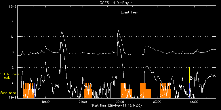 EIS Observation timeline overlay to GOES-Xray curve Code 1" 2" 40" 266" EIS Observations list for this event: STUDY ACRONYM ID DATE OBSERVED DESCRIPTION NOAA# TARGET 0 HH_Flare_162x152 | 39421 | 2014/03/28 16:12:04 | IHOP251 (AR12014, flare region) with I | | Flare TIMELINE ID DATE OBSERVED FITS FILE XCEN (+W/-E) YCEN (+N/-S) DUR ----------------------------------------------------------------------------------------------------------------- 39421 | 2014/03/28 16:12:04.000 | eis_l0_20140328_161204.fits.gz | 587.00 | -161.01 | 4m10s 39421 | 2014/03/28 16:16:17.000 | eis_l0_20140328_161617.fits.gz | 587.46 | -161.16 | 4m10s 39421 | 2014/03/28 16:20:30.000 | eis_l0_20140328_162030.fits.gz | 587.85 | -161.01 | 4m11s 39421 | 2014/03/28 16:24:44.000 | eis_l0_20140328_162444.fits.gz | 588.46 | -161.08 | 4m11s 39421 | 2014/03/28 16:28:57.000 | eis_l0_20140328_162857.fits.gz | 588.85 | -161.24 | 4m11s 39421 | 2014/03/28 16:33:11.000 | eis_l0_20140328_163311.fits.gz | 589.39 | -161.16 | 4m10s 39421 | 2014/03/28 16:37:24.000 | eis_l0_20140328_163724.fits.gz | 589.93 | -161.24 | 4m11s 39421 | 2014/03/28 16:41:38.000 | eis_l0_20140328_164138.fits.gz | 590.40 | -161.32 | 4m10s 39421 | 2014/03/28 16:45:51.000 | eis_l0_20140328_164551.fits.gz | 590.86 | -161.55 | 4m10s 39421 | 2014/03/28 16:50:04.000 | eis_l0_20140328_165004.fits.gz | 591.32 | -161.32 | 4m11s 39421 | 2014/03/28 16:54:18.000 | eis_l0_20140328_165418.fits.gz | 591.94 | -161.62 | 4m10s 39421 | 2014/03/28 16:58:31.000 | eis_l0_20140328_165831.fits.gz | 592.33 | -161.47 | 4m11s 1 PRY_slot_context_v3 | 39436 | 2014/03/28 17:02:53 | IHOP251 (AR12014) | 2014 | Active Region TIMELINE ID DATE OBSERVED FITS FILE XCEN (+W/-E) YCEN (+N/-S) DUR ----------------------------------------------------------------------------------------------------------------- 39436 | 2014/03/28 17:02:53.000 | eis_l0_20140328_170253.fits.gz | 578.30 | -161.62 | 2m56s 2 HH_Flare+AR_180x152 | 39431 | 2014/03/28 21:08:19 | AR 12014 obs | | Flare TIMELINE ID DATE OBSERVED FITS FILE XCEN (+W/-E) YCEN (+N/-S) DUR ----------------------------------------------------------------------------------------------------------------- 39431 | 2014/03/28 21:08:19.000 | eis_l0_20140328_210819.fits.gz | 619.02 | -164.25 | 5m18s 39431 | 2014/03/28 21:13:40.000 | eis_l0_20140328_211340.fits.gz | 619.57 | -164.33 | 5m18s 39431 | 2014/03/28 21:19:01.000 | eis_l0_20140328_211901.fits.gz | 620.26 | -164.56 | 5m18s 39431 | 2014/03/28 21:24:22.000 | eis_l0_20140328_212422.fits.gz | 620.80 | -164.56 | 5m18s 39431 | 2014/03/28 21:29:43.000 | eis_l0_20140328_212943.fits.gz | 621.42 | -164.56 | 5m17s 39431 | 2014/03/28 21:35:03.000 | eis_l0_20140328_213503.fits.gz | 621.96 | -164.48 | 5m18s 39431 | 2014/03/28 21:40:24.000 | eis_l0_20140328_214024.fits.gz | 622.65 | -164.79 | 5m18s 3 PRY_footpoints_lite | 39423 | 2014/03/29 00:03:40 | IHOP246 (AR12014, hot plasma) | 2014 | Active Region TIMELINE ID DATE OBSERVED FITS FILE XCEN (+W/-E) YCEN (+N/-S) DUR ----------------------------------------------------------------------------------------------------------------- 39423 | 2014/03/29 00:03:40.000 | eis_l0_20140329_000340.fits.gz | 639.41 | -165.95 | 26m22s 39423 | 2014/03/29 00:30:06.000 | eis_l0_20140329_003006.fits.gz | 642.26 | -166.34 | 26m22s 4 PRY_footpoints_lite | 39424 | 2014/03/29 01:36:43 | IHOP246 (AR12014, hot plasma) | 2014 | Active Region TIMELINE ID DATE OBSERVED FITS FILE XCEN (+W/-E) YCEN (+N/-S) DUR ----------------------------------------------------------------------------------------------------------------- 39424 | 2014/03/29 01:36:43.000 | eis_l0_20140329_013643.fits.gz | 649.45 | -167.11 | 26m22s 39424 | 2014/03/29 02:03:08.000 | eis_l0_20140329_020308.fits.gz | 652.23 | -167.49 | 26m23s 5 HH_Flare_162x152 | 39430 | 2014/03/29 03:13:43 | IHOP246 (AR12014, hot plasma) | 2014 | Flare TIMELINE ID DATE OBSERVED FITS FILE XCEN (+W/-E) YCEN (+N/-S) DUR ----------------------------------------------------------------------------------------------------------------- 39430 | 2014/03/29 03:13:43.000 | eis_l0_20140329_031343.fits.gz | 659.15 | -168.27 | 4m11s 39430 | 2014/03/29 03:17:57.000 | eis_l0_20140329_031757.fits.gz | 659.61 | -168.50 | 4m10s 39430 | 2014/03/29 03:22:10.000 | eis_l0_20140329_032210.fits.gz | 660.15 | -168.42 | 4m11s 39430 | 2014/03/29 03:26:23.000 | eis_l0_20140329_032623.fits.gz | 660.46 | -168.50 | 4m11s 39430 | 2014/03/29 03:30:37.000 | eis_l0_20140329_033037.fits.gz | 660.92 | -168.50 | 4m11s 39430 | 2014/03/29 03:34:51.000 | eis_l0_20140329_033451.fits.gz | 661.46 | -168.58 | 4m10s 39430 | 2014/03/29 03:39:04.000 | eis_l0_20140329_033904.fits.gz | 661.93 | -168.65 | 4m10s 39430 | 2014/03/29 03:43:17.000 | eis_l0_20140329_034317.fits.gz | 662.31 | -168.73 | 4m11s 39430 | 2014/03/29 03:47:31.000 | eis_l0_20140329_034731.fits.gz | 662.78 | -168.73 | 4m10s 39430 | 2014/03/29 03:51:44.000 | eis_l0_20140329_035144.fits.gz | 663.24 | -168.89 | 4m11s 39430 | 2014/03/29 03:55:57.000 | eis_l0_20140329_035557.fits.gz | 663.62 | -168.81 | 4m11s 39430 | 2014/03/29 04:00:11.000 | eis_l0_20140329_040011.fits.gz | 664.01 | -168.96 | 4m11s 6 PRY_slot_contextLITE | 39413 | 2014/03/29 05:33:20 | EIS-AIA alignment | | Active Region TIMELINE ID DATE OBSERVED FITS FILE XCEN (+W/-E) YCEN (+N/-S) DUR ----------------------------------------------------------------------------------------------------------------- 39413 | 2014/03/29 05:33:20.000 | eis_l0_20140329_053320.fits.gz | -15.29 | -0.50 | 2m56s 7 Alignment_266 | 39414 | 2014/03/29 05:36:35 | EIS-AIA alignment | | Quiet Sun TIMELINE ID DATE OBSERVED FITS FILE XCEN (+W/-E) YCEN (+N/-S) DUR ----------------------------------------------------------------------------------------------------------------- 39414 | 2014/03/29 05:36:35.000 | eis_l0_20140329_053635.fits.gz | -132.57 | -0.42 | 1m22s 8 XRT_synop_AIA | 39415 | 2014/03/29 05:38:42 | EIS-AIA alignment | | Quiet Sun TIMELINE ID DATE OBSERVED FITS FILE XCEN (+W/-E) YCEN (+N/-S) DU