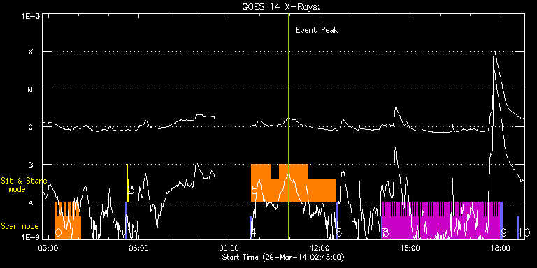 EIS Observation timeline overlay to GOES-Xray curve Code 1" 2" 40" 266" EIS Observations list for this event: STUDY ACRONYM ID DATE OBSERVED DESCRIPTION NOAA# TARGET 0 HH_Flare_162x152 | 39430 | 2014/03/29 03:13:43 | IHOP246 (AR12014, hot plasma) | 2014 | Flare TIMELINE ID DATE OBSERVED FITS FILE XCEN (+W/-E) YCEN (+N/-S) DUR ----------------------------------------------------------------------------------------------------------------- 39430 | 2014/03/29 03:13:43.000 | eis_l0_20140329_031343.fits.gz | 659.15 | -168.27 | 4m11s 39430 | 2014/03/29 03:17:57.000 | eis_l0_20140329_031757.fits.gz | 659.61 | -168.50 | 4m10s 39430 | 2014/03/29 03:22:10.000 | eis_l0_20140329_032210.fits.gz | 660.15 | -168.42 | 4m11s 39430 | 2014/03/29 03:26:23.000 | eis_l0_20140329_032623.fits.gz | 660.46 | -168.50 | 4m11s 39430 | 2014/03/29 03:30:37.000 | eis_l0_20140329_033037.fits.gz | 660.92 | -168.50 | 4m11s 39430 | 2014/03/29 03:34:51.000 | eis_l0_20140329_033451.fits.gz | 661.46 | -168.58 | 4m10s 39430 | 2014/03/29 03:39:04.000 | eis_l0_20140329_033904.fits.gz | 661.93 | -168.65 | 4m10s 39430 | 2014/03/29 03:43:17.000 | eis_l0_20140329_034317.fits.gz | 662.31 | -168.73 | 4m11s 39430 | 2014/03/29 03:47:31.000 | eis_l0_20140329_034731.fits.gz | 662.78 | -168.73 | 4m10s 39430 | 2014/03/29 03:51:44.000 | eis_l0_20140329_035144.fits.gz | 663.24 | -168.89 | 4m11s 39430 | 2014/03/29 03:55:57.000 | eis_l0_20140329_035557.fits.gz | 663.62 | -168.81 | 4m11s 39430 | 2014/03/29 04:00:11.000 | eis_l0_20140329_040011.fits.gz | 664.01 | -168.96 | 4m11s 1 PRY_slot_contextLITE | 39413 | 2014/03/29 05:33:20 | EIS-AIA alignment | | Active Region TIMELINE ID DATE OBSERVED FITS FILE XCEN (+W/-E) YCEN (+N/-S) DUR ----------------------------------------------------------------------------------------------------------------- 39413 | 2014/03/29 05:33:20.000 | eis_l0_20140329_053320.fits.gz | -15.29 | -0.50 | 2m56s 2 Alignment_266 | 39414 | 2014/03/29 05:36:35 | EIS-AIA alignment | | Quiet Sun TIMELINE ID DATE OBSERVED FITS FILE XCEN (+W/-E) YCEN (+N/-S) DUR ----------------------------------------------------------------------------------------------------------------- 39414 | 2014/03/29 05:36:35.000 | eis_l0_20140329_053635.fits.gz | -132.57 | -0.42 | 1m22s 3 XRT_synop_AIA | 39415 | 2014/03/29 05:38:42 | EIS-AIA alignment | | Quiet Sun TIMELINE ID DATE OBSERVED FITS FILE XCEN (+W/-E) YCEN (+N/-S) DUR ----------------------------------------------------------------------------------------------------------------- 39415 | 2014/03/29 05:38:42.000 | eis_l0_20140329_053842.fits.gz | -132.57 | -0.42 | 10s 4 PRY_slot_context_v3 | 39438 | 2014/03/29 09:40:57 | HOP 241 - coordinated flare observatio | 2010 | Active Region TIMELINE ID DATE OBSERVED FITS FILE XCEN (+W/-E) YCEN (+N/-S) DUR ----------------------------------------------------------------------------------------------------------------- 39438 | 2014/03/29 09:40:57.000 | eis_l0_20140329_094057.fits.gz | 890.13 | -222.28 | 2m56s 5 FLAREDOP_EIS | 39439 | 2014/03/29 09:44:18 | HOP 241 - coordinated flare observatio | | Flare TIMELINE ID DATE OBSERVED FITS FILE XCEN (+W/-E) YCEN (+N/-S) DUR ----------------------------------------------------------------------------------------------------------------- 39439 | 2014/03/29 09:44:18.000 | eis_l0_20140329_094418.fits.gz | 904.87 | -222.35 | 38m55s 39439 | 2014/03/29 10:14:52.000 | eis_l0_20140329_101452.fits.gz | 904.94 | -222.28 | 25m18s 39439 | 2014/03/29 10:40:12.000 | eis_l0_20140329_104012.fits.gz | 904.79 | -222.20 | 55m52s 39439 | 2014/03/29 11:36:06.000 | eis_l0_20140329_113606.fits.gz | 904.87 | -222.20 | 55m51s 6 PRY_slot_context_v3 | 39440 | 2014/03/29 12:32:08 | HOP 241 - coordinated flare observatio | 2010 | Active Region TIMELINE ID DATE OBSERVED FITS FILE XCEN (+W/-E) YCEN (+N/-S) DUR ----------------------------------------------------------------------------------------------------------------- 39440 | 2014/03/29 12:32:08.000 | eis_l0_20140329_123208.fits.gz | 890.05 | -222.28 | 2m56s 7 PRY_slot_context_v3 | 39458 | 2014/03/29 14:02:13 | HOP 251 - spectropolarimetry of flares | 2017 | Active Region TIMELINE ID DATE OBSERVED FITS FILE XCEN (+W/-E) YCEN (+N/-S) DUR ----------------------------------------------------------------------------------------------------------------- 39458 | 2014/03/29 14:02:13.000 | eis_l0_20140329_140213.fits.gz | 455.77 | 276.43 | 2m57s 8 PRY_flare_1 | 39459 | 2014/03/29 14:05:21 | HOP 251 - spectropolarimetry of flares | | Flare TIMELINE ID DATE OBSERVED FITS FILE XCEN (+W/-E) YCEN (+N/-S) DUR ----------------------------------------------------------------------------------------------------------------- 39459 | 2014/03/29 14:05:21.000 | eis_l0_20140329_140521.fits.gz | 469.96 | 276.36 | 2m11s 39459 | 2014/03/29 14:07:35.000 | eis_l0_20140329_140735.fits.gz | 470.27 | 276.28 | 2m11s 39459 | 2014/03/29 14:09:49.000 | eis_l0_20140329_140949.fits.gz | 470.58 | 276.36 | 2m11s 39459 | 2014/03/29 14:12:03.000 | eis_l0_20140329_141203.fits.gz | 470.81 | 276.36 | 2m11s 39459 | 2014/03/29 14:14:16.000 | eis_l0_20140329_141416.fits.gz | 471.19 | 276.20 | 2m12s 39459 | 2014/03/29 14:16:30.000 | eis_l0_20140329_141630.fits.gz | 471.42 | 276.36 | 2m12s 39459 | 2014/03/29 14:18:44.000 | eis_l0_20140329_141844.fits.gz | 471.73 | 276.36 | 2m11s 39459 | 2014/03/29 14:20:58.000 | eis_l0_20140329_142058.fits.gz | 472.04 | 276.20 | 2m11s 39459 | 2014/03/29 14:23:12.000 | eis_l0_20140329_142312.fits.gz | 472.35 | 276.12 | 2m11s 39459 | 2014/03/29 14:25:26.000 | eis_l0_20140329_142526.fits.gz | 472.58 | 276.28 | 2m12s 39459 | 2014/03/29 14:27:40.000 | eis_l0_20140329_142740.fits.gz | 472.97 | 276.36 | 2m11s 39459 | 2014/03/29 14:29:54.000 | eis_l0_20140329_142954.fits.gz | 473.20 | 276.20 | 2m11s 39459 | 2014/03/29 14:32:08.000 | eis_l0_20140329_143208.fits.gz | 473.51 | 276.12 | 2m11s 39459 | 2014/03/29 14:34:22.000 | eis_l0_20140329_143422.fits.gz | 473.74 | 276.20 | 2m11s 39459 | 2014/03/29 14:36:36.000 |