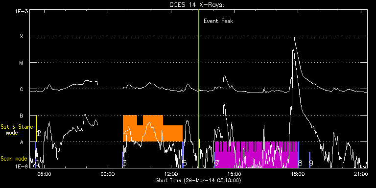EIS Observation timeline overlay to GOES-Xray curve