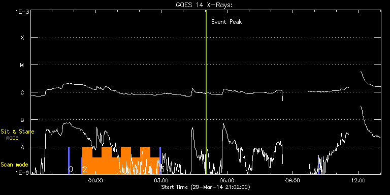 EIS Observation timeline overlay to GOES-Xray curve Code 1" 2" 40" 266" EIS Observations list for this event: STUDY ACRONYM ID DATE OBSERVED DESCRIPTION NOAA# TARGET 0 PRY_slot_context_v3 | 39466 | 2014/03/29 22:45:21 | EIS-IRIS active region outflow observa | 2010 | Active Region TIMELINE ID DATE OBSERVED FITS FILE XCEN (+W/-E) YCEN (+N/-S) DUR ----------------------------------------------------------------------------------------------------------------- 39466 | 2014/03/29 22:45:21.000 | eis_l0_20140329_224521.fits.gz | 745.83 | -199.03 | 2m56s 1 PRY_slot_context_v3 | 39455 | 2014/03/29 23:20:41 | HOP 246 - hot plasma properties in act | 2010 | Active Region TIMELINE ID DATE OBSERVED FITS FILE XCEN (+W/-E) YCEN (+N/-S) DUR ----------------------------------------------------------------------------------------------------------------- 39455 | 2014/03/29 23:20:41.000 | eis_l0_20140329_232041.fits.gz | 748.92 | -199.64 | 2m56s 2 PRY_footpoints_lite | 39456 | 2014/03/29 23:24:03 | HOP 246 - hot plasma properties in act | | Active Region TIMELINE ID DATE OBSERVED FITS FILE XCEN (+W/-E) YCEN (+N/-S) DUR ----------------------------------------------------------------------------------------------------------------- 39456 | 2014/03/29 23:24:03.000 | eis_l0_20140329_232403.fits.gz | 763.89 | -199.72 | 26m21s 39456 | 2014/03/29 23:50:27.000 | eis_l0_20140329_235027.fits.gz | 766.05 | -199.95 | 26m23s 39456 | 2014/03/30 00:16:53.000 | eis_l0_20140330_001653.fits.gz | 768.22 | -200.42 | 26m22s 39456 | 2014/03/30 00:43:18.000 | eis_l0_20140330_004318.fits.gz | 770.38 | -200.80 | 26m23s 39456 | 2014/03/30 01:09:44.000 | eis_l0_20140330_010944.fits.gz | 772.62 | -201.19 | 26m22s 39456 | 2014/03/30 01:36:10.000 | eis_l0_20140330_013610.fits.gz | 774.71 | -201.58 | 26m22s 39456 | 2014/03/30 02:02:35.000 | eis_l0_20140330_020235.fits.gz | 776.79 | -202.12 | 26m22s 39456 | 2014/03/30 02:29:01.000 | eis_l0_20140330_022901.fits.gz | 778.96 | -202.27 | 26m22s 3 PRY_slot_context_v3 | 39457 | 2014/03/30 02:55:34 | HOP 246 - hot plasma properties in act | 2010 | Active Region TIMELINE ID DATE OBSERVED FITS FILE XCEN (+W/-E) YCEN (+N/-S) DUR ----------------------------------------------------------------------------------------------------------------- 39457 | 2014/03/30 02:55:34.000 | eis_l0_20140330_025534.fits.gz | 766.30 | -202.89 | 2m56s 4 PRY_slot_context_v3 | 39461 | 2014/03/30 10:09:27 | HOP 251 - spectropolarimetry of flares | 2017 | Active Region TIMELINE ID DATE OBSERVED FITS FILE XCEN (+W/-E) YCEN (+N/-S) DUR ----------------------------------------------------------------------------------------------------------------- 39461 | 2014/03/30 10:09:27.000 | eis_l0_20140330_100927.fits.gz | 584.00 | 236.42 | 2m56s : Check study information : Download file : View thumbnails For this event, also check for:
