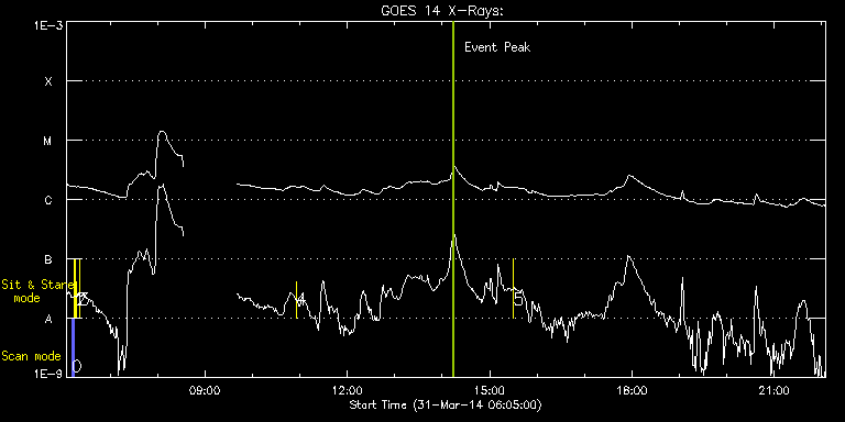 EIS Observation timeline overlay to GOES-Xray curve Code 1" 2" 40" 266" EIS Observations list for this event: STUDY ACRONYM ID DATE OBSERVED DESCRIPTION NOAA# TARGET 0 PRY_slot_contextLITE | 39449 | 2014/03/31 06:11:33 | EIS-AIA alignment | 2020 | Active Region TIMELINE ID DATE OBSERVED FITS FILE XCEN (+W/-E) YCEN (+N/-S) DUR ----------------------------------------------------------------------------------------------------------------- 39449 | 2014/03/31 06:11:33.000 | eis_l0_20140331_061133.fits.gz | -15.29 | -0.42 | 2m56s 1 Alignment_266 | 39450 | 2014/03/31 06:14:47 | EIS-AIA alignment | | Quiet Sun TIMELINE ID DATE OBSERVED FITS FILE XCEN (+W/-E) YCEN (+N/-S) DUR ----------------------------------------------------------------------------------------------------------------- 39450 | 2014/03/31 06:14:47.000 | eis_l0_20140331_061447.fits.gz | -132.49 | -0.65 | 1m22s 2 XRT_synop_AIA | 39451 | 2014/03/31 06:16:55 | EIS-AIA alignment | | Quiet Sun TIMELINE ID DATE OBSERVED FITS FILE XCEN (+W/-E) YCEN (+N/-S) DUR ----------------------------------------------------------------------------------------------------------------- 39451 | 2014/03/31 06:16:55.000 | eis_l0_20140331_061655.fits.gz | -132.49 | -0.42 | 10s 3 Flare266_Hunter03 | 39468 | 2014/03/31 06:21:12 | Flare hunter study | 2017 | Flare TIMELINE ID DATE OBSERVED FITS FILE XCEN (+W/-E) YCEN (+N/-S) DUR ----------------------------------------------------------------------------------------------------------------- 39468 | 2014/03/31 06:21:12.000 | eis_l0_20140331_062112.fits.gz | 598.28 | 220.74 | 5s 4 Flare266_Hunter03 | 39469 | 2014/03/31 10:55:19 | Flare hunter study | 2017 | Flare TIMELINE ID DATE OBSERVED FITS FILE XCEN (+W/-E) YCEN (+N/-S) DUR ----------------------------------------------------------------------------------------------------------------- 39469 | 2014/03/31 10:55:19.000 | eis_l0_20140331_105519.fits.gz | 624.15 | 216.64 | 5s 5 Flare266_Hunter03 | 39470 | 2014/03/31 15:30:19 | Flare hunter study | 2017 | Flare TIMELINE ID DATE OBSERVED FITS FILE XCEN (+W/-E) YCEN (+N/-S) DUR ----------------------------------------------------------------------------------------------------------------- 39470 | 2014/03/31 15:30:19.000 | eis_l0_20140331_153019.fits.gz | 661.15 | 248.93 | 5s : Check study information : Download file : View thumbnails For this event, also check for:
