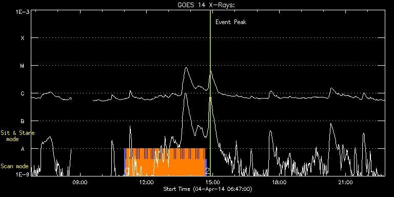 EIS Observation timeline overlay to GOES-Xray curve Code 1" 2" 40" 266" EIS Observations list for this event: STUDY ACRONYM ID DATE OBSERVED DESCRIPTION NOAA# TARGET 0 PRY_slot_context_v3 | 39531 | 2014/04/04 11:00:27 | HOP 245 - microflares (with IRIS) | 2027 | Active Region TIMELINE ID DATE OBSERVED FITS FILE XCEN (+W/-E) YCEN (+N/-S) DUR ----------------------------------------------------------------------------------------------------------------- 39531 | 2014/04/04 11:00:27.000 | eis_l0_20140404_110027.fits.gz | -443.16 | 285.78 | 2m57s 1 Cam_flare_diag | 39532 | 2014/04/04 11:03:49 | HOP 245 - microlares (with IRIS) | 2027 | Flare TIMELINE ID DATE OBSERVED FITS FILE XCEN (+W/-E) YCEN (+N/-S) DUR ----------------------------------------------------------------------------------------------------------------- 39532 | 2014/04/04 11:03:49.000 | eis_l0_20140404_110349.fits.gz | -461.92 | 273.93 | 2m12s 39532 | 2014/04/04 11:06:04.000 | eis_l0_20140404_110604.fits.gz | -461.92 | 273.86 | 2m12s 39532 | 2014/04/04 11:08:18.000 | eis_l0_20140404_110818.fits.gz | -461.62 | 273.86 | 2m12s 39532 | 2014/04/04 11:10:33.000 | eis_l0_20140404_111033.fits.gz | -461.23 | 273.78 | 2m12s 39532 | 2014/04/04 11:12:48.000 | eis_l0_20140404_111248.fits.gz | -461.00 | 273.93 | 2m12s 39532 | 2014/04/04 11:15:03.000 | eis_l0_20140404_111503.fits.gz | -460.69 | 273.93 | 2m12s 39532 | 2014/04/04 11:17:17.000 | eis_l0_20140404_111717.fits.gz | -460.30 | 273.93 | 2m12s 39532 | 2014/04/04 11:19:32.000 | eis_l0_20140404_111932.fits.gz | -459.99 | 273.86 | 2m12s 39532 | 2014/04/04 11:21:46.000 | eis_l0_20140404_112146.fits.gz | -459.68 | 273.93 | 2m12s 39532 | 2014/04/04 11:24:01.000 | eis_l0_20140404_112401.fits.gz | -459.45 | 274.01 | 2m12s 39532 | 2014/04/04 11:26:15.000 | eis_l0_20140404_112615.fits.gz | -459.22 | 273.86 | 2m12s 39532 | 2014/04/04 11:28:30.000 | eis_l0_20140404_112830.fits.gz | -458.91 | 274.01 | 2m12s 39532 | 2014/04/04 11:30:44.000 | eis_l0_20140404_113044.fits.gz | -458.53 | 273.93 | 2m12s 39532 | 2014/04/04 11:32:59.000 | eis_l0_20140404_113259.fits.gz | -458.22 | 274.01 | 2m12s 39532 | 2014/04/04 11:35:14.000 | eis_l0_20140404_113514.fits.gz | -457.91 | 274.09 | 2m12s 39532 | 2014/04/04 11:37:28.000 | eis_l0_20140404_113728.fits.gz | -457.60 | 274.09 | 2m12s 39532 | 2014/04/04 11:39:43.000 | eis_l0_20140404_113943.fits.gz | -457.29 | 274.01 | 2m12s 39532 | 2014/04/04 11:41:57.000 | eis_l0_20140404_114157.fits.gz | -456.98 | 274.09 | 2m12s 39532 | 2014/04/04 11:44:12.000 | eis_l0_20140404_114412.fits.gz | -456.75 | 274.24 | 2m12s 39532 | 2014/04/04 11:46:26.000 | eis_l0_20140404_114626.fits.gz | -456.52 | 274.09 | 2m12s 39532 | 2014/04/04 11:48:41.000 | eis_l0_20140404_114841.fits.gz | -456.13 | 274.09 | 2m12s 39532 | 2014/04/04 11:50:55.000 | eis_l0_20140404_115055.fits.gz | -455.82 | 274.24 | 2m12s 39532 | 2014/04/04 11:53:10.000 | eis_l0_20140404_115310.fits.gz | -455.51 | 274.17 | 2m12s 39532 | 2014/04/04 11:55:25.000 | eis_l0_20140404_115525.fits.gz | -455.28 | 274.32 | 2m12s 39532 | 2014/04/04 11:57:39.000 | eis_l0_20140404_115739.fits.gz | -454.97 | 274.24 | 2m12s 39532 | 2014/04/04 11:59:54.000 | eis_l0_20140404_115954.fits.gz | -454.59 | 274.17 | 2m12s 39532 | 2014/04/04 12:02:09.000 | eis_l0_20140404_120209.fits.gz | -454.28 | 274.17 | 2m12s 39532 | 2014/04/04 12:04:24.000 | eis_l0_20140404_120424.fits.gz | -454.05 | 274.32 | 2m12s 39532 | 2014/04/04 12:06:38.000 | eis_l0_20140404_120638.fits.gz | -453.66 | 274.40 | 2m12s 39532 | 2014/04/04 12:08:53.000 | eis_l0_20140404_120853.fits.gz | -453.27 | 274.32 | 2m12s 39532 | 2014/04/04 12:11:07.000 | eis_l0_20140404_121107.fits.gz | -453.12 | 274.32 | 2m12s 39532 | 2014/04/04 12:13:22.000 | eis_l0_20140404_121322.fits.gz | -452.73 | 274.17 | 2m12s 39532 | 2014/04/04 12:15:36.000 | eis_l0_20140404_121536.fits.gz | -452.42 | 274.40 | 2m12s 39532 | 2014/04/04 12:17:51.000 | eis_l0_20140404_121751.fits.gz | -452.11 | 274.32 | 2m12s 39532 | 2014/04/04 12:20:05.000 | eis_l0_20140404_122005.fits.gz | -451.81 | 274.48 | 2m12s 39532 | 2014/04/04 12:22:20.000 | eis_l0_20140404_122220.fits.gz | -451.57 | 274.32 | 2m12s 39532 | 2014/04/04 12:24:34.000 | eis_l0_20140404_122434.fits.gz | -451.19 | 274.32 | 2m13s 39532 | 2014/04/04 12:26:49.000 | eis_l0_20140404_122649.fits.gz | -450.88 | 274.48 | 2m12s 39532 | 2014/04/04 12:29:04.000 | eis_l0_20140404_122904.fits.gz | -450.65 | 274.48 | 2m11s 39532 | 2014/04/04 12:31:18.000 | eis_l0_20140404_123118.fits.gz | -450.34 | 274.40 | 2m12s 39532 | 2014/04/04 12:33:33.000 | eis_l0_20140404_123333.fits.gz | -450.03 | 274.48 | 2m12s 39532 | 2014/04/04 12:35:47.000 | eis_l0_20140404_123547.fits.gz | -449.80 | 274.55 | 2m12s 39532 | 2014/04/04 12:38:02.000 | eis_l0_20140404_123802.fits.gz | -449.49 | 274.55 | 2m12s 39532 | 2014/04/04 12:40:16.000 | eis_l0_20140404_124016.fits.gz | -449.10 | 274.48 | 2m12s 39532 | 2014/04/04 12:42:31.000 | eis_l0_20140404_124231.fits.gz | -448.79 | 274.48 | 2m11s 39532 | 2014/04/04 12:44:45.000 | eis_l0_20140404_124445.fits.gz | -448.41 | 274.48 | 2m12s 39532 | 2014/04/04 12:47:00.000 | eis_l0_20140404_124700.fits.gz | -448.10 | 274.40 | 2m12s 39532 | 2014/04/04 12:49:14.000 | eis_l0_20140404_124914.fits.gz | -447.87 | 274.71 | 2m13s 39532 | 2014/04/04 12:51:29.000 | eis_l0_20140404_125129.fits.gz | -447.56 | 274.71 | 2m12s 39532 | 2014/04/04 12:53:44.000 | eis_l0_20140404_125344.fits.gz | -447.25 | 274.71 | 2m12s 39532 | 2014/04/04 12:55:58.000 | eis_l0_20140404_125558.fits.gz | -446.94 | 274.55 | 2m12s 39532 | 2014/04/04 12:58:13.000 | eis_l0_20140404_125813.fits.gz | -446.63 | 274.63 | 2m11s 39532 | 2014/04/04 13:00:27.000 | eis_l0_20140404_130027.fits.gz | -446.32 | 274.48 | 2m12s 39532 | 2014/04/04 13:02:42.000 | eis_l0_20140404_130242.fits.gz | -446.09 | 274.71 | 2m12s 39532 | 2014/04/04 13:04:56.000 | eis_l0_20140404_130456.fits.gz | -445.78 | 274.78 | 2m12s 39532 | 2014/04/04 13:07:11.000 | eis_l0_20140404_130711.fits.gz | -445.47 | 274.71 | 2m12s 39532 | 2014/04/04 13: