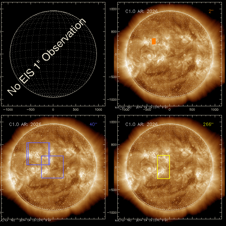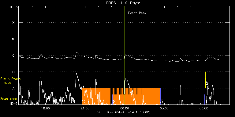 EIS Observation timeline overlay to GOES-Xray curve Code 1" 2" 40" 266" EIS Observations list for this event: STUDY ACRONYM ID DATE OBSERVED DESCRIPTION NOAA# TARGET 0 DHB_006_v2 | 39498 | 2014/04/04 20:47:33 | HOP 253 - active region loop expansion | | Active Region TIMELINE ID DATE OBSERVED FITS FILE XCEN (+W/-E) YCEN (+N/-S) DUR ----------------------------------------------------------------------------------------------------------------- 39498 | 2014/04/04 20:47:33.000 | eis_l0_20140404_204733.fits.gz | -9916.88 | -9980.20 | 2h6m53s 1 PRY_slot_context_v3 | 39541 | 2014/04/04 23:02:19 | HOP 245 - microflares (with IRIS) | 2027 | Active Region TIMELINE ID DATE OBSERVED FITS FILE XCEN (+W/-E) YCEN (+N/-S) DUR ----------------------------------------------------------------------------------------------------------------- 39541 | 2014/04/04 23:02:19.000 | eis_l0_20140404_230219.fits.gz | -342.90 | 290.34 | 2m56s 2 Cam_flare_diag | 39542 | 2014/04/04 23:05:41 | HOP 245 - microlares (with IRIS) | | Flare TIMELINE ID DATE OBSERVED FITS FILE XCEN (+W/-E) YCEN (+N/-S) DUR ----------------------------------------------------------------------------------------------------------------- 39542 | 2014/04/04 23:05:41.000 | eis_l0_20140404_230541.fits.gz | -362.04 | 278.42 | 2m12s 39542 | 2014/04/04 23:07:55.000 | eis_l0_20140404_230755.fits.gz | -361.73 | 278.18 | 2m12s 39542 | 2014/04/04 23:10:10.000 | eis_l0_20140404_231010.fits.gz | -361.43 | 278.34 | 2m12s 39542 | 2014/04/04 23:12:24.000 | eis_l0_20140404_231224.fits.gz | -361.04 | 278.34 | 2m12s 39542 | 2014/04/04 23:14:39.000 | eis_l0_20140404_231439.fits.gz | -360.73 | 278.42 | 2m12s 39542 | 2014/04/04 23:16:54.000 | eis_l0_20140404_231654.fits.gz | -360.35 | 278.34 | 2m11s 39542 | 2014/04/04 23:19:08.000 | eis_l0_20140404_231908.fits.gz | -360.11 | 278.34 | 2m12s 39542 | 2014/04/04 23:21:22.000 | eis_l0_20140404_232122.fits.gz | -359.80 | 278.57 | 2m12s 39542 | 2014/04/04 23:23:37.000 | eis_l0_20140404_232337.fits.gz | -359.42 | 278.42 | 2m12s 39542 | 2014/04/04 23:25:52.000 | eis_l0_20140404_232552.fits.gz | -359.19 | 278.49 | 2m12s 39542 | 2014/04/04 23:28:06.000 | eis_l0_20140404_232806.fits.gz | -358.80 | 278.42 | 2m12s 39542 | 2014/04/04 23:30:21.000 | eis_l0_20140404_233021.fits.gz | -358.49 | 278.42 | 2m12s 39542 | 2014/04/04 23:32:35.000 | eis_l0_20140404_233235.fits.gz | -358.18 | 278.65 | 2m12s 39542 | 2014/04/04 23:34:50.000 | eis_l0_20140404_233450.fits.gz | -357.87 | 278.49 | 2m12s 39542 | 2014/04/04 23:37:04.000 | eis_l0_20140404_233704.fits.gz | -357.49 | 278.42 | 2m12s 39542 | 2014/04/04 23:39:19.000 | eis_l0_20140404_233919.fits.gz | -357.26 | 278.57 | 2m11s 39542 | 2014/04/04 23:41:33.000 | eis_l0_20140404_234133.fits.gz | -356.95 | 278.42 | 2m12s 39542 | 2014/04/04 23:43:48.000 | eis_l0_20140404_234348.fits.gz | -356.56 | 278.42 | 2m12s 39542 | 2014/04/04 23:46:03.000 | eis_l0_20140404_234603.fits.gz | -356.33 | 278.57 | 2m12s 39542 | 2014/04/04 23:48:17.000 | eis_l0_20140404_234817.fits.gz | -356.02 | 278.65 | 2m13s 39542 | 2014/04/04 23:50:32.000 | eis_l0_20140404_235032.fits.gz | -355.63 | 278.57 | 2m12s 39542 | 2014/04/04 23:52:47.000 | eis_l0_20140404_235247.fits.gz | -355.32 | 278.57 | 2m12s 39542 | 2014/04/04 23:55:01.000 | eis_l0_20140404_235501.fits.gz | -355.01 | 278.42 | 2m12s 39542 | 2014/04/04 23:57:16.000 | eis_l0_20140404_235716.fits.gz | -354.71 | 278.57 | 2m12s 39542 | 2014/04/04 23:59:30.000 | eis_l0_20140404_235930.fits.gz | -354.32 | 278.49 | 2m12s 39542 | 2014/04/05 00:01:45.000 | eis_l0_20140405_000145.fits.gz | -354.09 | 278.65 | 2m12s 39542 | 2014/04/05 00:03:59.000 | eis_l0_20140405_000359.fits.gz | -353.70 | 278.57 | 2m12s 39542 | 2014/04/05 00:06:14.000 | eis_l0_20140405_000614.fits.gz | -353.47 | 278.65 | 2m12s 39542 | 2014/04/05 00:08:28.000 | eis_l0_20140405_000828.fits.gz | -353.16 | 278.57 | 2m12s 39542 | 2014/04/05 00:10:43.000 | eis_l0_20140405_001043.fits.gz | -352.85 | 278.65 | 2m12s 39542 | 2014/04/05 00:12:57.000 | eis_l0_20140405_001257.fits.gz | -352.46 | 278.57 | 2m12s 39542 | 2014/04/05 00:15:12.000 | eis_l0_20140405_001512.fits.gz | -352.08 | 278.72 | 2m12s 39542 | 2014/04/05 00:17:26.000 | eis_l0_20140405_001726.fits.gz | -351.77 | 278.65 | 2m12s 39542 | 2014/04/05 00:19:41.000 | eis_l0_20140405_001941.fits.gz | -351.46 | 278.72 | 2m12s 39542 | 2014/04/05 00:21:55.000 | eis_l0_20140405_002155.fits.gz | -351.15 | 278.80 | 2m12s 39542 | 2014/04/05 00:24:10.000 | eis_l0_20140405_002410.fits.gz | -350.84 | 278.65 | 2m11s 39542 | 2014/04/05 00:26:24.000 | eis_l0_20140405_002624.fits.gz | -350.53 | 278.72 | 2m12s 39542 | 2014/04/05 00:28:39.000 | eis_l0_20140405_002839.fits.gz | -350.23 | 278.57 | 2m12s 39542 | 2014/04/05 00:30:54.000 | eis_l0_20140405_003054.fits.gz | -349.53 | 278.80 | 2m12s 39542 | 2014/04/05 00:33:08.000 | eis_l0_20140405_003308.fits.gz | -349.61 | 278.80 | 2m13s 39542 | 2014/04/05 00:35:23.000 | eis_l0_20140405_003523.fits.gz | -349.14 | 278.80 | 2m12s 39542 | 2014/04/05 00:37:38.000 | eis_l0_20140405_003738.fits.gz | -348.91 | 278.65 | 2m12s 39542 | 2014/04/05 00:39:52.000 | eis_l0_20140405_003952.fits.gz | -348.60 | 278.72 | 2m12s 39542 | 2014/04/05 00:42:07.000 | eis_l0_20140405_004207.fits.gz | -348.29 | 278.80 | 2m11s 39542 | 2014/04/05 00:44:21.000 | eis_l0_20140405_004421.fits.gz | -347.98 | 278.72 | 2m12s 39542 | 2014/04/05 00:46:36.000 | eis_l0_20140405_004636.fits.gz | -347.68 | 278.88 | 1m32s 39542 | 2014/04/05 00:49:04.000 | eis_l0_20140405_004904.fits.gz | -347.29 | 278.95 | 1m58s 39542 | 2014/04/05 00:51:05.000 | eis_l0_20140405_005105.fits.gz | -347.06 | 278.80 | 2m5s 39542 | 2014/04/05 00:53:52.000 | eis_l0_20140405_005352.fits.gz | -346.67 | 278.88 | 1m39s 39542 | 2014/04/05 00:55:34.000 | eis_l0_20140405_005534.fits.gz | -346.36 | 278.95 | 2m11s 39542 | 2014/04/05 00:57:48.000 | eis_l0_20140405_005748.fits.gz | -346.05 | 278.95 | 2m12s 39542 | 2014/04/05 01:00:03.000 | eis_l0_20140405_010003.fits.gz | -345.67 | 279.03 | 2m11s 39542 | 2014/04/0