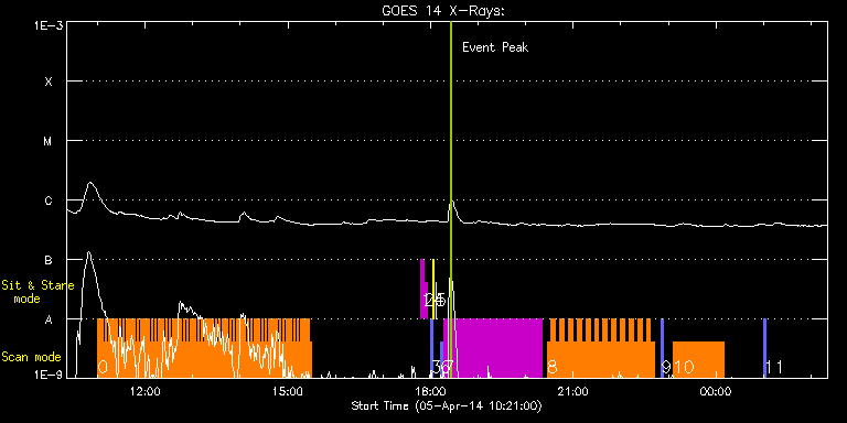 EIS Observation timeline overlay to GOES-Xray curve Code 1" 2" 40" 266" EIS Observations list for this event: STUDY ACRONYM ID DATE OBSERVED DESCRIPTION NOAA# TARGET 0 Cam_flare_diag | 39573 | 2014/04/05 11:00:20 | Joint IRIS/Hinode observations of smal | | Flare TIMELINE ID DATE OBSERVED FITS FILE XCEN (+W/-E) YCEN (+N/-S) DUR ----------------------------------------------------------------------------------------------------------------- 39573 | 2014/04/05 11:00:20.000 | eis_l0_20140405_110020.fits.gz | -237.74 | 285.43 | 2m12s 39573 | 2014/04/05 11:02:35.000 | eis_l0_20140405_110235.fits.gz | -237.43 | 285.50 | 2m11s 39573 | 2014/04/05 11:04:49.000 | eis_l0_20140405_110449.fits.gz | -237.12 | 285.27 | 2m12s 39573 | 2014/04/05 11:07:03.000 | eis_l0_20140405_110703.fits.gz | -236.73 | 285.35 | 2m12s 39573 | 2014/04/05 11:09:17.000 | eis_l0_20140405_110917.fits.gz | -236.43 | 285.35 | 2m12s 39573 | 2014/04/05 11:11:32.000 | eis_l0_20140405_111132.fits.gz | -236.12 | 285.35 | 2m12s 39573 | 2014/04/05 11:13:46.000 | eis_l0_20140405_111346.fits.gz | -235.81 | 285.35 | 2m12s 39573 | 2014/04/05 11:16:01.000 | eis_l0_20140405_111601.fits.gz | -235.50 | 285.35 | 2m11s 39573 | 2014/04/05 11:18:15.000 | eis_l0_20140405_111815.fits.gz | -235.11 | 285.20 | 2m12s 39573 | 2014/04/05 11:20:29.000 | eis_l0_20140405_112029.fits.gz | -234.88 | 285.35 | 2m12s 39573 | 2014/04/05 11:22:44.000 | eis_l0_20140405_112244.fits.gz | -234.49 | 285.43 | 2m12s 39573 | 2014/04/05 11:24:58.000 | eis_l0_20140405_112458.fits.gz | -234.18 | 285.12 | 2m12s 39573 | 2014/04/05 11:27:13.000 | eis_l0_20140405_112713.fits.gz | -233.80 | 285.20 | 2m12s 39573 | 2014/04/05 11:29:27.000 | eis_l0_20140405_112927.fits.gz | -233.49 | 285.43 | 2m12s 39573 | 2014/04/05 11:31:42.000 | eis_l0_20140405_113142.fits.gz | -233.10 | 285.58 | 2m12s 39573 | 2014/04/05 11:33:57.000 | eis_l0_20140405_113357.fits.gz | -232.87 | 285.50 | 2m12s 39573 | 2014/04/05 11:36:11.000 | eis_l0_20140405_113611.fits.gz | -232.41 | 285.43 | 2m13s 39573 | 2014/04/05 11:38:26.000 | eis_l0_20140405_113826.fits.gz | -232.18 | 285.43 | 2m12s 39573 | 2014/04/05 11:40:41.000 | eis_l0_20140405_114041.fits.gz | -231.87 | 285.50 | 2m12s 39573 | 2014/04/05 11:42:55.000 | eis_l0_20140405_114255.fits.gz | -231.48 | 285.43 | 2m12s 39573 | 2014/04/05 11:45:10.000 | eis_l0_20140405_114510.fits.gz | -231.17 | 285.50 | 2m11s 39573 | 2014/04/05 11:47:24.000 | eis_l0_20140405_114724.fits.gz | -230.79 | 285.43 | 2m12s 39573 | 2014/04/05 11:49:39.000 | eis_l0_20140405_114939.fits.gz | -230.48 | 285.66 | 2m12s 39573 | 2014/04/05 11:51:53.000 | eis_l0_20140405_115153.fits.gz | -230.17 | 285.43 | 2m12s 39573 | 2014/04/05 11:54:08.000 | eis_l0_20140405_115408.fits.gz | -229.78 | 285.43 | 2m12s 39573 | 2014/04/05 11:56:23.000 | eis_l0_20140405_115623.fits.gz | -229.47 | 285.43 | 2m12s 39573 | 2014/04/05 11:58:37.000 | eis_l0_20140405_115837.fits.gz | -229.16 | 285.43 | 2m12s 39573 | 2014/04/05 12:00:52.000 | eis_l0_20140405_120052.fits.gz | -228.85 | 285.35 | 2m12s 39573 | 2014/04/05 12:03:07.000 | eis_l0_20140405_120307.fits.gz | -228.47 | 285.50 | 2m12s 39573 | 2014/04/05 12:05:21.000 | eis_l0_20140405_120521.fits.gz | -228.24 | 285.58 | 2m12s 39573 | 2014/04/05 12:07:36.000 | eis_l0_20140405_120736.fits.gz | -227.85 | 285.66 | 2m12s 39573 | 2014/04/05 12:09:50.000 | eis_l0_20140405_120950.fits.gz | -227.46 | 285.50 | 2m12s 39573 | 2014/04/05 12:12:05.000 | eis_l0_20140405_121205.fits.gz | -227.15 | 285.66 | 2m12s 39573 | 2014/04/05 12:14:19.000 | eis_l0_20140405_121419.fits.gz | -226.85 | 285.58 | 2m12s 39573 | 2014/04/05 12:16:34.000 | eis_l0_20140405_121634.fits.gz | -226.46 | 285.66 | 2m11s 39573 | 2014/04/05 12:18:48.000 | eis_l0_20140405_121848.fits.gz | -226.23 | 285.66 | 2m12s 39573 | 2014/04/05 12:21:03.000 | eis_l0_20140405_122103.fits.gz | -225.76 | 285.66 | 2m12s 39573 | 2014/04/05 12:23:17.000 | eis_l0_20140405_122317.fits.gz | -225.53 | 285.74 | 2m12s 39573 | 2014/04/05 12:25:32.000 | eis_l0_20140405_122532.fits.gz | -225.15 | 285.58 | 2m12s 39573 | 2014/04/05 12:27:46.000 | eis_l0_20140405_122746.fits.gz | -224.91 | 285.66 | 2m12s 39573 | 2014/04/05 12:30:01.000 | eis_l0_20140405_123001.fits.gz | -224.61 | 285.66 | 2m11s 39573 | 2014/04/05 12:32:15.000 | eis_l0_20140405_123215.fits.gz | -224.30 | 285.74 | 2m12s 39573 | 2014/04/05 12:34:29.000 | eis_l0_20140405_123429.fits.gz | -223.91 | 285.81 | 2m13s 39573 | 2014/04/05 12:36:44.000 | eis_l0_20140405_123644.fits.gz | -223.52 | 285.66 | 2m12s 39573 | 2014/04/05 12:38:59.000 | eis_l0_20140405_123859.fits.gz | -223.22 | 285.66 | 2m12s 39573 | 2014/04/05 12:41:13.000 | eis_l0_20140405_124113.fits.gz | -222.83 | 285.66 | 2m13s 39573 | 2014/04/05 12:43:28.000 | eis_l0_20140405_124328.fits.gz | -222.52 | 285.66 | 2m12s 39573 | 2014/04/05 12:45:43.000 | eis_l0_20140405_124543.fits.gz | -222.29 | 285.81 | 2m12s 39573 | 2014/04/05 12:47:58.000 | eis_l0_20140405_124758.fits.gz | -221.90 | 285.81 | 2m12s 39573 | 2014/04/05 12:50:12.000 | eis_l0_20140405_125012.fits.gz | -221.52 | 285.81 | 2m12s 39573 | 2014/04/05 12:52:27.000 | eis_l0_20140405_125227.fits.gz | -221.21 | 285.81 | 2m12s 39573 | 2014/04/05 12:54:41.000 | eis_l0_20140405_125441.fits.gz | -220.90 | 285.74 | 2m12s 39573 | 2014/04/05 12:56:56.000 | eis_l0_20140405_125656.fits.gz | -220.59 | 285.66 | 2m12s 39573 | 2014/04/05 12:59:10.000 | eis_l0_20140405_125910.fits.gz | -220.28 | 285.66 | 2m12s 39573 | 2014/04/05 13:01:25.000 | eis_l0_20140405_130125.fits.gz | -219.89 | 285.81 | 2m11s 39573 | 2014/04/05 13:03:39.000 | eis_l0_20140405_130339.fits.gz | -219.59 | 285.66 | 2m12s 39573 | 2014/04/05 13:05:54.000 | eis_l0_20140405_130554.fits.gz | -219.20 | 285.74 | 2m11s 39573 | 2014/04/05 13:08:08.000 | eis_l0_20140405_130808.fits.gz | -218.89 | 285.89 | 2m12s 39573 | 2014/04/05 13:10:23.000 | eis_l0_20140405_131023.fits.gz | -218.58 | 285.81 | 2m11s 39573 | 2014/04/05 13:12:37.000 | eis_l0_20140405_131237.fits.gz | -218.27 | 285.58 | 2m12s 39573 | 2014/04/05 13:14:52.000 | ei