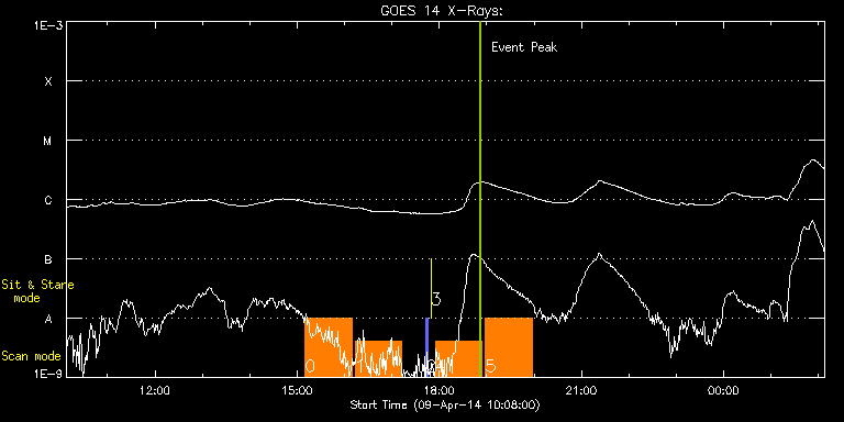 EIS Observation timeline overlay to GOES-Xray curve Code 1" 2" 40" 266" EIS Observations list for this event: STUDY ACRONYM ID DATE OBSERVED DESCRIPTION NOAA# TARGET 0 ISSI_jet_1 | 39590 | 2014/04/09 15:10:27 | On-Disk coronal hole observations | | Quiet Sun TIMELINE ID DATE OBSERVED FITS FILE XCEN (+W/-E) YCEN (+N/-S) DUR ----------------------------------------------------------------------------------------------------------------- 39590 | 2014/04/09 15:10:27.000 | eis_l0_20140409_151027.fits.gz | -91.57 | 452.29 | 58m36s 1 ISSI_jet_1 | 39591 | 2014/04/09 16:13:40 | On-Disk coronal hole observations | | Quiet Sun TIMELINE ID DATE OBSERVED FITS FILE XCEN (+W/-E) YCEN (+N/-S) DUR ----------------------------------------------------------------------------------------------------------------- 39591 | 2014/04/09 16:13:40.000 | eis_l0_20140409_161340.fits.gz | -82.84 | 452.44 | 58m36s 2 PRY_slot_contextLITE | 39580 | 2014/04/09 17:43:19 | Change of EIS pointing and alignment w | | Active Region TIMELINE ID DATE OBSERVED FITS FILE XCEN (+W/-E) YCEN (+N/-S) DUR ----------------------------------------------------------------------------------------------------------------- 39580 | 2014/04/09 17:43:19.000 | eis_l0_20140409_174319.fits.gz | -15.14 | -0.50 | 2m57s 3 XRT_synop_AIA | 39582 | 2014/04/09 17:49:30 | Change of EIS pointing and aligment wi | | Quiet Sun TIMELINE ID DATE OBSERVED FITS FILE XCEN (+W/-E) YCEN (+N/-S) DUR ----------------------------------------------------------------------------------------------------------------- 39582 | 2014/04/09 17:49:30.000 | eis_l0_20140409_174930.fits.gz | -132.57 | -0.50 | 10s 4 ISSI_jet_1 | 39595 | 2014/04/09 17:55:20 | On-Disk coronal hole observations | | Quiet Sun TIMELINE ID DATE OBSERVED FITS FILE XCEN (+W/-E) YCEN (+N/-S) DUR ----------------------------------------------------------------------------------------------------------------- 39595 | 2014/04/09 17:55:20.000 | eis_l0_20140409_175520.fits.gz | -55.72 | 452.44 | 58m36s 5 ISSI_jet_1 | 39597 | 2014/04/09 18:58:40 | On-Disk coronal hole observations | | Quiet Sun TIMELINE ID DATE OBSERVED FITS FILE XCEN (+W/-E) YCEN (+N/-S) DUR ----------------------------------------------------------------------------------------------------------------- 39597 | 2014/04/09 18:58:40.000 | eis_l0_20140409_185840.fits.gz | -59.82 | 452.29 | 58m35s : Check study information : Download file : View thumbnails For this event, also check for: