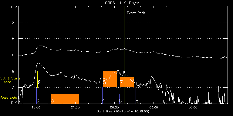 EIS Observation timeline overlay to GOES-Xray curve