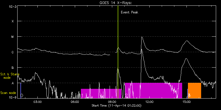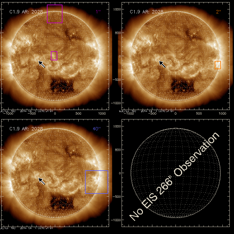 EIS Observation timeline overlay to GOES-Xray curve Code 1" 2" 40" 266" EIS Observations list for this event: STUDY ACRONYM ID DATE OBSERVED DESCRIPTION NOAA# TARGET 0 PRY_slot_context_v2 | 39612 | 2014/04/11 01:36:50 | Coronal rain diagnostics - thermal evo | | Active Region TIMELINE ID DATE OBSERVED FITS FILE XCEN (+W/-E) YCEN (+N/-S) DUR ----------------------------------------------------------------------------------------------------------------- 39612 | 2014/04/11 01:36:50.000 | eis_l0_20140411_013650.fits.gz | -9888.43 | -9963.20 | 2m33s 1 SYNOP006 | 39615 | 2014/04/11 06:29:20 | EIS Sensitivity Monitoring (Synop006) | | Quiet Sun TIMELINE ID DATE OBSERVED FITS FILE XCEN (+W/-E) YCEN (+N/-S) DUR ----------------------------------------------------------------------------------------------------------------- 39615 | 2014/04/11 06:29:20.000 | eis_l0_20140411_062920.fits.gz | -19.99 | 0.74 | 3h15m33s 2 SK_CH_DIAG_320x384 | 39616 | 2014/04/11 10:02:40 | Polar Monitoring Campaign during the S | | Coronal Hole TIMELINE ID DATE OBSERVED FITS FILE XCEN (+W/-E) YCEN (+N/-S) DUR ----------------------------------------------------------------------------------------------------------------- 39616 | 2014/04/11 10:02:40.000 | eis_l0_20140411_100240.fits.gz | -4.80 | 899.67 | 4h35m37s 3 PRY_slot_context_v3 | 39623 | 2014/04/11 15:03:34 | EIS spectral atlas synoptic program | 2026 | Active Region TIMELINE ID DATE OBSERVED FITS FILE XCEN (+W/-E) YCEN (+N/-S) DUR ----------------------------------------------------------------------------------------------------------------- 39623 | 2014/04/11 15:03:34.000 | eis_l0_20140411_150334.fits.gz | 889.97 | -195.63 | 2m57s 4 Atlas_60 | 39624 | 2014/04/11 15:07:33 | EIS spectral atlas synoptic programme | 2026 | Quiet Sun TIMELINE ID DATE OBSERVED FITS FILE XCEN (+W/-E) YCEN (+N/-S) DUR ----------------------------------------------------------------------------------------------------------------- 39624 | 2014/04/11 15:07:33.000 | eis_l0_20140411_150733.fits.gz | 904.56 | -195.55 | 1h1m39s : Check study information : Download file : View thumbnails For this event, also check for: