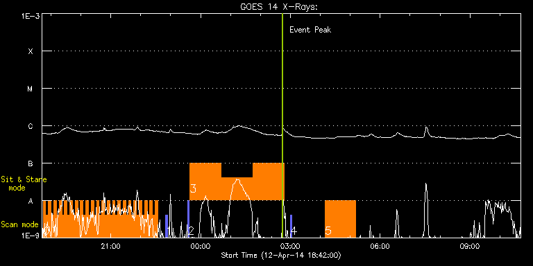 EIS Observation timeline overlay to GOES-Xray curve Code 1" 2" 40" 266" EIS Observations list for this event: STUDY ACRONYM ID DATE OBSERVED DESCRIPTION NOAA# TARGET 0 HH_Flare+AR_180x152 | 39634 | 2014/04/12 18:44:20 | Flare hunting at the east limb | | Flare TIMELINE ID DATE OBSERVED FITS FILE XCEN (+W/-E) YCEN (+N/-S) DUR ----------------------------------------------------------------------------------------------------------------- 39634 | 2014/04/12 18:44:20.000 | eis_l0_20140412_184420.fits.gz | -9916.88 | -9943.20 | 5m18s 39634 | 2014/04/12 18:49:41.000 | eis_l0_20140412_184941.fits.gz | -9916.88 | -9943.20 | 5m18s 39634 | 2014/04/12 18:55:02.000 | eis_l0_20140412_185502.fits.gz | -9916.88 | -9943.20 | 5m18s 39634 | 2014/04/12 19:00:23.000 | eis_l0_20140412_190023.fits.gz | -9916.88 | -9943.20 | 5m17s 39634 | 2014/04/12 19:05:43.000 | eis_l0_20140412_190543.fits.gz | -9916.88 | -9943.20 | 5m18s 39634 | 2014/04/12 19:11:04.000 | eis_l0_20140412_191104.fits.gz | -9916.88 | -9943.20 | 5m18s 39634 | 2014/04/12 19:16:25.000 | eis_l0_20140412_191625.fits.gz | -9916.88 | -9943.20 | 5m17s 39634 | 2014/04/12 19:21:45.000 | eis_l0_20140412_192145.fits.gz | -9916.88 | -9943.20 | 5m17s 39634 | 2014/04/12 19:27:05.000 | eis_l0_20140412_192705.fits.gz | -9916.88 | -9943.20 | 5m19s 39634 | 2014/04/12 19:32:26.000 | eis_l0_20140412_193226.fits.gz | -9916.88 | -9943.20 | 5m18s 39634 | 2014/04/12 19:37:47.000 | eis_l0_20140412_193747.fits.gz | -9916.88 | -9943.20 | 5m18s 39634 | 2014/04/12 19:43:08.000 | eis_l0_20140412_194308.fits.gz | -9916.88 | -9943.20 | 5m17s 39634 | 2014/04/12 19:48:28.000 | eis_l0_20140412_194828.fits.gz | -9916.88 | -9943.20 | 5m17s 39634 | 2014/04/12 19:53:48.000 | eis_l0_20140412_195348.fits.gz | -9916.88 | -9943.20 | 5m19s 39634 | 2014/04/12 19:59:10.000 | eis_l0_20140412_195910.fits.gz | -9916.88 | -9943.20 | 5m18s 39634 | 2014/04/12 20:04:31.000 | eis_l0_20140412_200431.fits.gz | -9916.88 | -9943.20 | 5m19s 39634 | 2014/04/12 20:09:53.000 | eis_l0_20140412_200953.fits.gz | -9916.88 | -9943.20 | 5m17s 39634 | 2014/04/12 20:15:13.000 | eis_l0_20140412_201513.fits.gz | -9916.88 | -9943.20 | 5m18s 39634 | 2014/04/12 20:20:34.000 | eis_l0_20140412_202034.fits.gz | -9916.88 | -9943.20 | 5m18s 39634 | 2014/04/12 20:25:55.000 | eis_l0_20140412_202555.fits.gz | -9916.88 | -9943.20 | 5m18s 39634 | 2014/04/12 20:31:16.000 | eis_l0_20140412_203116.fits.gz | -9916.88 | -9943.20 | 5m18s 39634 | 2014/04/12 20:36:37.000 | eis_l0_20140412_203637.fits.gz | -9916.88 | -9943.20 | 5m19s 39634 | 2014/04/12 20:41:58.000 | eis_l0_20140412_204158.fits.gz | -9916.88 | -9943.20 | 5m18s 39634 | 2014/04/12 20:47:19.000 | eis_l0_20140412_204719.fits.gz | -9916.88 | -9943.20 | 5m18s 39634 | 2014/04/12 20:52:40.000 | eis_l0_20140412_205240.fits.gz | -9916.88 | -9943.20 | 5m17s 39634 | 2014/04/12 20:58:00.000 | eis_l0_20140412_205800.fits.gz | -9916.88 | -9943.20 | 5m18s 39634 | 2014/04/12 21:03:20.000 | eis_l0_20140412_210320.fits.gz | -9916.88 | -9943.20 | 5m18s 39634 | 2014/04/12 21:08:41.000 | eis_l0_20140412_210841.fits.gz | -9916.88 | -9943.20 | 5m18s 39634 | 2014/04/12 21:14:02.000 | eis_l0_20140412_211402.fits.gz | -9916.88 | -9943.20 | 5m18s 39634 | 2014/04/12 21:19:23.000 | eis_l0_20140412_211923.fits.gz | -9916.88 | -9943.20 | 5m18s 39634 | 2014/04/12 21:24:44.000 | eis_l0_20140412_212444.fits.gz | -9916.88 | -9943.20 | 5m18s 39634 | 2014/04/12 21:30:05.000 | eis_l0_20140412_213005.fits.gz | -9916.88 | -9943.20 | 5m17s 39634 | 2014/04/12 21:35:25.000 | eis_l0_20140412_213525.fits.gz | -9916.88 | -9943.20 | 5m19s 39634 | 2014/04/12 21:40:46.000 | eis_l0_20140412_214046.fits.gz | -9916.88 | -9943.20 | 5m19s 39634 | 2014/04/12 21:46:08.000 | eis_l0_20140412_214608.fits.gz | -9916.88 | -9943.20 | 5m18s 39634 | 2014/04/12 21:51:29.000 | eis_l0_20140412_215129.fits.gz | -9916.88 | -9943.20 | 5m18s 39634 | 2014/04/12 21:56:49.000 | eis_l0_20140412_215649.fits.gz | -9916.88 | -9943.20 | 5m19s 39634 | 2014/04/12 22:02:11.000 | eis_l0_20140412_220211.fits.gz | -9916.88 | -9943.20 | 5m17s 39634 | 2014/04/12 22:07:31.000 | eis_l0_20140412_220731.fits.gz | -9916.88 | -9943.20 | 5m18s 39634 | 2014/04/12 22:12:52.000 | eis_l0_20140412_221252.fits.gz | -9916.88 | -9943.20 | 5m18s 39634 | 2014/04/12 22:18:13.000 | eis_l0_20140412_221813.fits.gz | -9916.88 | -9943.20 | 5m18s 39634 | 2014/04/12 22:23:33.000 | eis_l0_20140412_222333.fits.gz | -9916.88 | -9943.20 | 5m19s 39634 | 2014/04/12 22:28:55.000 | eis_l0_20140412_222855.fits.gz | -9916.88 | -9943.20 | 5m18s 1 PRY_slot_contextLITE | 39635 | 2014/04/12 22:50:20 | Flare hunting at the east limb | | Active Region TIMELINE ID DATE OBSERVED FITS FILE XCEN (+W/-E) YCEN (+N/-S) DUR ----------------------------------------------------------------------------------------------------------------- 39635 | 2014/04/12 22:50:20.000 | eis_l0_20140412_225020.fits.gz | -9929.62 | -9943.20 | 2m56s 2 PRY_slot_contextLITE | 39639 | 2014/04/12 23:34:13 | IHOP 248 | 2027 | Active Region TIMELINE ID DATE OBSERVED FITS FILE XCEN (+W/-E) YCEN (+N/-S) DUR ----------------------------------------------------------------------------------------------------------------- 39639 | 2014/04/12 23:34:13.000 | eis_l0_20140412_233413.fits.gz | 917.95 | 219.49 | 2m57s 3 vhh_slowar_sas_1h6m | 39640 | 2014/04/12 23:38:33 | IHOP 248 | | Active Region TIMELINE ID DATE OBSERVED FITS FILE XCEN (+W/-E) YCEN (+N/-S) DUR ----------------------------------------------------------------------------------------------------------------- 39640 | 2014/04/12 23:38:33.000 | eis_l0_20140412_233833.fits.gz | 989.59 | 219.57 | 1h2m51s 39640 | 2014/04/13 00:41:27.000 | eis_l0_20140413_004127.fits.gz | 989.59 | 219.49 | 1h2m50s 39640 | 2014/04/13 01:44:20.000 | eis_l0_20140413_014420.fits.gz | 989.52 | 219.57 | 1h2m51s 4 PRY_slot_contextLITE | 39641 | 2014/04/13 03:00:20 | IHOP 248 | 2027 | Active Region TIMELINE ID DATE OBSERVED FITS FILE XCEN (+W/-E) YCEN (+N/-S) DUR --------------------------------------------