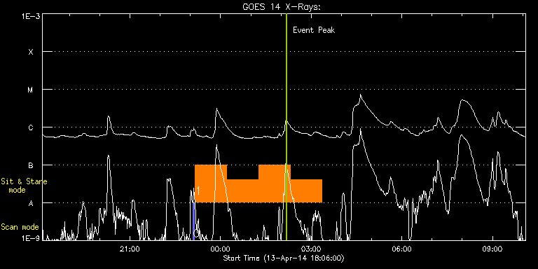 EIS Observation timeline overlay to GOES-Xray curve Code 1" 2" 40" 266" EIS Observations list for this event: STUDY ACRONYM ID DATE OBSERVED DESCRIPTION NOAA# TARGET 0 PRY_slot_contextLITE | 39649 | 2014/04/13 23:05:26 | IHOP 249 | | Active Region TIMELINE ID DATE OBSERVED FITS FILE XCEN (+W/-E) YCEN (+N/-S) DUR ----------------------------------------------------------------------------------------------------------------- 39649 | 2014/04/13 23:05:26.000 | eis_l0_20140413_230526.fits.gz | -21.20 | 919.37 | 2m57s 1 vhh_slowar_sas_1h6m | 39650 | 2014/04/13 23:09:33 | IHOP 249 | | Active Region TIMELINE ID DATE OBSERVED FITS FILE XCEN (+W/-E) YCEN (+N/-S) DUR ----------------------------------------------------------------------------------------------------------------- 39650 | 2014/04/13 23:09:33.000 | eis_l0_20140413_230933.fits.gz | -6.71 | 999.45 | 1h2m50s 39650 | 2014/04/14 00:12:26.000 | eis_l0_20140414_001226.fits.gz | -6.71 | 999.37 | 1h2m51s 39650 | 2014/04/14 01:15:20.000 | eis_l0_20140414_011520.fits.gz | -6.63 | 999.29 | 1h2m51s 39650 | 2014/04/14 02:18:14.000 | eis_l0_20140414_021814.fits.gz | -6.63 | 999.52 | 1h2m50s : Check study information : Download file : View thumbnails For this event, also check for: