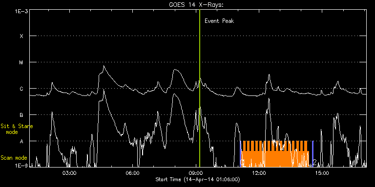 EIS Observation timeline overlay to GOES-Xray curve Code 1" 2" 40" 266" EIS Observations list for this event: STUDY ACRONYM ID DATE OBSERVED DESCRIPTION NOAA# TARGET 0 PRY_slot_context_v3 | 39651 | 2014/04/14 11:05:19 | AR12032 observations | 2032 | Active Region TIMELINE ID DATE OBSERVED FITS FILE XCEN (+W/-E) YCEN (+N/-S) DUR ----------------------------------------------------------------------------------------------------------------- 39651 | 2014/04/14 11:05:19.000 | eis_l0_20140414_110519.fits.gz | 13.72 | 350.51 | 2m57s 1 Cor_Hole_Jet_v1 | 39652 | 2014/04/14 11:09:12 | AR12032 observations | | Quiet Sun TIMELINE ID DATE OBSERVED FITS FILE XCEN (+W/-E) YCEN (+N/-S) DUR ----------------------------------------------------------------------------------------------------------------- 39652 | 2014/04/14 11:09:12.000 | eis_l0_20140414_110912.fits.gz | 52.12 | 321.43 | 5m47s 39652 | 2014/04/14 11:15:02.000 | eis_l0_20140414_111502.fits.gz | 52.89 | 321.35 | 5m47s 39652 | 2014/04/14 11:20:51.000 | eis_l0_20140414_112051.fits.gz | 53.74 | 321.43 | 5m47s 39652 | 2014/04/14 11:26:41.000 | eis_l0_20140414_112641.fits.gz | 54.67 | 321.28 | 5m47s 39652 | 2014/04/14 11:32:31.000 | eis_l0_20140414_113231.fits.gz | 55.52 | 321.35 | 5m15s 39652 | 2014/04/14 11:38:20.000 | eis_l0_20140414_113820.fits.gz | 56.45 | 321.28 | 5m47s 39652 | 2014/04/14 11:44:10.000 | eis_l0_20140414_114410.fits.gz | 57.30 | 321.28 | 5m47s 39652 | 2014/04/14 11:49:59.000 | eis_l0_20140414_114959.fits.gz | 58.22 | 321.20 | 5m47s 39652 | 2014/04/14 11:55:49.000 | eis_l0_20140414_115549.fits.gz | 59.00 | 321.35 | 5m47s 39652 | 2014/04/14 12:01:39.000 | eis_l0_20140414_120139.fits.gz | 59.92 | 321.28 | 5m46s 39652 | 2014/04/14 12:07:28.000 | eis_l0_20140414_120728.fits.gz | 60.85 | 321.12 | 5m47s 39652 | 2014/04/14 12:13:18.000 | eis_l0_20140414_121318.fits.gz | 61.70 | 321.12 | 5m46s 39652 | 2014/04/14 12:19:07.000 | eis_l0_20140414_121907.fits.gz | 62.55 | 321.12 | 5m47s 39652 | 2014/04/14 12:24:57.000 | eis_l0_20140414_122457.fits.gz | 63.40 | 321.12 | 5m46s 39652 | 2014/04/14 12:30:46.000 | eis_l0_20140414_123046.fits.gz | 64.33 | 321.12 | 5m47s 39652 | 2014/04/14 12:36:36.000 | eis_l0_20140414_123636.fits.gz | 65.18 | 320.97 | 5m46s 39652 | 2014/04/14 12:42:25.000 | eis_l0_20140414_124225.fits.gz | 66.03 | 321.12 | 5m47s 39652 | 2014/04/14 12:48:15.000 | eis_l0_20140414_124815.fits.gz | 66.95 | 321.05 | 5m47s 39652 | 2014/04/14 12:54:05.000 | eis_l0_20140414_125405.fits.gz | 67.80 | 321.05 | 5m47s 39652 | 2014/04/14 12:59:55.000 | eis_l0_20140414_125955.fits.gz | 68.65 | 321.35 | 5m46s 39652 | 2014/04/14 13:05:44.000 | eis_l0_20140414_130544.fits.gz | 69.58 | 321.20 | 5m47s 39652 | 2014/04/14 13:11:34.000 | eis_l0_20140414_131134.fits.gz | 70.43 | 321.20 | 5m47s 39652 | 2014/04/14 13:17:23.000 | eis_l0_20140414_131723.fits.gz | 71.28 | 321.12 | 5m47s 39652 | 2014/04/14 13:23:13.000 | eis_l0_20140414_132313.fits.gz | 72.13 | 321.12 | 5m47s 39652 | 2014/04/14 13:29:03.000 | eis_l0_20140414_132903.fits.gz | 73.06 | 321.05 | 5m47s 39652 | 2014/04/14 13:34:53.000 | eis_l0_20140414_133453.fits.gz | 73.91 | 320.97 | 5m47s 39652 | 2014/04/14 13:40:43.000 | eis_l0_20140414_134043.fits.gz | 74.76 | 320.97 | 5m47s 39652 | 2014/04/14 13:46:32.000 | eis_l0_20140414_134632.fits.gz | 75.68 | 320.89 | 5m48s 39652 | 2014/04/14 13:52:23.000 | eis_l0_20140414_135223.fits.gz | 76.61 | 320.97 | 5m47s 39652 | 2014/04/14 13:58:13.000 | eis_l0_20140414_135813.fits.gz | 77.38 | 320.81 | 5m47s 39652 | 2014/04/14 14:04:03.000 | eis_l0_20140414_140403.fits.gz | 78.23 | 320.89 | 5m46s 39652 | 2014/04/14 14:09:52.000 | eis_l0_20140414_140952.fits.gz | 79.16 | 320.89 | 5m47s 39652 | 2014/04/14 14:15:42.000 | eis_l0_20140414_141542.fits.gz | 80.01 | 320.81 | 5m47s 2 PRY_slot_context_v3 | 39653 | 2014/04/14 14:31:59 | AR12032 observations | 2032 | Active Region TIMELINE ID DATE OBSERVED FITS FILE XCEN (+W/-E) YCEN (+N/-S) DUR ----------------------------------------------------------------------------------------------------------------- 39653 | 2014/04/14 14:31:59.000 | eis_l0_20140414_143159.fits.gz | 48.44 | 321.81 | 2m56s : Check study information : Download file : View thumbnails For this event, also check for: