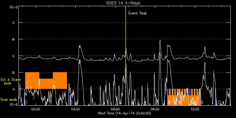 EIS Observation timeline overlay to GOES-Xray curve Code 1" 2" 40" 266" EIS Observations list for this event: STUDY ACRONYM ID DATE OBSERVED DESCRIPTION NOAA# TARGET 0 PRY_slot_contextLITE | 39657 | 2014/04/14 23:07:55 | IHOP 249 | | Active Region TIMELINE ID DATE OBSERVED FITS FILE XCEN (+W/-E) YCEN (+N/-S) DUR ----------------------------------------------------------------------------------------------------------------- 39657 | 2014/04/14 23:07:55.000 | eis_l0_20140414_230755.fits.gz | -21.12 | 914.50 | 2m57s 1 vhh_slowar_sas_1h6m | 39658 | 2014/04/14 23:12:03 | IHOP 249 | | Active Region TIMELINE ID DATE OBSERVED FITS FILE XCEN (+W/-E) YCEN (+N/-S) DUR ----------------------------------------------------------------------------------------------------------------- 39658 | 2014/04/14 23:12:03.000 | eis_l0_20140414_231203.fits.gz | -6.63 | 994.35 | 1h2m50s 39658 | 2014/04/15 00:14:56.000 | eis_l0_20140415_001456.fits.gz | -6.55 | 994.42 | 1h2m50s 39658 | 2014/04/15 01:17:49.000 | eis_l0_20140415_011749.fits.gz | -6.71 | 994.35 | 1h2m50s 2 PRY_slot_contextLITE | 39659 | 2014/04/15 02:33:18 | IHOP 249 | | Active Region TIMELINE ID DATE OBSERVED FITS FILE XCEN (+W/-E) YCEN (+N/-S) DUR ----------------------------------------------------------------------------------------------------------------- 39659 | 2014/04/15 02:33:18.000 | eis_l0_20140415_023318.fits.gz | -21.12 | 994.27 | 2m57s 3 PRY_slot_context_v3 | 39676 | 2014/04/15 09:54:57 | IHOP 252: Transition region explosive | 2036 | Active Region TIMELINE ID DATE OBSERVED FITS FILE XCEN (+W/-E) YCEN (+N/-S) DUR ----------------------------------------------------------------------------------------------------------------- 39676 | 2014/04/15 09:54:57.000 | eis_l0_20140415_095457.fits.gz | -143.91 | -198.64 | 2m56s 4 Cor_Hole_Jet_v1 | 39677 | 2014/04/15 09:58:19 | IHOP 252: Transition region explosive | | Quiet Sun TIMELINE ID DATE OBSERVED FITS FILE XCEN (+W/-E) YCEN (+N/-S) DUR ----------------------------------------------------------------------------------------------------------------- 39677 | 2014/04/15 09:58:19.000 | eis_l0_20140415_095819.fits.gz | -120.97 | -208.72 | 5m47s 39677 | 2014/04/15 10:04:08.000 | eis_l0_20140415_100408.fits.gz | -120.04 | -208.56 | 5m47s 39677 | 2014/04/15 10:09:58.000 | eis_l0_20140415_100958.fits.gz | -119.27 | -208.56 | 5m47s 39677 | 2014/04/15 10:15:48.000 | eis_l0_20140415_101548.fits.gz | -118.42 | -208.56 | 5m47s 39677 | 2014/04/15 10:21:38.000 | eis_l0_20140415_102138.fits.gz | -117.64 | -208.49 | 5m47s 39677 | 2014/04/15 10:27:27.000 | eis_l0_20140415_102727.fits.gz | -116.72 | -208.41 | 5m47s 39677 | 2014/04/15 10:33:17.000 | eis_l0_20140415_103317.fits.gz | -115.95 | -208.49 | 5m47s 39677 | 2014/04/15 10:39:07.000 | eis_l0_20140415_103907.fits.gz | -115.02 | -208.41 | 5m47s 5 PRY_slot_context_v3 | 39767 | 2014/04/15 10:45:05 | IHOP 252: Transition region explosive | 2036 | Active Region TIMELINE ID DATE OBSERVED FITS FILE XCEN (+W/-E) YCEN (+N/-S) DUR ----------------------------------------------------------------------------------------------------------------- 39767 | 2014/04/15 10:45:05.000 | eis_l0_20140415_104505.fits.gz | -136.65 | -198.41 | 2m57s 6 Cor_Hole_Jet_v1 | 39768 | 2014/04/15 10:48:27 | IHOP 252: Transition region explosive | | Quiet Sun TIMELINE ID DATE OBSERVED FITS FILE XCEN (+W/-E) YCEN (+N/-S) DUR ----------------------------------------------------------------------------------------------------------------- 39768 | 2014/04/15 10:48:27.000 | eis_l0_20140415_104827.fits.gz | -113.71 | -208.56 | 5m47s 39768 | 2014/04/15 10:54:16.000 | eis_l0_20140415_105416.fits.gz | -112.86 | -208.49 | 5m47s 39768 | 2014/04/15 11:00:06.000 | eis_l0_20140415_110006.fits.gz | -112.01 | -208.41 | 5m46s 39768 | 2014/04/15 11:05:55.000 | eis_l0_20140415_110555.fits.gz | -111.16 | -208.49 | 5m47s 39768 | 2014/04/15 11:11:45.000 | eis_l0_20140415_111145.fits.gz | -110.31 | -208.56 | 5m47s 39768 | 2014/04/15 11:17:34.000 | eis_l0_20140415_111734.fits.gz | -109.46 | -208.41 | 5m47s 39768 | 2014/04/15 11:23:24.000 | eis_l0_20140415_112324.fits.gz | -108.61 | -208.41 | 5m47s 39768 | 2014/04/15 11:29:13.000 | eis_l0_20140415_112913.fits.gz | -107.76 | -208.49 | 5m47s 7 PRY_slot_context_v3 | 39769 | 2014/04/15 11:35:11 | IHOP 252: Transition region explosive | 2036 | Active Region TIMELINE ID DATE OBSERVED FITS FILE XCEN (+W/-E) YCEN (+N/-S) DUR ----------------------------------------------------------------------------------------------------------------- 39769 | 2014/04/15 11:35:11.000 | eis_l0_20140415_113511.fits.gz | -129.38 | -198.49 | 2m57s 8 Cor_Hole_Jet_v1 | 39770 | 2014/04/15 11:38:33 | IHOP 252: Transition region explosive | | Quiet Sun TIMELINE ID DATE OBSERVED FITS FILE XCEN (+W/-E) YCEN (+N/-S) DUR ----------------------------------------------------------------------------------------------------------------- 39770 | 2014/04/15 11:38:33.000 | eis_l0_20140415_113833.fits.gz | -106.44 | -208.49 | 5m47s 39770 | 2014/04/15 11:44:23.000 | eis_l0_20140415_114423.fits.gz | -105.60 | -208.33 | 5m47s 39770 | 2014/04/15 11:50:12.000 | eis_l0_20140415_115012.fits.gz | -104.75 | -208.41 | 5m47s 39770 | 2014/04/15 11:56:02.000 | eis_l0_20140415_115602.fits.gz | -103.89 | -208.33 | 5m47s 39770 | 2014/04/15 12:01:52.000 | eis_l0_20140415_120152.fits.gz | -103.12 | -208.41 | 5m47s 39770 | 2014/04/15 12:07:41.000 | eis_l0_20140415_120741.fits.gz | -102.27 | -208.33 | 5m47s 39770 | 2014/04/15 12:13:31.000 | eis_l0_20140415_121331.fits.gz | -101.42 | -208.33 | 5m47s 39770 | 2014/04/15 12:19:21.000 | eis_l0_20140415_121921.fits.gz | -100.57 | -208.33 | 5m47s 9 PRY_slot_context_v3 | 39771 | 2014/04/15 12:25:19 | IHOP 252: Transition region explosive | 2036 | Active Region TIMELINE ID DATE OBSERVED FITS FILE XCEN (+W/-E) YCEN (+N/-S) DUR ----------------------------------------------------------------------------------------------------------------- 39771 | 2014/04/15 12:25:19.000 | eis_l0_20140415_1225