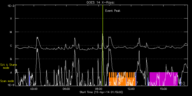 EIS Observation timeline overlay to GOES-Xray curve Code 1" 2" 40" 266" EIS Observations list for this event: STUDY ACRONYM ID DATE OBSERVED DESCRIPTION NOAA# TARGET 0 PRY_slot_contextLITE | 39659 | 2014/04/15 02:33:18 | IHOP 249 | | Active Region TIMELINE ID DATE OBSERVED FITS FILE XCEN (+W/-E) YCEN (+N/-S) DUR ----------------------------------------------------------------------------------------------------------------- 39659 | 2014/04/15 02:33:18.000 | eis_l0_20140415_023318.fits.gz | -21.12 | 994.27 | 2m57s 1 PRY_slot_context_v3 | 39676 | 2014/04/15 09:54:57 | IHOP 252: Transition region explosive | 2036 | Active Region TIMELINE ID DATE OBSERVED FITS FILE XCEN (+W/-E) YCEN (+N/-S) DUR ----------------------------------------------------------------------------------------------------------------- 39676 | 2014/04/15 09:54:57.000 | eis_l0_20140415_095457.fits.gz | -143.91 | -198.64 | 2m56s 2 Cor_Hole_Jet_v1 | 39677 | 2014/04/15 09:58:19 | IHOP 252: Transition region explosive | | Quiet Sun TIMELINE ID DATE OBSERVED FITS FILE XCEN (+W/-E) YCEN (+N/-S) DUR ----------------------------------------------------------------------------------------------------------------- 39677 | 2014/04/15 09:58:19.000 | eis_l0_20140415_095819.fits.gz | -120.97 | -208.72 | 5m47s 39677 | 2014/04/15 10:04:08.000 | eis_l0_20140415_100408.fits.gz | -120.04 | -208.56 | 5m47s 39677 | 2014/04/15 10:09:58.000 | eis_l0_20140415_100958.fits.gz | -119.27 | -208.56 | 5m47s 39677 | 2014/04/15 10:15:48.000 | eis_l0_20140415_101548.fits.gz | -118.42 | -208.56 | 5m47s 39677 | 2014/04/15 10:21:38.000 | eis_l0_20140415_102138.fits.gz | -117.64 | -208.49 | 5m47s 39677 | 2014/04/15 10:27:27.000 | eis_l0_20140415_102727.fits.gz | -116.72 | -208.41 | 5m47s 39677 | 2014/04/15 10:33:17.000 | eis_l0_20140415_103317.fits.gz | -115.95 | -208.49 | 5m47s 39677 | 2014/04/15 10:39:07.000 | eis_l0_20140415_103907.fits.gz | -115.02 | -208.41 | 5m47s 3 PRY_slot_context_v3 | 39767 | 2014/04/15 10:45:05 | IHOP 252: Transition region explosive | 2036 | Active Region TIMELINE ID DATE OBSERVED FITS FILE XCEN (+W/-E) YCEN (+N/-S) DUR ----------------------------------------------------------------------------------------------------------------- 39767 | 2014/04/15 10:45:05.000 | eis_l0_20140415_104505.fits.gz | -136.65 | -198.41 | 2m57s 4 Cor_Hole_Jet_v1 | 39768 | 2014/04/15 10:48:27 | IHOP 252: Transition region explosive | | Quiet Sun TIMELINE ID DATE OBSERVED FITS FILE XCEN (+W/-E) YCEN (+N/-S) DUR ----------------------------------------------------------------------------------------------------------------- 39768 | 2014/04/15 10:48:27.000 | eis_l0_20140415_104827.fits.gz | -113.71 | -208.56 | 5m47s 39768 | 2014/04/15 10:54:16.000 | eis_l0_20140415_105416.fits.gz | -112.86 | -208.49 | 5m47s 39768 | 2014/04/15 11:00:06.000 | eis_l0_20140415_110006.fits.gz | -112.01 | -208.41 | 5m46s 39768 | 2014/04/15 11:05:55.000 | eis_l0_20140415_110555.fits.gz | -111.16 | -208.49 | 5m47s 39768 | 2014/04/15 11:11:45.000 | eis_l0_20140415_111145.fits.gz | -110.31 | -208.56 | 5m47s 39768 | 2014/04/15 11:17:34.000 | eis_l0_20140415_111734.fits.gz | -109.46 | -208.41 | 5m47s 39768 | 2014/04/15 11:23:24.000 | eis_l0_20140415_112324.fits.gz | -108.61 | -208.41 | 5m47s 39768 | 2014/04/15 11:29:13.000 | eis_l0_20140415_112913.fits.gz | -107.76 | -208.49 | 5m47s 5 PRY_slot_context_v3 | 39769 | 2014/04/15 11:35:11 | IHOP 252: Transition region explosive | 2036 | Active Region TIMELINE ID DATE OBSERVED FITS FILE XCEN (+W/-E) YCEN (+N/-S) DUR ----------------------------------------------------------------------------------------------------------------- 39769 | 2014/04/15 11:35:11.000 | eis_l0_20140415_113511.fits.gz | -129.38 | -198.49 | 2m57s 6 Cor_Hole_Jet_v1 | 39770 | 2014/04/15 11:38:33 | IHOP 252: Transition region explosive | | Quiet Sun TIMELINE ID DATE OBSERVED FITS FILE XCEN (+W/-E) YCEN (+N/-S) DUR ----------------------------------------------------------------------------------------------------------------- 39770 | 2014/04/15 11:38:33.000 | eis_l0_20140415_113833.fits.gz | -106.44 | -208.49 | 5m47s 39770 | 2014/04/15 11:44:23.000 | eis_l0_20140415_114423.fits.gz | -105.60 | -208.33 | 5m47s 39770 | 2014/04/15 11:50:12.000 | eis_l0_20140415_115012.fits.gz | -104.75 | -208.41 | 5m47s 39770 | 2014/04/15 11:56:02.000 | eis_l0_20140415_115602.fits.gz | -103.89 | -208.33 | 5m47s 39770 | 2014/04/15 12:01:52.000 | eis_l0_20140415_120152.fits.gz | -103.12 | -208.41 | 5m47s 39770 | 2014/04/15 12:07:41.000 | eis_l0_20140415_120741.fits.gz | -102.27 | -208.33 | 5m47s 39770 | 2014/04/15 12:13:31.000 | eis_l0_20140415_121331.fits.gz | -101.42 | -208.33 | 5m47s 39770 | 2014/04/15 12:19:21.000 | eis_l0_20140415_121921.fits.gz | -100.57 | -208.33 | 5m47s 7 PRY_slot_context_v3 | 39771 | 2014/04/15 12:25:19 | IHOP 252: Transition region explosive | 2036 | Active Region TIMELINE ID DATE OBSERVED FITS FILE XCEN (+W/-E) YCEN (+N/-S) DUR ----------------------------------------------------------------------------------------------------------------- 39771 | 2014/04/15 12:25:19.000 | eis_l0_20140415_122519.fits.gz | -122.12 | -198.41 | 2m56s 8 PRY_slot_context_v3 | 39667 | 2014/04/15 13:32:13 | AR 12036 obs. | 2036 | Active Region TIMELINE ID DATE OBSERVED FITS FILE XCEN (+W/-E) YCEN (+N/-S) DUR ----------------------------------------------------------------------------------------------------------------- 39667 | 2014/04/15 13:32:13.000 | eis_l0_20140415_133213.fits.gz | -112.39 | -198.41 | 2m56s 9 HPW015_DETAILED_MAP | 39764 | 2014/04/15 13:43:56 | AR 12036 obs. | | Active Region TIMELINE ID DATE OBSERVED FITS FILE XCEN (+W/-E) YCEN (+N/-S) DUR ----------------------------------------------------------------------------------------------------------------- 39764 | 2014/04/15 13:43:56.000 | eis_l0_20140415_134356.fits.gz | -95.29 | -198.25 | 2h35m35s 10 PRY_slot_context_v3 | 39668 | 2014/04/15 16:33:20 | AR 12036 obs. | 2036 | Active Region TIMELINE ID DATE OBSERVED FITS FIL