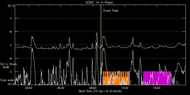 EIS Observation timeline overlay to GOES-Xray curve Code 1" 2" 40" 266" EIS Observations list for this event: STUDY ACRONYM ID DATE OBSERVED DESCRIPTION NOAA# TARGET 0 PRY_slot_contextLITE | 39659 | 2014/04/15 02:33:18 | IHOP 249 | | Active Region TIMELINE ID DATE OBSERVED FITS FILE XCEN (+W/-E) YCEN (+N/-S) DUR ----------------------------------------------------------------------------------------------------------------- 39659 | 2014/04/15 02:33:18.000 | eis_l0_20140415_023318.fits.gz | -21.12 | 994.27 | 2m57s 1 PRY_slot_context_v3 | 39676 | 2014/04/15 09:54:57 | IHOP 252: Transition region explosive | 2036 | Active Region TIMELINE ID DATE OBSERVED FITS FILE XCEN (+W/-E) YCEN (+N/-S) DUR ----------------------------------------------------------------------------------------------------------------- 39676 | 2014/04/15 09:54:57.000 | eis_l0_20140415_095457.fits.gz | -143.91 | -198.64 | 2m56s 2 Cor_Hole_Jet_v1 | 39677 | 2014/04/15 09:58:19 | IHOP 252: Transition region explosive | | Quiet Sun TIMELINE ID DATE OBSERVED FITS FILE XCEN (+W/-E) YCEN (+N/-S) DUR ----------------------------------------------------------------------------------------------------------------- 39677 | 2014/04/15 09:58:19.000 | eis_l0_20140415_095819.fits.gz | -120.97 | -208.72 | 5m47s 39677 | 2014/04/15 10:04:08.000 | eis_l0_20140415_100408.fits.gz | -120.04 | -208.56 | 5m47s 39677 | 2014/04/15 10:09:58.000 | eis_l0_20140415_100958.fits.gz | -119.27 | -208.56 | 5m47s 39677 | 2014/04/15 10:15:48.000 | eis_l0_20140415_101548.fits.gz | -118.42 | -208.56 | 5m47s 39677 | 2014/04/15 10:21:38.000 | eis_l0_20140415_102138.fits.gz | -117.64 | -208.49 | 5m47s 39677 | 2014/04/15 10:27:27.000 | eis_l0_20140415_102727.fits.gz | -116.72 | -208.41 | 5m47s 39677 | 2014/04/15 10:33:17.000 | eis_l0_20140415_103317.fits.gz | -115.95 | -208.49 | 5m47s 39677 | 2014/04/15 10:39:07.000 | eis_l0_20140415_103907.fits.gz | -115.02 | -208.41 | 5m47s 3 PRY_slot_context_v3 | 39767 | 2014/04/15 10:45:05 | IHOP 252: Transition region explosive | 2036 | Active Region TIMELINE ID DATE OBSERVED FITS FILE XCEN (+W/-E) YCEN (+N/-S) DUR ----------------------------------------------------------------------------------------------------------------- 39767 | 2014/04/15 10:45:05.000 | eis_l0_20140415_104505.fits.gz | -136.65 | -198.41 | 2m57s 4 Cor_Hole_Jet_v1 | 39768 | 2014/04/15 10:48:27 | IHOP 252: Transition region explosive | | Quiet Sun TIMELINE ID DATE OBSERVED FITS FILE XCEN (+W/-E) YCEN (+N/-S) DUR ----------------------------------------------------------------------------------------------------------------- 39768 | 2014/04/15 10:48:27.000 | eis_l0_20140415_104827.fits.gz | -113.71 | -208.56 | 5m47s 39768 | 2014/04/15 10:54:16.000 | eis_l0_20140415_105416.fits.gz | -112.86 | -208.49 | 5m47s 39768 | 2014/04/15 11:00:06.000 | eis_l0_20140415_110006.fits.gz | -112.01 | -208.41 | 5m46s 39768 | 2014/04/15 11:05:55.000 | eis_l0_20140415_110555.fits.gz | -111.16 | -208.49 | 5m47s 39768 | 2014/04/15 11:11:45.000 | eis_l0_20140415_111145.fits.gz | -110.31 | -208.56 | 5m47s 39768 | 2014/04/15 11:17:34.000 | eis_l0_20140415_111734.fits.gz | -109.46 | -208.41 | 5m47s 39768 | 2014/04/15 11:23:24.000 | eis_l0_20140415_112324.fits.gz | -108.61 | -208.41 | 5m47s 39768 | 2014/04/15 11:29:13.000 | eis_l0_20140415_112913.fits.gz | -107.76 | -208.49 | 5m47s 5 PRY_slot_context_v3 | 39769 | 2014/04/15 11:35:11 | IHOP 252: Transition region explosive | 2036 | Active Region TIMELINE ID DATE OBSERVED FITS FILE XCEN (+W/-E) YCEN (+N/-S) DUR ----------------------------------------------------------------------------------------------------------------- 39769 | 2014/04/15 11:35:11.000 | eis_l0_20140415_113511.fits.gz | -129.38 | -198.49 | 2m57s 6 Cor_Hole_Jet_v1 | 39770 | 2014/04/15 11:38:33 | IHOP 252: Transition region explosive | | Quiet Sun TIMELINE ID DATE OBSERVED FITS FILE XCEN (+W/-E) YCEN (+N/-S) DUR ----------------------------------------------------------------------------------------------------------------- 39770 | 2014/04/15 11:38:33.000 | eis_l0_20140415_113833.fits.gz | -106.44 | -208.49 | 5m47s 39770 | 2014/04/15 11:44:23.000 | eis_l0_20140415_114423.fits.gz | -105.60 | -208.33 | 5m47s 39770 | 2014/04/15 11:50:12.000 | eis_l0_20140415_115012.fits.gz | -104.75 | -208.41 | 5m47s 39770 | 2014/04/15 11:56:02.000 | eis_l0_20140415_115602.fits.gz | -103.89 | -208.33 | 5m47s 39770 | 2014/04/15 12:01:52.000 | eis_l0_20140415_120152.fits.gz | -103.12 | -208.41 | 5m47s 39770 | 2014/04/15 12:07:41.000 | eis_l0_20140415_120741.fits.gz | -102.27 | -208.33 | 5m47s 39770 | 2014/04/15 12:13:31.000 | eis_l0_20140415_121331.fits.gz | -101.42 | -208.33 | 5m47s 39770 | 2014/04/15 12:19:21.000 | eis_l0_20140415_121921.fits.gz | -100.57 | -208.33 | 5m47s 7 PRY_slot_context_v3 | 39771 | 2014/04/15 12:25:19 | IHOP 252: Transition region explosive | 2036 | Active Region TIMELINE ID DATE OBSERVED FITS FILE XCEN (+W/-E) YCEN (+N/-S) DUR ----------------------------------------------------------------------------------------------------------------- 39771 | 2014/04/15 12:25:19.000 | eis_l0_20140415_122519.fits.gz | -122.12 | -198.41 | 2m56s 8 PRY_slot_context_v3 | 39667 | 2014/04/15 13:32:13 | AR 12036 obs. | 2036 | Active Region TIMELINE ID DATE OBSERVED FITS FILE XCEN (+W/-E) YCEN (+N/-S) DUR ----------------------------------------------------------------------------------------------------------------- 39667 | 2014/04/15 13:32:13.000 | eis_l0_20140415_133213.fits.gz | -112.39 | -198.41 | 2m56s 9 HPW015_DETAILED_MAP | 39764 | 2014/04/15 13:43:56 | AR 12036 obs. | | Active Region TIMELINE ID DATE OBSERVED FITS FILE XCEN (+W/-E) YCEN (+N/-S) DUR ----------------------------------------------------------------------------------------------------------------- 39764 | 2014/04/15 13:43:56.000 | eis_l0_20140415_134356.fits.gz | -95.29 | -198.25 | 2h35m35s 10 PRY_slot_context_v3 | 39668 | 2014/04/15 16:33:20 | AR 12036 obs. | 2036 | Active Region TIMELINE ID DATE OBSERVED FITS FIL