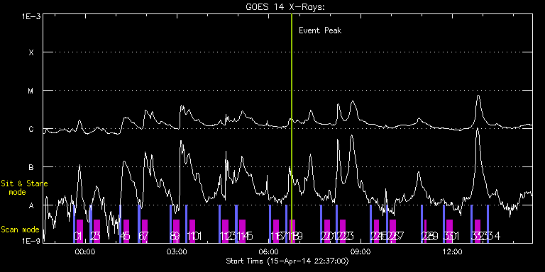 EIS Observation timeline overlay to GOES-Xray curve Code 1" 2" 40" 266" EIS Observations list for this event: STUDY ACRONYM ID DATE OBSERVED DESCRIPTION NOAA# TARGET 0 PRY_slot_contextLITE | 39702 | 2014/04/15 23:36:17 | HOP 79: solar irradiance scan (N-S) | | Active Region TIMELINE ID DATE OBSERVED FITS FILE XCEN (+W/-E) YCEN (+N/-S) DUR ----------------------------------------------------------------------------------------------------------------- 39702 | 2014/04/15 23:36:17.000 | eis_l0_20140415_233617.fits.gz | -15.45 | -645.37 | 2m56s 1 SK_DEEP_5x512_SLIT1 | 39703 | 2014/04/15 23:44:20 | HOP 79: solar irradiance scan (N-S) | | Quiet Sun TIMELINE ID DATE OBSERVED FITS FILE XCEN (+W/-E) YCEN (+N/-S) DUR ----------------------------------------------------------------------------------------------------------------- 39703 | 2014/04/15 23:44:20.000 | eis_l0_20140415_234420.fits.gz | -0.15 | -645.29 | 10m8s 2 PRY_slot_contextLITE | 39704 | 2014/04/16 00:09:27 | HOP 79: solar irradiance scan (N-S) | | Active Region TIMELINE ID DATE OBSERVED FITS FILE XCEN (+W/-E) YCEN (+N/-S) DUR ----------------------------------------------------------------------------------------------------------------- 39704 | 2014/04/16 00:09:27.000 | eis_l0_20140416_000927.fits.gz | -15.38 | -545.41 | 2m56s 3 SK_DEEP_5x512_SLIT1 | 39705 | 2014/04/16 00:17:30 | HOP 79: solar irradiance scan (N-S) | | Quiet Sun TIMELINE ID DATE OBSERVED FITS FILE XCEN (+W/-E) YCEN (+N/-S) DUR ----------------------------------------------------------------------------------------------------------------- 39705 | 2014/04/16 00:17:30.000 | eis_l0_20140416_001730.fits.gz | -0.15 | -545.26 | 10m7s 4 PRY_slot_contextLITE | 39706 | 2014/04/16 01:07:31 | HOP 79: solar irradiance scan (N-S) | 2036 | Active Region TIMELINE ID DATE OBSERVED FITS FILE XCEN (+W/-E) YCEN (+N/-S) DUR ----------------------------------------------------------------------------------------------------------------- 39706 | 2014/04/16 01:07:31.000 | eis_l0_20140416_010731.fits.gz | -15.38 | -445.53 | 2m56s 5 SK_DEEP_5x512_SLIT1 | 39707 | 2014/04/16 01:15:34 | HOP 79: solar irradiance scan (N-S) | | Quiet Sun TIMELINE ID DATE OBSERVED FITS FILE XCEN (+W/-E) YCEN (+N/-S) DUR ----------------------------------------------------------------------------------------------------------------- 39707 | 2014/04/16 01:15:34.000 | eis_l0_20140416_011534.fits.gz | -0.15 | -445.61 | 10m7s 6 PRY_slot_contextLITE | 39708 | 2014/04/16 01:44:00 | HOP 79: solar irradiance scan (N-S) | 2036 | Active Region TIMELINE ID DATE OBSERVED FITS FILE XCEN (+W/-E) YCEN (+N/-S) DUR ----------------------------------------------------------------------------------------------------------------- 39708 | 2014/04/16 01:44:00.000 | eis_l0_20140416_014400.fits.gz | -15.38 | -345.34 | 2m56s 7 SK_DEEP_5x512_SLIT1 | 39709 | 2014/04/16 01:52:03 | HOP 79: solar irradiance scan (N-S) | | Quiet Sun TIMELINE ID DATE OBSERVED FITS FILE XCEN (+W/-E) YCEN (+N/-S) DUR ----------------------------------------------------------------------------------------------------------------- 39709 | 2014/04/16 01:52:03.000 | eis_l0_20140416_015203.fits.gz | -0.15 | -345.49 | 10m7s 8 PRY_slot_contextLITE | 39710 | 2014/04/16 02:45:22 | HOP 79: solar irradiance scan (N-S) | 2036 | Active Region TIMELINE ID DATE OBSERVED FITS FILE XCEN (+W/-E) YCEN (+N/-S) DUR ----------------------------------------------------------------------------------------------------------------- 39710 | 2014/04/16 02:45:22.000 | eis_l0_20140416_024522.fits.gz | -15.38 | -245.46 | 2m56s 9 SK_DEEP_5x512_SLIT1 | 39711 | 2014/04/16 02:53:25 | HOP 79: solar irradiance scan (N-S) | | Quiet Sun TIMELINE ID DATE OBSERVED FITS FILE XCEN (+W/-E) YCEN (+N/-S) DUR ----------------------------------------------------------------------------------------------------------------- 39711 | 2014/04/16 02:53:25.000 | eis_l0_20140416_025325.fits.gz | -15.13 | -245.46 | 10m8s 10 PRY_slot_contextLITE | 39712 | 2014/04/16 03:16:53 | HOP 79: solar irradiance scan (N-S) | 2036 | Active Region TIMELINE ID DATE OBSERVED FITS FILE XCEN (+W/-E) YCEN (+N/-S) DUR ----------------------------------------------------------------------------------------------------------------- 39712 | 2014/04/16 03:16:53.000 | eis_l0_20140416_031653.fits.gz | -15.45 | -145.35 | 2m55s 11 SK_DEEP_5x512_SLIT1 | 39713 | 2014/04/16 03:24:56 | HOP 79: solar irradiance scan (N-S) | | Quiet Sun TIMELINE ID DATE OBSERVED FITS FILE XCEN (+W/-E) YCEN (+N/-S) DUR ----------------------------------------------------------------------------------------------------------------- 39713 | 2014/04/16 03:24:56.000 | eis_l0_20140416_032456.fits.gz | -0.15 | -145.42 | 10m8s 12 PRY_slot_contextLITE | 39714 | 2014/04/16 04:21:34 | HOP 79: solar irradiance scan (N-S) | 2034 | Active Region TIMELINE ID DATE OBSERVED FITS FILE XCEN (+W/-E) YCEN (+N/-S) DUR ----------------------------------------------------------------------------------------------------------------- 39714 | 2014/04/16 04:21:34.000 | eis_l0_20140416_042134.fits.gz | -15.05 | -45.62 | 2m57s 13 SK_DEEP_5x512_SLIT1 | 39715 | 2014/04/16 04:29:37 | HOP 79: solar irradiance scan (N-S) | | Quiet Sun TIMELINE ID DATE OBSERVED FITS FILE XCEN (+W/-E) YCEN (+N/-S) DUR ----------------------------------------------------------------------------------------------------------------- 39715 | 2014/04/16 04:29:37.000 | eis_l0_20140416_042937.fits.gz | -0.15 | -45.62 | 10m7s 14 PRY_slot_contextLITE | 39716 | 2014/04/16 04:54:44 | HOP 79: solar irradiance scan (N-S) | 2034 | Active Region TIMELINE ID DATE OBSERVED FITS FILE XCEN (+W/-E) YCEN (+N/-S) DUR ----------------------------------------------------------------------------------------------------------------- 39716 | 2014/04/16 04:54:44.000 | eis_l0_20140416_045444.fits.gz | -15.38 | 44.30 | 2m56s 15 SK_DEEP_5x512_SLIT1 | 39717 | 2014/04/16 05:02:47 | HOP 79: solar irradiance scan (N-S) | | Quiet Sun TIMELINE ID DATE OBSERVE