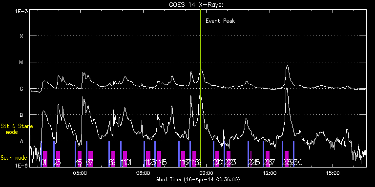 EIS Observation timeline overlay to GOES-Xray curve Code 1" 2" 40" 266" EIS Observations list for this event: STUDY ACRONYM ID DATE OBSERVED DESCRIPTION NOAA# TARGET 0 PRY_slot_contextLITE | 39706 | 2014/04/16 01:07:31 | HOP 79: solar irradiance scan (N-S) | 2036 | Active Region TIMELINE ID DATE OBSERVED FITS FILE XCEN (+W/-E) YCEN (+N/-S) DUR ----------------------------------------------------------------------------------------------------------------- 39706 | 2014/04/16 01:07:31.000 | eis_l0_20140416_010731.fits.gz | -15.38 | -445.53 | 2m56s 1 SK_DEEP_5x512_SLIT1 | 39707 | 2014/04/16 01:15:34 | HOP 79: solar irradiance scan (N-S) | | Quiet Sun TIMELINE ID DATE OBSERVED FITS FILE XCEN (+W/-E) YCEN (+N/-S) DUR ----------------------------------------------------------------------------------------------------------------- 39707 | 2014/04/16 01:15:34.000 | eis_l0_20140416_011534.fits.gz | -0.15 | -445.61 | 10m7s 2 PRY_slot_contextLITE | 39708 | 2014/04/16 01:44:00 | HOP 79: solar irradiance scan (N-S) | 2036 | Active Region TIMELINE ID DATE OBSERVED FITS FILE XCEN (+W/-E) YCEN (+N/-S) DUR ----------------------------------------------------------------------------------------------------------------- 39708 | 2014/04/16 01:44:00.000 | eis_l0_20140416_014400.fits.gz | -15.38 | -345.34 | 2m56s 3 SK_DEEP_5x512_SLIT1 | 39709 | 2014/04/16 01:52:03 | HOP 79: solar irradiance scan (N-S) | | Quiet Sun TIMELINE ID DATE OBSERVED FITS FILE XCEN (+W/-E) YCEN (+N/-S) DUR ----------------------------------------------------------------------------------------------------------------- 39709 | 2014/04/16 01:52:03.000 | eis_l0_20140416_015203.fits.gz | -0.15 | -345.49 | 10m7s 4 PRY_slot_contextLITE | 39710 | 2014/04/16 02:45:22 | HOP 79: solar irradiance scan (N-S) | 2036 | Active Region TIMELINE ID DATE OBSERVED FITS FILE XCEN (+W/-E) YCEN (+N/-S) DUR ----------------------------------------------------------------------------------------------------------------- 39710 | 2014/04/16 02:45:22.000 | eis_l0_20140416_024522.fits.gz | -15.38 | -245.46 | 2m56s 5 SK_DEEP_5x512_SLIT1 | 39711 | 2014/04/16 02:53:25 | HOP 79: solar irradiance scan (N-S) | | Quiet Sun TIMELINE ID DATE OBSERVED FITS FILE XCEN (+W/-E) YCEN (+N/-S) DUR ----------------------------------------------------------------------------------------------------------------- 39711 | 2014/04/16 02:53:25.000 | eis_l0_20140416_025325.fits.gz | -15.13 | -245.46 | 10m8s 6 PRY_slot_contextLITE | 39712 | 2014/04/16 03:16:53 | HOP 79: solar irradiance scan (N-S) | 2036 | Active Region TIMELINE ID DATE OBSERVED FITS FILE XCEN (+W/-E) YCEN (+N/-S) DUR ----------------------------------------------------------------------------------------------------------------- 39712 | 2014/04/16 03:16:53.000 | eis_l0_20140416_031653.fits.gz | -15.45 | -145.35 | 2m55s 7 SK_DEEP_5x512_SLIT1 | 39713 | 2014/04/16 03:24:56 | HOP 79: solar irradiance scan (N-S) | | Quiet Sun TIMELINE ID DATE OBSERVED FITS FILE XCEN (+W/-E) YCEN (+N/-S) DUR ----------------------------------------------------------------------------------------------------------------- 39713 | 2014/04/16 03:24:56.000 | eis_l0_20140416_032456.fits.gz | -0.15 | -145.42 | 10m8s 8 PRY_slot_contextLITE | 39714 | 2014/04/16 04:21:34 | HOP 79: solar irradiance scan (N-S) | 2034 | Active Region TIMELINE ID DATE OBSERVED FITS FILE XCEN (+W/-E) YCEN (+N/-S) DUR ----------------------------------------------------------------------------------------------------------------- 39714 | 2014/04/16 04:21:34.000 | eis_l0_20140416_042134.fits.gz | -15.05 | -45.62 | 2m57s 9 SK_DEEP_5x512_SLIT1 | 39715 | 2014/04/16 04:29:37 | HOP 79: solar irradiance scan (N-S) | | Quiet Sun TIMELINE ID DATE OBSERVED FITS FILE XCEN (+W/-E) YCEN (+N/-S) DUR ----------------------------------------------------------------------------------------------------------------- 39715 | 2014/04/16 04:29:37.000 | eis_l0_20140416_042937.fits.gz | -0.15 | -45.62 | 10m7s 10 PRY_slot_contextLITE | 39716 | 2014/04/16 04:54:44 | HOP 79: solar irradiance scan (N-S) | 2034 | Active Region TIMELINE ID DATE OBSERVED FITS FILE XCEN (+W/-E) YCEN (+N/-S) DUR ----------------------------------------------------------------------------------------------------------------- 39716 | 2014/04/16 04:54:44.000 | eis_l0_20140416_045444.fits.gz | -15.38 | 44.30 | 2m56s 11 SK_DEEP_5x512_SLIT1 | 39717 | 2014/04/16 05:02:47 | HOP 79: solar irradiance scan (N-S) | | Quiet Sun TIMELINE ID DATE OBSERVED FITS FILE XCEN (+W/-E) YCEN (+N/-S) DUR ----------------------------------------------------------------------------------------------------------------- 39717 | 2014/04/16 05:02:47.000 | eis_l0_20140416_050247.fits.gz | -0.23 | 44.37 | 10m8s 12 PRY_slot_contextLITE | 39718 | 2014/04/16 06:01:05 | HOP 79: solar irradiance scan (N-S) | 2034 | Active Region TIMELINE ID DATE OBSERVED FITS FILE XCEN (+W/-E) YCEN (+N/-S) DUR ----------------------------------------------------------------------------------------------------------------- 39718 | 2014/04/16 06:01:05.000 | eis_l0_20140416_060105.fits.gz | -15.38 | 144.41 | 2m56s 13 SK_DEEP_5x512_SLIT1 | 39719 | 2014/04/16 06:09:08 | HOP 79: solar irradiance scan (N-S) | | Quiet Sun TIMELINE ID DATE OBSERVED FITS FILE XCEN (+W/-E) YCEN (+N/-S) DUR ----------------------------------------------------------------------------------------------------------------- 39719 | 2014/04/16 06:09:08.000 | eis_l0_20140416_060908.fits.gz | -0.15 | 144.49 | 10m8s 14 PRY_slot_contextLITE | 39720 | 2014/04/16 06:32:36 | HOP 79: solar irradiance scan (N-S) | 2034 | Active Region TIMELINE ID DATE OBSERVED FITS FILE XCEN (+W/-E) YCEN (+N/-S) DUR ----------------------------------------------------------------------------------------------------------------- 39720 | 2014/04/16 06:32:36.000 | eis_l0_20140416_063236.fits.gz | -15.45 | 244.68 | 2m56s 15 SK_DEEP_5x512_SLIT1 | 39721 | 2014/04/16 06:40:39 | HOP 79: solar irradiance scan (N-S) | | Quiet Sun TIMELINE ID DATE OB