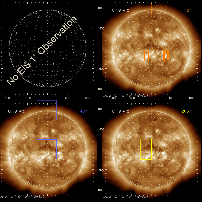 EIS Observation timeline overlay to GOES-Xray curve Code 1" 2" 40" 266" EIS Observations list for this event: STUDY ACRONYM ID DATE OBSERVED DESCRIPTION NOAA# TARGET 0 PRY_footpoints_lite | 39806 | 2014/04/17 09:46:34 | Active region plage | 2035 | Active Region TIMELINE ID DATE OBSERVED FITS FILE XCEN (+W/-E) YCEN (+N/-S) DUR ----------------------------------------------------------------------------------------------------------------- 39806 | 2014/04/17 09:46:34.000 | eis_l0_20140417_094634.fits.gz | -136.04 | -196.24 | 26m22s 39806 | 2014/04/17 10:12:59.000 | eis_l0_20140417_101259.fits.gz | -132.10 | -196.09 | 26m22s 39806 | 2014/04/17 10:39:24.000 | eis_l0_20140417_103924.fits.gz | -128.32 | -196.24 | 26m23s 39806 | 2014/04/17 11:05:50.000 | eis_l0_20140417_110550.fits.gz | -124.46 | -196.17 | 26m22s 1 PRY_slot_contextLITE | 39779 | 2014/04/17 12:05:20 | IHOP 249: spicules at north pole | | Active Region TIMELINE ID DATE OBSERVED FITS FILE XCEN (+W/-E) YCEN (+N/-S) DUR ----------------------------------------------------------------------------------------------------------------- 39779 | 2014/04/17 12:05:20.000 | eis_l0_20140417_120520.fits.gz | -20.20 | 969.60 | 2m57s 2 vhh_slowar_sas_1h6m | 39780 | 2014/04/17 12:09:34 | IHOP 249: spicules at north pole | | Active Region TIMELINE ID DATE OBSERVED FITS FILE XCEN (+W/-E) YCEN (+N/-S) DUR ----------------------------------------------------------------------------------------------------------------- 39780 | 2014/04/17 12:09:34.000 | eis_l0_20140417_120934.fits.gz | -5.63 | 969.60 | 1h2m49s 39780 | 2014/04/17 13:12:26.000 | eis_l0_20140417_131226.fits.gz | -5.63 | 969.67 | 1h2m50s 3 PRY_slot_contextLITE | 39781 | 2014/04/17 14:24:20 | IHOP 249: spicules at north pole | | Active Region TIMELINE ID DATE OBSERVED FITS FILE XCEN (+W/-E) YCEN (+N/-S) DUR ----------------------------------------------------------------------------------------------------------------- 39781 | 2014/04/17 14:24:20.000 | eis_l0_20140417_142420.fits.gz | -20.20 | 969.67 | 2m56s 4 PRY_footpoints_lite | 39807 | 2014/04/17 15:07:04 | Active region plage | | Active Region TIMELINE ID DATE OBSERVED FITS FILE XCEN (+W/-E) YCEN (+N/-S) DUR ----------------------------------------------------------------------------------------------------------------- 39807 | 2014/04/17 15:07:04.000 | eis_l0_20140417_150704.fits.gz | 348.76 | -170.19 | 26m22s 39807 | 2014/04/17 15:33:29.000 | eis_l0_20140417_153329.fits.gz | 352.24 | -170.42 | 26m22s 5 PRY_footpoints_lite | 39808 | 2014/04/17 16:58:13 | Active region plage | | Active Region TIMELINE ID DATE OBSERVED FITS FILE XCEN (+W/-E) YCEN (+N/-S) DUR ----------------------------------------------------------------------------------------------------------------- 39808 | 2014/04/17 16:58:13.000 | eis_l0_20140417_165813.fits.gz | 363.52 | -169.88 | 26m23s 39808 | 2014/04/17 17:24:39.000 | eis_l0_20140417_172439.fits.gz | 367.07 | -170.12 | 26m23s 6 PRY_slot_contextLITE | 39782 | 2014/04/17 18:28:21 | XRT synoptic | 2034 | Active Region TIMELINE ID DATE OBSERVED FITS FILE XCEN (+W/-E) YCEN (+N/-S) DUR ----------------------------------------------------------------------------------------------------------------- 39782 | 2014/04/17 18:28:21.000 | eis_l0_20140417_182821.fits.gz | -15.21 | -0.35 | 2m56s 7 Alignment_266 | 39783 | 2014/04/17 18:32:07 | XRT synoptic | 2035 | Quiet Sun TIMELINE ID DATE OBSERVED FITS FILE XCEN (+W/-E) YCEN (+N/-S) DUR ----------------------------------------------------------------------------------------------------------------- 39783 | 2014/04/17 18:32:07.000 | eis_l0_20140417_183207.fits.gz | -132.57 | -0.35 | 1m22s 8 XRT_synop_AIA | 39788 | 2014/04/17 18:34:33 | XRT synoptic | 2035 | Quiet Sun TIMELINE ID DATE OBSERVED FITS FILE XCEN (+W/-E) YCEN (+N/-S) DUR ----------------------------------------------------------------------------------------------------------------- 39788 | 2014/04/17 18:34:33.000 | eis_l0_20140417_183433.fits.gz | -132.57 | -0.35 | 10s 9 PRY_footpoints_lite | 39809 | 2014/04/17 18:45:20 | Active region plage | | Active Region TIMELINE ID DATE OBSERVED FITS FILE XCEN (+W/-E) YCEN (+N/-S) DUR ----------------------------------------------------------------------------------------------------------------- 39809 | 2014/04/17 18:45:20.000 | eis_l0_20140417_184520.fits.gz | 377.73 | -220.50 | 26m22s : Check study information : Download file : View thumbnails For this event, also check for: