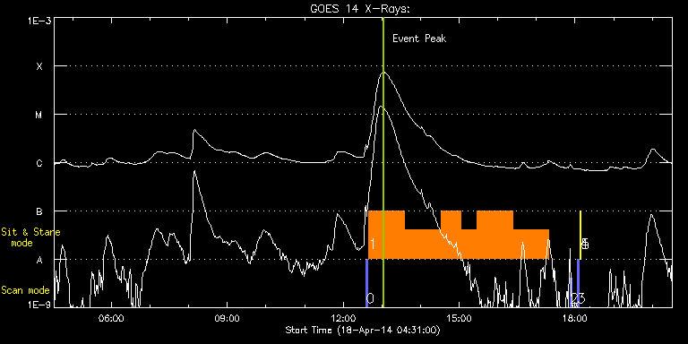 EIS Observation timeline overlay to GOES-Xray curve Code 1" 2" 40" 266" EIS Observations list for this event: STUDY ACRONYM ID DATE OBSERVED DESCRIPTION NOAA# TARGET 0 PRY_slot_context_v3 | 39792 | 2014/04/18 12:35:13 | IHOP 241: Flare watch | 2036 | Active Region TIMELINE ID DATE OBSERVED FITS FILE XCEN (+W/-E) YCEN (+N/-S) DUR ----------------------------------------------------------------------------------------------------------------- 39792 | 2014/04/18 12:35:13.000 | eis_l0_20140418_123513.fits.gz | 497.56 | -228.46 | 2m56s 1 FLAREDOP_EIS | 39793 | 2014/04/18 12:39:33 | IHOP 241: Flare watch | | Flare TIMELINE ID DATE OBSERVED FITS FILE XCEN (+W/-E) YCEN (+N/-S) DUR ----------------------------------------------------------------------------------------------------------------- 39793 | 2014/04/18 12:39:33.000 | eis_l0_20140418_123933.fits.gz | 498.93 | -179.54 | 55m52s 39793 | 2014/04/18 13:35:27.000 | eis_l0_20140418_133527.fits.gz | 505.58 | -180.00 | 55m51s 39793 | 2014/04/18 14:31:21.000 | eis_l0_20140418_143121.fits.gz | 512.14 | -180.38 | 31m16s 39793 | 2014/04/18 14:44:11.000 | eis_l0_20140418_144411.fits.gz | 513.69 | -180.69 | 43m2s 39793 | 2014/04/18 15:27:15.000 | eis_l0_20140418_152715.fits.gz | 518.71 | -180.85 | 55m53s 39793 | 2014/04/18 16:23:10.000 | eis_l0_20140418_162310.fits.gz | 525.28 | -181.47 | 55m52s 2 PRY_slot_context_v3 | 39794 | 2014/04/18 17:52:19 | IHOP 241: Flare watch | 2036 | Active Region TIMELINE ID DATE OBSERVED FITS FILE XCEN (+W/-E) YCEN (+N/-S) DUR ----------------------------------------------------------------------------------------------------------------- 39794 | 2014/04/18 17:52:19.000 | eis_l0_20140418_175219.fits.gz | 534.79 | -231.32 | 2m57s 3 PRY_slot_contextLITE | 39795 | 2014/04/18 18:03:14 | XRT synoptic | 2035 | Active Region TIMELINE ID DATE OBSERVED FITS FILE XCEN (+W/-E) YCEN (+N/-S) DUR ----------------------------------------------------------------------------------------------------------------- 39795 | 2014/04/18 18:03:14.000 | eis_l0_20140418_180314.fits.gz | -15.29 | -0.35 | 2m57s 4 Alignment_266 | 39796 | 2014/04/18 18:07:06 | XRT synoptic | | Quiet Sun TIMELINE ID DATE OBSERVED FITS FILE XCEN (+W/-E) YCEN (+N/-S) DUR ----------------------------------------------------------------------------------------------------------------- 39796 | 2014/04/18 18:07:06.000 | eis_l0_20140418_180706.fits.gz | -132.57 | -0.27 | 1m22s 5 XRT_synop_AIA | 39797 | 2014/04/18 18:09:33 | XRT synoptic | | Quiet Sun TIMELINE ID DATE OBSERVED FITS FILE XCEN (+W/-E) YCEN (+N/-S) DUR ----------------------------------------------------------------------------------------------------------------- 39797 | 2014/04/18 18:09:33.000 | eis_l0_20140418_180933.fits.gz | -132.57 | -0.42 | 10s : Check study information : Download file : View thumbnails For this event, also check for: