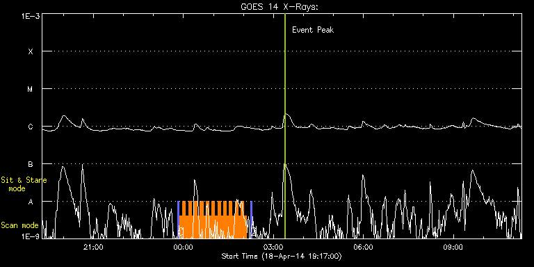 EIS Observation timeline overlay to GOES-Xray curve Code 1" 2" 40" 266" EIS Observations list for this event: STUDY ACRONYM ID DATE OBSERVED DESCRIPTION NOAA# TARGET 0 PRY_slot_context_v3 | 39798 | 2014/04/18 23:48:26 | IHOP 252: Filament | | Active Region TIMELINE ID DATE OBSERVED FITS FILE XCEN (+W/-E) YCEN (+N/-S) DUR ----------------------------------------------------------------------------------------------------------------- 39798 | 2014/04/18 23:48:26.000 | eis_l0_20140418_234826.fits.gz | 475.81 | -700.84 | 2m56s 1 Cor_Hole_Jet_v1 | 39799 | 2014/04/18 23:52:33 | IHOP 252: Filament | | Quiet Sun TIMELINE ID DATE OBSERVED FITS FILE XCEN (+W/-E) YCEN (+N/-S) DUR ----------------------------------------------------------------------------------------------------------------- 39799 | 2014/04/18 23:52:33.000 | eis_l0_20140418_235233.fits.gz | 489.38 | -700.91 | 5m47s 39799 | 2014/04/18 23:58:22.000 | eis_l0_20140418_235822.fits.gz | 489.69 | -701.07 | 5m48s 39799 | 2014/04/19 00:04:12.000 | eis_l0_20140419_000412.fits.gz | 489.92 | -700.99 | 5m47s 39799 | 2014/04/19 00:10:02.000 | eis_l0_20140419_001002.fits.gz | 490.23 | -701.07 | 5m47s 39799 | 2014/04/19 00:15:51.000 | eis_l0_20140419_001551.fits.gz | 490.38 | -701.15 | 5m47s 39799 | 2014/04/19 00:21:41.000 | eis_l0_20140419_002141.fits.gz | 490.69 | -701.15 | 5m47s 39799 | 2014/04/19 00:27:31.000 | eis_l0_20140419_002731.fits.gz | 490.85 | -701.22 | 5m46s 39799 | 2014/04/19 00:33:20.000 | eis_l0_20140419_003320.fits.gz | 491.08 | -701.07 | 5m47s 39799 | 2014/04/19 00:39:10.000 | eis_l0_20140419_003910.fits.gz | 491.31 | -701.38 | 5m47s 39799 | 2014/04/19 00:44:59.000 | eis_l0_20140419_004459.fits.gz | 491.54 | -701.30 | 5m48s 39799 | 2014/04/19 00:51:21.000 | eis_l0_20140419_005121.fits.gz | 491.85 | -701.46 | 5m15s 39799 | 2014/04/19 00:56:39.000 | eis_l0_20140419_005639.fits.gz | 492.08 | -701.38 | 5m47s 39799 | 2014/04/19 01:02:29.000 | eis_l0_20140419_010229.fits.gz | 492.24 | -701.22 | 5m46s 39799 | 2014/04/19 01:08:18.000 | eis_l0_20140419_010818.fits.gz | 492.47 | -701.46 | 5m47s 39799 | 2014/04/19 01:14:08.000 | eis_l0_20140419_011408.fits.gz | 492.70 | -701.38 | 5m46s 39799 | 2014/04/19 01:19:57.000 | eis_l0_20140419_011957.fits.gz | 492.93 | -701.38 | 5m47s 39799 | 2014/04/19 01:25:47.000 | eis_l0_20140419_012547.fits.gz | 493.16 | -701.46 | 5m46s 39799 | 2014/04/19 01:31:36.000 | eis_l0_20140419_013136.fits.gz | 493.47 | -701.46 | 5m47s 39799 | 2014/04/19 01:37:26.000 | eis_l0_20140419_013726.fits.gz | 493.63 | -701.61 | 5m47s 39799 | 2014/04/19 01:43:16.000 | eis_l0_20140419_014316.fits.gz | 493.86 | -701.53 | 5m46s 39799 | 2014/04/19 01:49:05.000 | eis_l0_20140419_014905.fits.gz | 494.01 | -701.76 | 5m47s 39799 | 2014/04/19 01:54:55.000 | eis_l0_20140419_015455.fits.gz | 494.40 | -701.69 | 5m46s 39799 | 2014/04/19 02:00:44.000 | eis_l0_20140419_020044.fits.gz | 494.63 | -701.76 | 5m47s 2 PRY_slot_context_v3 | 39800 | 2014/04/19 02:14:19 | IHOP 252: Filament | | Active Region TIMELINE ID DATE OBSERVED FITS FILE XCEN (+W/-E) YCEN (+N/-S) DUR ----------------------------------------------------------------------------------------------------------------- 39800 | 2014/04/19 02:14:19.000 | eis_l0_20140419_021419.fits.gz | 481.43 | -700.84 | 2m57s : Check study information : Download file : View thumbnails For this event, also check for:
