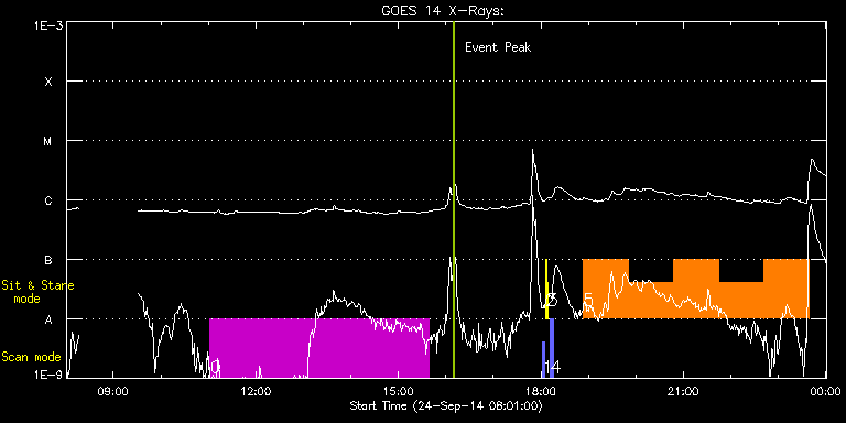 EIS Observation timeline overlay to GOES-Xray curve Code 1" 2" 40" 266" EIS Observations list for this event: STUDY ACRONYM ID DATE OBSERVED DESCRIPTION NOAA# TARGET 0 SK_CH_DIAG_320x384 | 42955 | 2014/09/24 11:02:33 | HOP 206 | | Coronal Hole TIMELINE ID DATE OBSERVED FITS FILE XCEN (+W/-E) YCEN (+N/-S) DUR ----------------------------------------------------------------------------------------------------------------- 42955 | 2014/09/24 11:02:33.000 | eis_l0_20140924_110233.fits.gz | -5.29 | 896.53 | 4h35m38s 1 PRY_slot_contextLITE | 42907 | 2014/09/24 18:02:33 | EIS pointing monitoring | 2170 | Active Region TIMELINE ID DATE OBSERVED FITS FILE XCEN (+W/-E) YCEN (+N/-S) DUR ----------------------------------------------------------------------------------------------------------------- 42907 | 2014/09/24 18:02:33.000 | eis_l0_20140924_180233.fits.gz | -15.06 | -0.50 | 2m45s 2 Alignment_266 | 42908 | 2014/09/24 18:05:57 | EIS pointing monitoring | | Quiet Sun TIMELINE ID DATE OBSERVED FITS FILE XCEN (+W/-E) YCEN (+N/-S) DUR ----------------------------------------------------------------------------------------------------------------- 42908 | 2014/09/24 18:05:57.000 | eis_l0_20140924_180557.fits.gz | -132.41 | -0.50 | 1m22s 3 XRT_synop_AIA | 42909 | 2014/09/24 18:08:19 | EIS pointing monitoring | | Quiet Sun TIMELINE ID DATE OBSERVED FITS FILE XCEN (+W/-E) YCEN (+N/-S) DUR ----------------------------------------------------------------------------------------------------------------- 42909 | 2014/09/24 18:08:19.000 | eis_l0_20140924_180819.fits.gz | -132.49 | -0.27 | 10s 4 PRY_slot_context_v3 | 42957 | 2014/09/24 18:12:26 | HOP 266 | | Active Region TIMELINE ID DATE OBSERVED FITS FILE XCEN (+W/-E) YCEN (+N/-S) DUR ----------------------------------------------------------------------------------------------------------------- 42957 | 2014/09/24 18:12:26.000 | eis_l0_20140924_181226.fits.gz | 241.66 | -277.12 | 2m57s 5 Cool_loop_stare | 42956 | 2014/09/24 18:53:33 | HOP 266 | | Quiet Sun TIMELINE ID DATE OBSERVED FITS FILE XCEN (+W/-E) YCEN (+N/-S) DUR ----------------------------------------------------------------------------------------------------------------- 42956 | 2014/09/24 18:53:33.000 | eis_l0_20140924_185333.fits.gz | 260.60 | -255.82 | 57m6s 42956 | 2014/09/24 19:50:42.000 | eis_l0_20140924_195042.fits.gz | 269.09 | -255.51 | 57m8s 42956 | 2014/09/24 20:47:52.000 | eis_l0_20140924_204752.fits.gz | 277.59 | -255.20 | 57m8s 42956 | 2014/09/24 21:45:02.000 | eis_l0_20140924_214502.fits.gz | 286.01 | -254.96 | 57m9s 42956 | 2014/09/24 22:42:14.000 | eis_l0_20140924_224214.fits.gz | 294.43 | -254.81 | 57m7s : Check study information : Download file : View thumbnails For this event, also check for:
