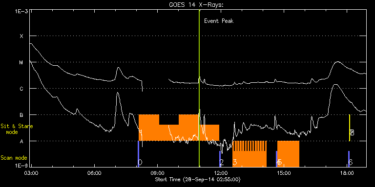 EIS Observation timeline overlay to GOES-Xray curve Code 1" 2" 40" 266" EIS Observations list for this event: STUDY ACRONYM ID DATE OBSERVED DESCRIPTION NOAA# TARGET 0 PRY_slot_context_v3 | 43007 | 2014/09/28 08:03:20 | HOP266 | | Active Region TIMELINE ID DATE OBSERVED FITS FILE XCEN (+W/-E) YCEN (+N/-S) DUR ----------------------------------------------------------------------------------------------------------------- 43007 | 2014/09/28 08:03:20.000 | eis_l0_20140928_080320.fits.gz | 52.36 | 473.13 | 2m56s 1 Cool_loop_stare | 43027 | 2014/09/28 08:06:42 | HOP266 | | Quiet Sun TIMELINE ID DATE OBSERVED FITS FILE XCEN (+W/-E) YCEN (+N/-S) DUR ----------------------------------------------------------------------------------------------------------------- 43027 | 2014/09/28 08:06:42.000 | eis_l0_20140928_080642.fits.gz | 67.49 | 473.28 | 57m8s 43027 | 2014/09/28 09:03:52.000 | eis_l0_20140928_090352.fits.gz | 74.44 | 473.28 | 57m8s 43027 | 2014/09/28 10:01:03.000 | eis_l0_20140928_100103.fits.gz | 81.24 | 473.28 | 57m8s 43027 | 2014/09/28 10:58:13.000 | eis_l0_20140928_105813.fits.gz | 88.03 | 473.52 | 57m9s 2 PRY_slot_context_v3 | 43028 | 2014/09/28 11:55:33 | HOP266 | | Active Region TIMELINE ID DATE OBSERVED FITS FILE XCEN (+W/-E) YCEN (+N/-S) DUR ----------------------------------------------------------------------------------------------------------------- 43028 | 2014/09/28 11:55:33.000 | eis_l0_20140928_115533.fits.gz | 80.50 | 473.44 | 2m56s 3 HH_Flare_raster_v6 | 43022 | 2014/09/28 12:33:33 | Flare study | | Flare TIMELINE ID DATE OBSERVED FITS FILE XCEN (+W/-E) YCEN (+N/-S) DUR ----------------------------------------------------------------------------------------------------------------- 43022 | 2014/09/28 12:33:33.000 | eis_l0_20140928_123333.fits.gz | 330.39 | -306.00 | 3m32s 43022 | 2014/09/28 12:37:08.000 | eis_l0_20140928_123708.fits.gz | 330.78 | -305.84 | 3m32s 43022 | 2014/09/28 12:40:43.000 | eis_l0_20140928_124043.fits.gz | 331.48 | -305.84 | 3m31s 43022 | 2014/09/28 12:44:17.000 | eis_l0_20140928_124417.fits.gz | 331.86 | -305.77 | 3m32s 43022 | 2014/09/28 12:47:52.000 | eis_l0_20140928_124752.fits.gz | 332.33 | -305.77 | 3m31s 43022 | 2014/09/28 12:51:26.000 | eis_l0_20140928_125126.fits.gz | 332.79 | -305.84 | 3m31s 43022 | 2014/09/28 12:55:00.000 | eis_l0_20140928_125500.fits.gz | 333.33 | -305.69 | 3m31s 43022 | 2014/09/28 12:58:34.000 | eis_l0_20140928_125834.fits.gz | 333.79 | -305.69 | 3m31s 43022 | 2014/09/28 13:02:08.000 | eis_l0_20140928_130208.fits.gz | 334.41 | -305.69 | 3m31s 43022 | 2014/09/28 13:05:42.000 | eis_l0_20140928_130542.fits.gz | 335.03 | -305.84 | 3m31s 43022 | 2014/09/28 13:09:16.000 | eis_l0_20140928_130916.fits.gz | 335.42 | -305.84 | 3m32s 43022 | 2014/09/28 13:12:51.000 | eis_l0_20140928_131251.fits.gz | 335.88 | -305.69 | 3m32s 43022 | 2014/09/28 13:16:26.000 | eis_l0_20140928_131626.fits.gz | 336.42 | -305.69 | 3m31s 43022 | 2014/09/28 13:20:00.000 | eis_l0_20140928_132000.fits.gz | 336.88 | -305.46 | 3m31s 43022 | 2014/09/28 13:23:34.000 | eis_l0_20140928_132334.fits.gz | 337.35 | -305.69 | 3m32s 43022 | 2014/09/28 13:27:09.000 | eis_l0_20140928_132709.fits.gz | 338.12 | -305.69 | 3m31s 43022 | 2014/09/28 13:30:43.000 | eis_l0_20140928_133043.fits.gz | 338.43 | -305.61 | 3m32s 43022 | 2014/09/28 13:34:18.000 | eis_l0_20140928_133418.fits.gz | 338.82 | -305.38 | 3m32s 43022 | 2014/09/28 13:37:52.000 | eis_l0_20140928_133752.fits.gz | 339.36 | -305.38 | 3m33s 43022 | 2014/09/28 13:41:27.000 | eis_l0_20140928_134127.fits.gz | 339.90 | -305.46 | 3m32s 43022 | 2014/09/28 13:45:01.000 | eis_l0_20140928_134501.fits.gz | 340.36 | -305.23 | 3m32s 43022 | 2014/09/28 13:48:35.000 | eis_l0_20140928_134835.fits.gz | 340.90 | -305.23 | 3m32s 43022 | 2014/09/28 13:52:09.000 | eis_l0_20140928_135209.fits.gz | 341.36 | -305.38 | 3m32s 43022 | 2014/09/28 13:55:44.000 | eis_l0_20140928_135544.fits.gz | 341.90 | -305.38 | 3m32s 43022 | 2014/09/28 13:59:19.000 | eis_l0_20140928_135919.fits.gz | 342.45 | -305.30 | 3m32s 43022 | 2014/09/28 14:02:54.000 | eis_l0_20140928_140254.fits.gz | 342.83 | -305.30 | 3m31s 43022 | 2014/09/28 14:06:28.000 | eis_l0_20140928_140628.fits.gz | 343.37 | -305.15 | 3m32s 4 PRY_slot_context_v3 | 43035 | 2014/09/28 14:37:49 | EIS spectral Atlas synoptic on AR | | Active Region TIMELINE ID DATE OBSERVED FITS FILE XCEN (+W/-E) YCEN (+N/-S) DUR ----------------------------------------------------------------------------------------------------------------- 43035 | 2014/09/28 14:37:49.000 | eis_l0_20140928_143749.fits.gz | 333.86 | -304.99 | 2m57s 5 Atlas_60 | 43036 | 2014/09/28 14:41:11 | EIS spectral Atlas synoptic on AR | | Quiet Sun TIMELINE ID DATE OBSERVED FITS FILE XCEN (+W/-E) YCEN (+N/-S) DUR ----------------------------------------------------------------------------------------------------------------- 43036 | 2014/09/28 14:41:11.000 | eis_l0_20140928_144111.fits.gz | 349.07 | -305.07 | 1h1m39s 6 PRY_slot_contextLITE | 42998 | 2014/09/28 18:02:50 | alignment | | Active Region TIMELINE ID DATE OBSERVED FITS FILE XCEN (+W/-E) YCEN (+N/-S) DUR ----------------------------------------------------------------------------------------------------------------- 42998 | 2014/09/28 18:02:50.000 | eis_l0_20140928_180250.fits.gz | -20.78 | -4.42 | 2m57s 7 Alignment_266 | 42999 | 2014/09/28 18:06:05 | alignment | | Quiet Sun TIMELINE ID DATE OBSERVED FITS FILE XCEN (+W/-E) YCEN (+N/-S) DUR ----------------------------------------------------------------------------------------------------------------- 42999 | 2014/09/28 18:06:05.000 | eis_l0_20140928_180605.fits.gz | -138.06 | -4.42 | 1m22s 8 XRT_synop_AIA | 43000 | 2014/09/28 18:08:12 | alignment | | Quiet Sun TIMELINE ID DATE OBSERVED FITS FILE XCEN (+W/-E) YCEN (+N/-S) DUR ----------------------------------------------------------------------------------------------------------------- 43000 | 2014/09/28 18:08:12.000 | eis_l0_20140928_180812.fits.gz | -138.06 | -4.27 | 10s : Chec