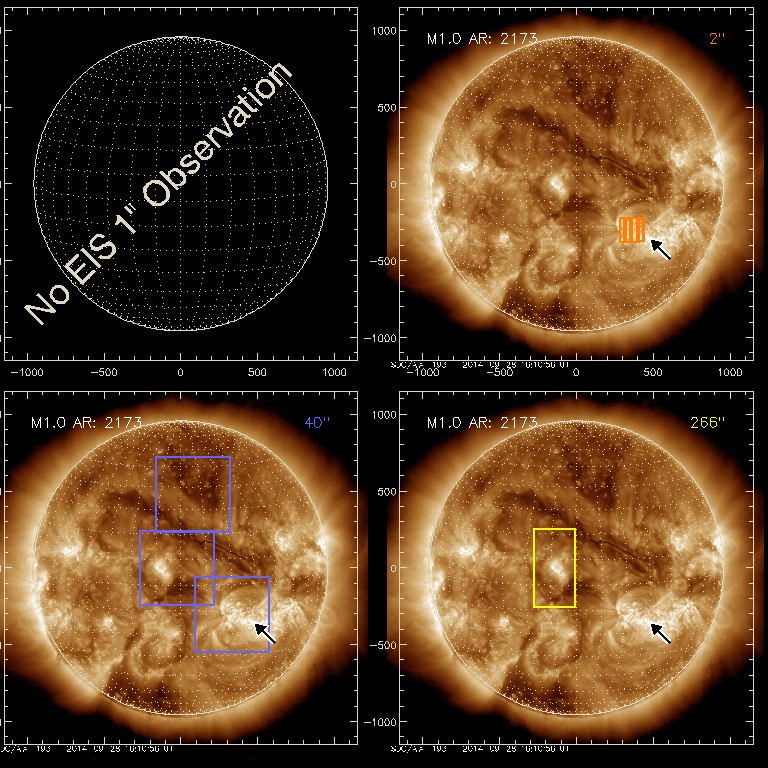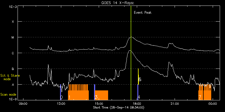 EIS Observation timeline overlay to GOES-Xray curve Code 1" 2" 40" 266" EIS Observations list for this event: STUDY ACRONYM ID DATE OBSERVED DESCRIPTION NOAA# TARGET 0 PRY_slot_context_v3 | 43028 | 2014/09/28 11:55:33 | HOP266 | | Active Region TIMELINE ID DATE OBSERVED FITS FILE XCEN (+W/-E) YCEN (+N/-S) DUR ----------------------------------------------------------------------------------------------------------------- 43028 | 2014/09/28 11:55:33.000 | eis_l0_20140928_115533.fits.gz | 80.50 | 473.44 | 2m56s 1 HH_Flare_raster_v6 | 43022 | 2014/09/28 12:33:33 | Flare study | | Flare TIMELINE ID DATE OBSERVED FITS FILE XCEN (+W/-E) YCEN (+N/-S) DUR ----------------------------------------------------------------------------------------------------------------- 43022 | 2014/09/28 12:33:33.000 | eis_l0_20140928_123333.fits.gz | 330.39 | -306.00 | 3m32s 43022 | 2014/09/28 12:37:08.000 | eis_l0_20140928_123708.fits.gz | 330.78 | -305.84 | 3m32s 43022 | 2014/09/28 12:40:43.000 | eis_l0_20140928_124043.fits.gz | 331.48 | -305.84 | 3m31s 43022 | 2014/09/28 12:44:17.000 | eis_l0_20140928_124417.fits.gz | 331.86 | -305.77 | 3m32s 43022 | 2014/09/28 12:47:52.000 | eis_l0_20140928_124752.fits.gz | 332.33 | -305.77 | 3m31s 43022 | 2014/09/28 12:51:26.000 | eis_l0_20140928_125126.fits.gz | 332.79 | -305.84 | 3m31s 43022 | 2014/09/28 12:55:00.000 | eis_l0_20140928_125500.fits.gz | 333.33 | -305.69 | 3m31s 43022 | 2014/09/28 12:58:34.000 | eis_l0_20140928_125834.fits.gz | 333.79 | -305.69 | 3m31s 43022 | 2014/09/28 13:02:08.000 | eis_l0_20140928_130208.fits.gz | 334.41 | -305.69 | 3m31s 43022 | 2014/09/28 13:05:42.000 | eis_l0_20140928_130542.fits.gz | 335.03 | -305.84 | 3m31s 43022 | 2014/09/28 13:09:16.000 | eis_l0_20140928_130916.fits.gz | 335.42 | -305.84 | 3m32s 43022 | 2014/09/28 13:12:51.000 | eis_l0_20140928_131251.fits.gz | 335.88 | -305.69 | 3m32s 43022 | 2014/09/28 13:16:26.000 | eis_l0_20140928_131626.fits.gz | 336.42 | -305.69 | 3m31s 43022 | 2014/09/28 13:20:00.000 | eis_l0_20140928_132000.fits.gz | 336.88 | -305.46 | 3m31s 43022 | 2014/09/28 13:23:34.000 | eis_l0_20140928_132334.fits.gz | 337.35 | -305.69 | 3m32s 43022 | 2014/09/28 13:27:09.000 | eis_l0_20140928_132709.fits.gz | 338.12 | -305.69 | 3m31s 43022 | 2014/09/28 13:30:43.000 | eis_l0_20140928_133043.fits.gz | 338.43 | -305.61 | 3m32s 43022 | 2014/09/28 13:34:18.000 | eis_l0_20140928_133418.fits.gz | 338.82 | -305.38 | 3m32s 43022 | 2014/09/28 13:37:52.000 | eis_l0_20140928_133752.fits.gz | 339.36 | -305.38 | 3m33s 43022 | 2014/09/28 13:41:27.000 | eis_l0_20140928_134127.fits.gz | 339.90 | -305.46 | 3m32s 43022 | 2014/09/28 13:45:01.000 | eis_l0_20140928_134501.fits.gz | 340.36 | -305.23 | 3m32s 43022 | 2014/09/28 13:48:35.000 | eis_l0_20140928_134835.fits.gz | 340.90 | -305.23 | 3m32s 43022 | 2014/09/28 13:52:09.000 | eis_l0_20140928_135209.fits.gz | 341.36 | -305.38 | 3m32s 43022 | 2014/09/28 13:55:44.000 | eis_l0_20140928_135544.fits.gz | 341.90 | -305.38 | 3m32s 43022 | 2014/09/28 13:59:19.000 | eis_l0_20140928_135919.fits.gz | 342.45 | -305.30 | 3m32s 43022 | 2014/09/28 14:02:54.000 | eis_l0_20140928_140254.fits.gz | 342.83 | -305.30 | 3m31s 43022 | 2014/09/28 14:06:28.000 | eis_l0_20140928_140628.fits.gz | 343.37 | -305.15 | 3m32s 2 PRY_slot_context_v3 | 43035 | 2014/09/28 14:37:49 | EIS spectral Atlas synoptic on AR | | Active Region TIMELINE ID DATE OBSERVED FITS FILE XCEN (+W/-E) YCEN (+N/-S) DUR ----------------------------------------------------------------------------------------------------------------- 43035 | 2014/09/28 14:37:49.000 | eis_l0_20140928_143749.fits.gz | 333.86 | -304.99 | 2m57s 3 Atlas_60 | 43036 | 2014/09/28 14:41:11 | EIS spectral Atlas synoptic on AR | | Quiet Sun TIMELINE ID DATE OBSERVED FITS FILE XCEN (+W/-E) YCEN (+N/-S) DUR ----------------------------------------------------------------------------------------------------------------- 43036 | 2014/09/28 14:41:11.000 | eis_l0_20140928_144111.fits.gz | 349.07 | -305.07 | 1h1m39s 4 PRY_slot_contextLITE | 42998 | 2014/09/28 18:02:50 | alignment | | Active Region TIMELINE ID DATE OBSERVED FITS FILE XCEN (+W/-E) YCEN (+N/-S) DUR ----------------------------------------------------------------------------------------------------------------- 42998 | 2014/09/28 18:02:50.000 | eis_l0_20140928_180250.fits.gz | -20.78 | -4.42 | 2m57s 5 Alignment_266 | 42999 | 2014/09/28 18:06:05 | alignment | | Quiet Sun TIMELINE ID DATE OBSERVED FITS FILE XCEN (+W/-E) YCEN (+N/-S) DUR ----------------------------------------------------------------------------------------------------------------- 42999 | 2014/09/28 18:06:05.000 | eis_l0_20140928_180605.fits.gz | -138.06 | -4.42 | 1m22s 6 XRT_synop_AIA | 43000 | 2014/09/28 18:08:12 | alignment | | Quiet Sun TIMELINE ID DATE OBSERVED FITS FILE XCEN (+W/-E) YCEN (+N/-S) DUR ----------------------------------------------------------------------------------------------------------------- 43000 | 2014/09/28 18:08:12.000 | eis_l0_20140928_180812.fits.gz | -138.06 | -4.27 | 10s 7 HH_Flare_raster_v6 | 43017 | 2014/09/28 22:51:49 | Flare study | | Flare TIMELINE ID DATE OBSERVED FITS FILE XCEN (+W/-E) YCEN (+N/-S) DUR ----------------------------------------------------------------------------------------------------------------- 43017 | 2014/09/28 22:51:49.000 | eis_l0_20140928_225149.fits.gz | 416.00 | -301.21 | 3m31s 43017 | 2014/09/28 22:55:23.000 | eis_l0_20140928_225523.fits.gz | 416.47 | -300.98 | 3m32s 43017 | 2014/09/28 22:58:58.000 | eis_l0_20140928_225858.fits.gz | 417.01 | -300.98 | 3m31s 43017 | 2014/09/28 23:02:32.000 | eis_l0_20140928_230232.fits.gz | 417.47 | -300.98 | 3m32s 43017 | 2014/09/28 23:06:06.000 | eis_l0_20140928_230606.fits.gz | 418.01 | -301.05 | 3m32s 43017 | 2014/09/28 23:09:40.000 | eis_l0_20140928_230940.fits.gz | 418.40 | -300.82 | 3m32s 43017 | 2014/09/28 23:16:49.000 | eis_l0_20140928_231649.fits.gz | 419.33 | -300.90 | 3m32s 43017 | 2014/09/28 23:20:23.000 | eis_l0_20140928_232023.fits.gz | 