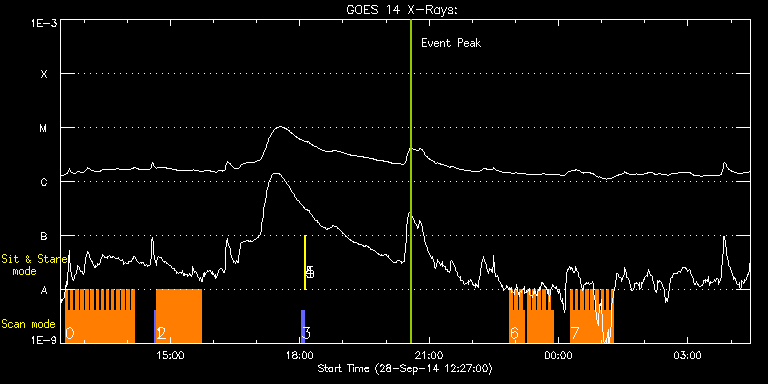 EIS Observation timeline overlay to GOES-Xray curve Code 1" 2" 40" 266" EIS Observations list for this event: STUDY ACRONYM ID DATE OBSERVED DESCRIPTION NOAA# TARGET 0 HH_Flare_raster_v6 | 43022 | 2014/09/28 12:33:33 | Flare study | | Flare TIMELINE ID DATE OBSERVED FITS FILE XCEN (+W/-E) YCEN (+N/-S) DUR ----------------------------------------------------------------------------------------------------------------- 43022 | 2014/09/28 12:33:33.000 | eis_l0_20140928_123333.fits.gz | 330.39 | -306.00 | 3m32s 43022 | 2014/09/28 12:37:08.000 | eis_l0_20140928_123708.fits.gz | 330.78 | -305.84 | 3m32s 43022 | 2014/09/28 12:40:43.000 | eis_l0_20140928_124043.fits.gz | 331.48 | -305.84 | 3m31s 43022 | 2014/09/28 12:44:17.000 | eis_l0_20140928_124417.fits.gz | 331.86 | -305.77 | 3m32s 43022 | 2014/09/28 12:47:52.000 | eis_l0_20140928_124752.fits.gz | 332.33 | -305.77 | 3m31s 43022 | 2014/09/28 12:51:26.000 | eis_l0_20140928_125126.fits.gz | 332.79 | -305.84 | 3m31s 43022 | 2014/09/28 12:55:00.000 | eis_l0_20140928_125500.fits.gz | 333.33 | -305.69 | 3m31s 43022 | 2014/09/28 12:58:34.000 | eis_l0_20140928_125834.fits.gz | 333.79 | -305.69 | 3m31s 43022 | 2014/09/28 13:02:08.000 | eis_l0_20140928_130208.fits.gz | 334.41 | -305.69 | 3m31s 43022 | 2014/09/28 13:05:42.000 | eis_l0_20140928_130542.fits.gz | 335.03 | -305.84 | 3m31s 43022 | 2014/09/28 13:09:16.000 | eis_l0_20140928_130916.fits.gz | 335.42 | -305.84 | 3m32s 43022 | 2014/09/28 13:12:51.000 | eis_l0_20140928_131251.fits.gz | 335.88 | -305.69 | 3m32s 43022 | 2014/09/28 13:16:26.000 | eis_l0_20140928_131626.fits.gz | 336.42 | -305.69 | 3m31s 43022 | 2014/09/28 13:20:00.000 | eis_l0_20140928_132000.fits.gz | 336.88 | -305.46 | 3m31s 43022 | 2014/09/28 13:23:34.000 | eis_l0_20140928_132334.fits.gz | 337.35 | -305.69 | 3m32s 43022 | 2014/09/28 13:27:09.000 | eis_l0_20140928_132709.fits.gz | 338.12 | -305.69 | 3m31s 43022 | 2014/09/28 13:30:43.000 | eis_l0_20140928_133043.fits.gz | 338.43 | -305.61 | 3m32s 43022 | 2014/09/28 13:34:18.000 | eis_l0_20140928_133418.fits.gz | 338.82 | -305.38 | 3m32s 43022 | 2014/09/28 13:37:52.000 | eis_l0_20140928_133752.fits.gz | 339.36 | -305.38 | 3m33s 43022 | 2014/09/28 13:41:27.000 | eis_l0_20140928_134127.fits.gz | 339.90 | -305.46 | 3m32s 43022 | 2014/09/28 13:45:01.000 | eis_l0_20140928_134501.fits.gz | 340.36 | -305.23 | 3m32s 43022 | 2014/09/28 13:48:35.000 | eis_l0_20140928_134835.fits.gz | 340.90 | -305.23 | 3m32s 43022 | 2014/09/28 13:52:09.000 | eis_l0_20140928_135209.fits.gz | 341.36 | -305.38 | 3m32s 43022 | 2014/09/28 13:55:44.000 | eis_l0_20140928_135544.fits.gz | 341.90 | -305.38 | 3m32s 43022 | 2014/09/28 13:59:19.000 | eis_l0_20140928_135919.fits.gz | 342.45 | -305.30 | 3m32s 43022 | 2014/09/28 14:02:54.000 | eis_l0_20140928_140254.fits.gz | 342.83 | -305.30 | 3m31s 43022 | 2014/09/28 14:06:28.000 | eis_l0_20140928_140628.fits.gz | 343.37 | -305.15 | 3m32s 1 PRY_slot_context_v3 | 43035 | 2014/09/28 14:37:49 | EIS spectral Atlas synoptic on AR | | Active Region TIMELINE ID DATE OBSERVED FITS FILE XCEN (+W/-E) YCEN (+N/-S) DUR ----------------------------------------------------------------------------------------------------------------- 43035 | 2014/09/28 14:37:49.000 | eis_l0_20140928_143749.fits.gz | 333.86 | -304.99 | 2m57s 2 Atlas_60 | 43036 | 2014/09/28 14:41:11 | EIS spectral Atlas synoptic on AR | | Quiet Sun TIMELINE ID DATE OBSERVED FITS FILE XCEN (+W/-E) YCEN (+N/-S) DUR ----------------------------------------------------------------------------------------------------------------- 43036 | 2014/09/28 14:41:11.000 | eis_l0_20140928_144111.fits.gz | 349.07 | -305.07 | 1h1m39s 3 PRY_slot_contextLITE | 42998 | 2014/09/28 18:02:50 | alignment | | Active Region TIMELINE ID DATE OBSERVED FITS FILE XCEN (+W/-E) YCEN (+N/-S) DUR ----------------------------------------------------------------------------------------------------------------- 42998 | 2014/09/28 18:02:50.000 | eis_l0_20140928_180250.fits.gz | -20.78 | -4.42 | 2m57s 4 Alignment_266 | 42999 | 2014/09/28 18:06:05 | alignment | | Quiet Sun TIMELINE ID DATE OBSERVED FITS FILE XCEN (+W/-E) YCEN (+N/-S) DUR ----------------------------------------------------------------------------------------------------------------- 42999 | 2014/09/28 18:06:05.000 | eis_l0_20140928_180605.fits.gz | -138.06 | -4.42 | 1m22s 5 XRT_synop_AIA | 43000 | 2014/09/28 18:08:12 | alignment | | Quiet Sun TIMELINE ID DATE OBSERVED FITS FILE XCEN (+W/-E) YCEN (+N/-S) DUR ----------------------------------------------------------------------------------------------------------------- 43000 | 2014/09/28 18:08:12.000 | eis_l0_20140928_180812.fits.gz | -138.06 | -4.27 | 10s 6 HH_Flare_raster_v6 | 43017 | 2014/09/28 22:51:49 | Flare study | | Flare TIMELINE ID DATE OBSERVED FITS FILE XCEN (+W/-E) YCEN (+N/-S) DUR ----------------------------------------------------------------------------------------------------------------- 43017 | 2014/09/28 22:51:49.000 | eis_l0_20140928_225149.fits.gz | 416.00 | -301.21 | 3m31s 43017 | 2014/09/28 22:55:23.000 | eis_l0_20140928_225523.fits.gz | 416.47 | -300.98 | 3m32s 43017 | 2014/09/28 22:58:58.000 | eis_l0_20140928_225858.fits.gz | 417.01 | -300.98 | 3m31s 43017 | 2014/09/28 23:02:32.000 | eis_l0_20140928_230232.fits.gz | 417.47 | -300.98 | 3m32s 43017 | 2014/09/28 23:06:06.000 | eis_l0_20140928_230606.fits.gz | 418.01 | -301.05 | 3m32s 43017 | 2014/09/28 23:09:40.000 | eis_l0_20140928_230940.fits.gz | 418.40 | -300.82 | 3m32s 43017 | 2014/09/28 23:16:49.000 | eis_l0_20140928_231649.fits.gz | 419.33 | -300.90 | 3m32s 43017 | 2014/09/28 23:20:23.000 | eis_l0_20140928_232023.fits.gz | 419.87 | -300.98 | 3m32s 43017 | 2014/09/28 23:23:57.000 | eis_l0_20140928_232357.fits.gz | 420.33 | -300.82 | 3m31s 43017 | 2014/09/28 23:27:31.000 | eis_l0_20140928_232731.fits.gz | 420.87 | -300.82 | 3m32s 43017 | 2014/09/28 23:31:06.000 | eis_l0_20140928_233106.fits.gz | 421.26 | -300.82 | 3m31s 43017 | 2014/09/28 23:34:40.000 | eis_l0_2014092