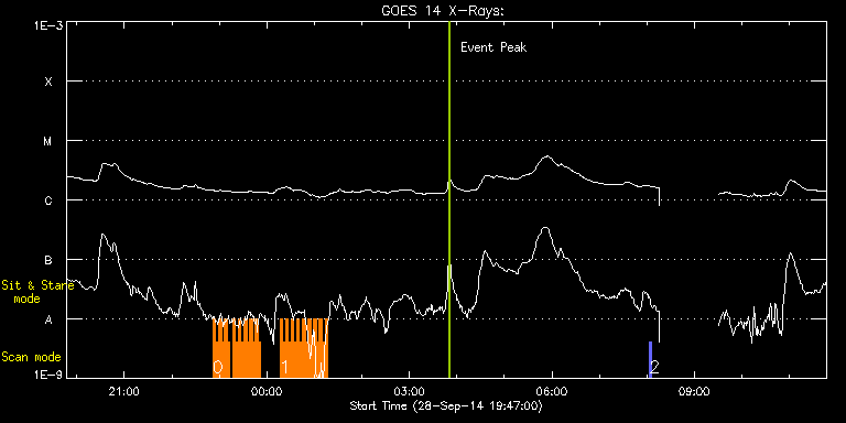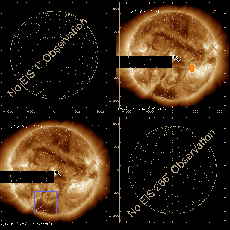 EIS Observation timeline overlay to GOES-Xray curve Code 1" 2" 40" 266" EIS Observations list for this event: STUDY ACRONYM ID DATE OBSERVED DESCRIPTION NOAA# TARGET 0 HH_Flare_raster_v6 | 43017 | 2014/09/28 22:51:49 | Flare study | | Flare TIMELINE ID DATE OBSERVED FITS FILE XCEN (+W/-E) YCEN (+N/-S) DUR ----------------------------------------------------------------------------------------------------------------- 43017 | 2014/09/28 22:51:49.000 | eis_l0_20140928_225149.fits.gz | 416.00 | -301.21 | 3m31s 43017 | 2014/09/28 22:55:23.000 | eis_l0_20140928_225523.fits.gz | 416.47 | -300.98 | 3m32s 43017 | 2014/09/28 22:58:58.000 | eis_l0_20140928_225858.fits.gz | 417.01 | -300.98 | 3m31s 43017 | 2014/09/28 23:02:32.000 | eis_l0_20140928_230232.fits.gz | 417.47 | -300.98 | 3m32s 43017 | 2014/09/28 23:06:06.000 | eis_l0_20140928_230606.fits.gz | 418.01 | -301.05 | 3m32s 43017 | 2014/09/28 23:09:40.000 | eis_l0_20140928_230940.fits.gz | 418.40 | -300.82 | 3m32s 43017 | 2014/09/28 23:16:49.000 | eis_l0_20140928_231649.fits.gz | 419.33 | -300.90 | 3m32s 43017 | 2014/09/28 23:20:23.000 | eis_l0_20140928_232023.fits.gz | 419.87 | -300.98 | 3m32s 43017 | 2014/09/28 23:23:57.000 | eis_l0_20140928_232357.fits.gz | 420.33 | -300.82 | 3m31s 43017 | 2014/09/28 23:27:31.000 | eis_l0_20140928_232731.fits.gz | 420.87 | -300.82 | 3m32s 43017 | 2014/09/28 23:31:06.000 | eis_l0_20140928_233106.fits.gz | 421.26 | -300.82 | 3m31s 43017 | 2014/09/28 23:34:40.000 | eis_l0_20140928_233440.fits.gz | 421.80 | -300.59 | 3m31s 43017 | 2014/09/28 23:38:14.000 | eis_l0_20140928_233814.fits.gz | 422.34 | -300.59 | 3m32s 43017 | 2014/09/28 23:41:49.000 | eis_l0_20140928_234149.fits.gz | 422.72 | -300.67 | 3m31s 43017 | 2014/09/28 23:45:23.000 | eis_l0_20140928_234523.fits.gz | 423.19 | -300.67 | 3m31s 43017 | 2014/09/28 23:48:57.000 | eis_l0_20140928_234857.fits.gz | 423.65 | -300.59 | 3m31s 1 HH_Flare_raster_v6 | 43023 | 2014/09/29 00:16:13 | Flare study | | Flare TIMELINE ID DATE OBSERVED FITS FILE XCEN (+W/-E) YCEN (+N/-S) DUR ----------------------------------------------------------------------------------------------------------------- 43023 | 2014/09/29 00:16:13.000 | eis_l0_20140929_001613.fits.gz | 427.44 | -300.36 | 3m31s 43023 | 2014/09/29 00:19:47.000 | eis_l0_20140929_001947.fits.gz | 427.82 | -300.20 | 3m32s 43023 | 2014/09/29 00:23:21.000 | eis_l0_20140929_002321.fits.gz | 428.36 | -300.13 | 3m32s 43023 | 2014/09/29 00:26:56.000 | eis_l0_20140929_002656.fits.gz | 428.75 | -300.13 | 3m31s 43023 | 2014/09/29 00:30:30.000 | eis_l0_20140929_003030.fits.gz | 429.29 | -300.28 | 3m31s 43023 | 2014/09/29 00:34:04.000 | eis_l0_20140929_003404.fits.gz | 429.83 | -300.20 | 3m32s 43023 | 2014/09/29 00:37:39.000 | eis_l0_20140929_003739.fits.gz | 430.22 | -300.20 | 3m32s 43023 | 2014/09/29 00:41:13.000 | eis_l0_20140929_004113.fits.gz | 430.68 | -300.20 | 3m32s 43023 | 2014/09/29 00:44:48.000 | eis_l0_20140929_004448.fits.gz | 431.14 | -300.20 | 3m31s 43023 | 2014/09/29 00:48:22.000 | eis_l0_20140929_004822.fits.gz | 431.68 | -300.20 | 3m31s 43023 | 2014/09/29 00:51:56.000 | eis_l0_20140929_005156.fits.gz | 432.15 | -300.05 | 3m32s 43023 | 2014/09/29 00:55:31.000 | eis_l0_20140929_005531.fits.gz | 432.53 | -299.89 | 3m31s 43023 | 2014/09/29 00:59:05.000 | eis_l0_20140929_005905.fits.gz | 433.08 | -299.97 | 3m31s 43023 | 2014/09/29 01:02:39.000 | eis_l0_20140929_010239.fits.gz | 433.54 | -300.05 | 3m31s 43023 | 2014/09/29 01:06:12.000 | eis_l0_20140929_010612.fits.gz | 434.00 | -300.13 | 3m32s 43023 | 2014/09/29 01:09:46.000 | eis_l0_20140929_010946.fits.gz | 434.47 | -299.82 | 3m31s 43023 | 2014/09/29 01:13:20.000 | eis_l0_20140929_011320.fits.gz | 435.08 | -300.05 | 3m31s 2 PRY_slot_context_v3 | 43029 | 2014/09/29 08:03:19 | HOP266 | | Active Region TIMELINE ID DATE OBSERVED FITS FILE XCEN (+W/-E) YCEN (+N/-S) DUR ----------------------------------------------------------------------------------------------------------------- 43029 | 2014/09/29 08:03:19.000 | eis_l0_20140929_080319.fits.gz | -181.08 | -717.64 | 2m57s : Check study information : Download file : View thumbnails For this event, also check for: