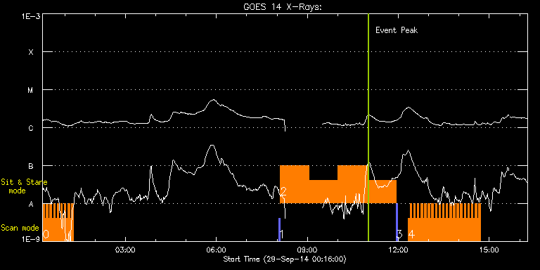 EIS Observation timeline overlay to GOES-Xray curve Code 1" 2" 40" 266" EIS Observations list for this event: STUDY ACRONYM ID DATE OBSERVED DESCRIPTION NOAA# TARGET 0 HH_Flare_raster_v6 | 43023 | 2014/09/29 00:16:13 | Flare study | | Flare TIMELINE ID DATE OBSERVED FITS FILE XCEN (+W/-E) YCEN (+N/-S) DUR ----------------------------------------------------------------------------------------------------------------- 43023 | 2014/09/29 00:16:13.000 | eis_l0_20140929_001613.fits.gz | 427.44 | -300.36 | 3m31s 43023 | 2014/09/29 00:19:47.000 | eis_l0_20140929_001947.fits.gz | 427.82 | -300.20 | 3m32s 43023 | 2014/09/29 00:23:21.000 | eis_l0_20140929_002321.fits.gz | 428.36 | -300.13 | 3m32s 43023 | 2014/09/29 00:26:56.000 | eis_l0_20140929_002656.fits.gz | 428.75 | -300.13 | 3m31s 43023 | 2014/09/29 00:30:30.000 | eis_l0_20140929_003030.fits.gz | 429.29 | -300.28 | 3m31s 43023 | 2014/09/29 00:34:04.000 | eis_l0_20140929_003404.fits.gz | 429.83 | -300.20 | 3m32s 43023 | 2014/09/29 00:37:39.000 | eis_l0_20140929_003739.fits.gz | 430.22 | -300.20 | 3m32s 43023 | 2014/09/29 00:41:13.000 | eis_l0_20140929_004113.fits.gz | 430.68 | -300.20 | 3m32s 43023 | 2014/09/29 00:44:48.000 | eis_l0_20140929_004448.fits.gz | 431.14 | -300.20 | 3m31s 43023 | 2014/09/29 00:48:22.000 | eis_l0_20140929_004822.fits.gz | 431.68 | -300.20 | 3m31s 43023 | 2014/09/29 00:51:56.000 | eis_l0_20140929_005156.fits.gz | 432.15 | -300.05 | 3m32s 43023 | 2014/09/29 00:55:31.000 | eis_l0_20140929_005531.fits.gz | 432.53 | -299.89 | 3m31s 43023 | 2014/09/29 00:59:05.000 | eis_l0_20140929_005905.fits.gz | 433.08 | -299.97 | 3m31s 43023 | 2014/09/29 01:02:39.000 | eis_l0_20140929_010239.fits.gz | 433.54 | -300.05 | 3m31s 43023 | 2014/09/29 01:06:12.000 | eis_l0_20140929_010612.fits.gz | 434.00 | -300.13 | 3m32s 43023 | 2014/09/29 01:09:46.000 | eis_l0_20140929_010946.fits.gz | 434.47 | -299.82 | 3m31s 43023 | 2014/09/29 01:13:20.000 | eis_l0_20140929_011320.fits.gz | 435.08 | -300.05 | 3m31s 1 PRY_slot_context_v3 | 43029 | 2014/09/29 08:03:19 | HOP266 | | Active Region TIMELINE ID DATE OBSERVED FITS FILE XCEN (+W/-E) YCEN (+N/-S) DUR ----------------------------------------------------------------------------------------------------------------- 43029 | 2014/09/29 08:03:19.000 | eis_l0_20140929_080319.fits.gz | -181.08 | -717.64 | 2m57s 2 Cool_loop_stare | 43030 | 2014/09/29 08:06:41 | HOP266 | | Quiet Sun TIMELINE ID DATE OBSERVED FITS FILE XCEN (+W/-E) YCEN (+N/-S) DUR ----------------------------------------------------------------------------------------------------------------- 43030 | 2014/09/29 08:06:41.000 | eis_l0_20140929_080641.fits.gz | -165.96 | -717.41 | 57m7s 43030 | 2014/09/29 09:03:51.000 | eis_l0_20140929_090351.fits.gz | -160.47 | -717.72 | 57m8s 43030 | 2014/09/29 10:01:01.000 | eis_l0_20140929_100101.fits.gz | -155.07 | -717.80 | 57m9s 43030 | 2014/09/29 10:58:12.000 | eis_l0_20140929_105812.fits.gz | -149.66 | -718.03 | 57m8s 3 PRY_slot_context_v3 | 43031 | 2014/09/29 11:55:31 | HOP266 | | Active Region TIMELINE ID DATE OBSERVED FITS FILE XCEN (+W/-E) YCEN (+N/-S) DUR ----------------------------------------------------------------------------------------------------------------- 43031 | 2014/09/29 11:55:31.000 | eis_l0_20140929_115531.fits.gz | -158.51 | -718.18 | 2m56s 4 HH_Flare_raster_v6 | 43016 | 2014/09/29 12:19:32 | Flare study | | Flare TIMELINE ID DATE OBSERVED FITS FILE XCEN (+W/-E) YCEN (+N/-S) DUR ----------------------------------------------------------------------------------------------------------------- 43016 | 2014/09/29 12:19:32.000 | eis_l0_20140929_121932.fits.gz | -148.52 | -749.34 | 3m31s 43016 | 2014/09/29 12:23:06.000 | eis_l0_20140929_122306.fits.gz | -148.28 | -749.26 | 3m32s 43016 | 2014/09/29 12:26:41.000 | eis_l0_20140929_122641.fits.gz | -147.82 | -749.26 | 3m31s 43016 | 2014/09/29 12:30:15.000 | eis_l0_20140929_123015.fits.gz | 11.54 | -586.73 | 3m31s 43016 | 2014/09/29 12:33:49.000 | eis_l0_20140929_123349.fits.gz | 603.49 | -327.80 | 3m32s 43016 | 2014/09/29 12:37:24.000 | eis_l0_20140929_123724.fits.gz | 603.88 | -327.72 | 3m31s 43016 | 2014/09/29 12:40:58.000 | eis_l0_20140929_124058.fits.gz | 604.26 | -327.80 | 3m32s 43016 | 2014/09/29 12:44:33.000 | eis_l0_20140929_124433.fits.gz | 604.65 | -327.64 | 3m31s 43016 | 2014/09/29 12:48:07.000 | eis_l0_20140929_124807.fits.gz | 605.03 | -327.88 | 3m31s 43016 | 2014/09/29 12:51:41.000 | eis_l0_20140929_125141.fits.gz | 605.42 | -327.72 | 3m32s 43016 | 2014/09/29 12:55:16.000 | eis_l0_20140929_125516.fits.gz | 605.89 | -327.57 | 3m32s 43016 | 2014/09/29 12:58:50.000 | eis_l0_20140929_125850.fits.gz | 606.19 | -327.57 | 3m31s 43016 | 2014/09/29 13:02:24.000 | eis_l0_20140929_130224.fits.gz | 606.66 | -327.64 | 3m31s 43016 | 2014/09/29 13:05:58.000 | eis_l0_20140929_130558.fits.gz | 607.04 | -327.49 | 3m32s 43016 | 2014/09/29 13:09:33.000 | eis_l0_20140929_130933.fits.gz | 607.43 | -327.41 | 3m31s 43016 | 2014/09/29 13:13:07.000 | eis_l0_20140929_131307.fits.gz | 607.97 | -327.49 | 3m32s 43016 | 2014/09/29 13:16:42.000 | eis_l0_20140929_131642.fits.gz | 608.28 | -327.49 | 3m31s 43016 | 2014/09/29 13:20:16.000 | eis_l0_20140929_132016.fits.gz | 608.67 | -327.41 | 3m31s 43016 | 2014/09/29 13:23:50.000 | eis_l0_20140929_132350.fits.gz | 609.13 | -327.18 | 3m31s 43016 | 2014/09/29 13:27:24.000 | eis_l0_20140929_132724.fits.gz | 609.52 | -327.26 | 3m31s 43016 | 2014/09/29 13:30:58.000 | eis_l0_20140929_133058.fits.gz | 609.82 | -327.18 | 3m32s 43016 | 2014/09/29 13:34:32.000 | eis_l0_20140929_133432.fits.gz | 610.36 | -327.18 | 3m31s 43016 | 2014/09/29 13:38:06.000 | eis_l0_20140929_133806.fits.gz | 610.67 | -327.03 | 3m31s 43016 | 2014/09/29 13:41:40.000 | eis_l0_20140929_134140.fits.gz | 611.06 | -327.18 | 3m31s 43016 | 2014/09/29 13:45:14.000 | eis_l0_20140929_134514.fits.gz | 611.37 | -327.10 | 3m31s 43016 | 2014/09/29 13:48:48.000 | eis_l0_20140929_134848.fits.gz | 611.91 | -327.03 | 3m32s 43016 | 2014/09/29 13:52:23.000 | eis_l