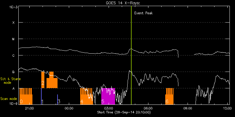 EIS Observation timeline overlay to GOES-Xray curve Code 1" 2" 40" 266" EIS Observations list for this event: STUDY ACRONYM ID DATE OBSERVED DESCRIPTION NOAA# TARGET 0 HH_Flare_raster_v6 | 43024 | 2014/09/29 20:15:48 | Flare study | | Flare TIMELINE ID DATE OBSERVED FITS FILE XCEN (+W/-E) YCEN (+N/-S) DUR ----------------------------------------------------------------------------------------------------------------- 43024 | 2014/09/29 20:15:48.000 | eis_l0_20140929_201548.fits.gz | 648.86 | -327.16 | 3m32s 43024 | 2014/09/29 20:19:23.000 | eis_l0_20140929_201923.fits.gz | 649.25 | -327.08 | 3m31s 43024 | 2014/09/29 20:22:57.000 | eis_l0_20140929_202257.fits.gz | 649.64 | -327.24 | 3m31s 43024 | 2014/09/29 20:26:31.000 | eis_l0_20140929_202631.fits.gz | 649.95 | -327.08 | 3m32s 43024 | 2014/09/29 20:30:06.000 | eis_l0_20140929_203006.fits.gz | 650.33 | -326.93 | 3m31s 43024 | 2014/09/29 20:33:40.000 | eis_l0_20140929_203340.fits.gz | 650.72 | -326.93 | 3m31s 43024 | 2014/09/29 20:37:14.000 | eis_l0_20140929_203714.fits.gz | 651.10 | -327.01 | 3m31s 43024 | 2014/09/29 20:40:48.000 | eis_l0_20140929_204048.fits.gz | 651.49 | -326.77 | 3m32s 43024 | 2014/09/29 20:44:23.000 | eis_l0_20140929_204423.fits.gz | 651.88 | -326.85 | 3m31s 43024 | 2014/09/29 20:47:57.000 | eis_l0_20140929_204757.fits.gz | 652.18 | -326.77 | 3m31s 43024 | 2014/09/29 20:51:31.000 | eis_l0_20140929_205131.fits.gz | 652.49 | -326.77 | 3m31s 43024 | 2014/09/29 20:55:05.000 | eis_l0_20140929_205505.fits.gz | 652.96 | -326.70 | 3m31s 43024 | 2014/09/29 20:58:39.000 | eis_l0_20140929_205839.fits.gz | 653.34 | -326.62 | 3m32s 43024 | 2014/09/29 21:02:13.000 | eis_l0_20140929_210213.fits.gz | 653.73 | -326.54 | 3m32s 43024 | 2014/09/29 21:05:48.000 | eis_l0_20140929_210548.fits.gz | 654.04 | -326.46 | 3m31s 43024 | 2014/09/29 21:09:22.000 | eis_l0_20140929_210922.fits.gz | 654.50 | -326.54 | 3m31s 1 eis_eitwave_context | 43032 | 2014/09/29 21:52:19 | HOP256 | | Quiet Sun TIMELINE ID DATE OBSERVED FITS FILE XCEN (+W/-E) YCEN (+N/-S) DUR ----------------------------------------------------------------------------------------------------------------- 43032 | 2014/09/29 21:52:19.000 | eis_l0_20140929_215219.fits.gz | 629.27 | -525.08 | 1m32s 2 kam_qs_sns_eis | 43033 | 2014/09/29 21:54:16 | HOP256 | | Quiet Sun TIMELINE ID DATE OBSERVED FITS FILE XCEN (+W/-E) YCEN (+N/-S) DUR ----------------------------------------------------------------------------------------------------------------- 43033 | 2014/09/29 21:54:16.000 | eis_l0_20140929_215416.fits.gz | 650.48 | -524.77 | 12m29s 43033 | 2014/09/29 22:18:40.000 | eis_l0_20140929_221840.fits.gz | 652.87 | -524.54 | 11m47s 43033 | 2014/09/29 22:30:32.000 | eis_l0_20140929_223032.fits.gz | 654.18 | -524.46 | 18m3s 43033 | 2014/09/29 22:48:40.000 | eis_l0_20140929_224840.fits.gz | 655.96 | -524.15 | 18m3s 3 eis_eitwave_context | 43034 | 2014/09/29 23:06:55 | HOP256 | | Quiet Sun TIMELINE ID DATE OBSERVED FITS FILE XCEN (+W/-E) YCEN (+N/-S) DUR ----------------------------------------------------------------------------------------------------------------- 43034 | 2014/09/29 23:06:55.000 | eis_l0_20140929_230655.fits.gz | 636.91 | -523.92 | 1m32s 4 HH_Flare_raster_v6 | 43018 | 2014/09/30 00:51:02 | Flare study | | Flare TIMELINE ID DATE OBSERVED FITS FILE XCEN (+W/-E) YCEN (+N/-S) DUR ----------------------------------------------------------------------------------------------------------------- 43018 | 2014/09/30 00:51:02.000 | eis_l0_20140930_005102.fits.gz | 677.21 | -323.61 | 3m32s 43018 | 2014/09/30 00:54:37.000 | eis_l0_20140930_005437.fits.gz | 677.52 | -323.45 | 3m31s 43018 | 2014/09/30 00:58:11.000 | eis_l0_20140930_005811.fits.gz | 677.91 | -323.30 | 3m32s 43018 | 2014/09/30 01:01:45.000 | eis_l0_20140930_010145.fits.gz | 678.22 | -323.30 | 3m32s 43018 | 2014/09/30 01:05:20.000 | eis_l0_20140930_010520.fits.gz | 678.60 | -323.45 | 3m31s 43018 | 2014/09/30 01:08:54.000 | eis_l0_20140930_010854.fits.gz | 678.91 | -323.37 | 3m32s 43018 | 2014/09/30 01:12:28.000 | eis_l0_20140930_011228.fits.gz | 679.30 | -323.22 | 3m32s 43018 | 2014/09/30 01:16:03.000 | eis_l0_20140930_011603.fits.gz | 679.61 | -323.22 | 3m31s 43018 | 2014/09/30 01:19:37.000 | eis_l0_20140930_011937.fits.gz | 679.99 | -323.14 | 3m31s 43018 | 2014/09/30 01:23:11.000 | eis_l0_20140930_012311.fits.gz | 680.38 | -323.14 | 3m32s 43018 | 2014/09/30 01:26:45.000 | eis_l0_20140930_012645.fits.gz | 680.61 | -322.99 | 3m32s 43018 | 2014/09/30 01:30:20.000 | eis_l0_20140930_013020.fits.gz | 681.15 | -323.07 | 3m31s 43018 | 2014/09/30 01:33:54.000 | eis_l0_20140930_013354.fits.gz | 681.39 | -322.83 | 3m32s 43018 | 2014/09/30 01:37:28.000 | eis_l0_20140930_013728.fits.gz | 681.77 | -322.83 | 3m32s 43018 | 2014/09/30 01:41:03.000 | eis_l0_20140930_014103.fits.gz | 682.16 | -322.83 | 3m32s 43018 | 2014/09/30 01:44:38.000 | eis_l0_20140930_014438.fits.gz | 682.54 | -322.83 | 3m31s 5 HPW021_VEL_120x512v1 | 43037 | 2014/09/30 02:26:25 | Flare study | | Active Region TIMELINE ID DATE OBSERVED FITS FILE XCEN (+W/-E) YCEN (+N/-S) DUR ----------------------------------------------------------------------------------------------------------------- 43037 | 2014/09/30 02:26:25.000 | eis_l0_20140930_022625.fits.gz | 687.12 | -322.37 | 1h1m53s 6 HH_Flare_raster_v6 | 43020 | 2014/09/30 07:18:25 | Flare study | | Flare TIMELINE ID DATE OBSERVED FITS FILE XCEN (+W/-E) YCEN (+N/-S) DUR ----------------------------------------------------------------------------------------------------------------- 43020 | 2014/09/30 07:18:25.000 | eis_l0_20140930_071825.fits.gz | 719.75 | -313.20 | 3m32s 43020 | 2014/09/30 07:22:00.000 | eis_l0_20140930_072200.fits.gz | 720.06 | -313.20 | 3m31s 43020 | 2014/09/30 07:25:34.000 | eis_l0_20140930_072534.fits.gz | 720.37 | -313.04 | 3m31s 43020 | 2014/09/30 07:29:08.000 | eis_l0_20140930_072908.fits.gz | 720.67 | -312.89 | 3m32s 43020 | 2014/09/30 07:32:43.000 | eis_l0_20140930_073243.fits.gz | 721.06 | -312.97 