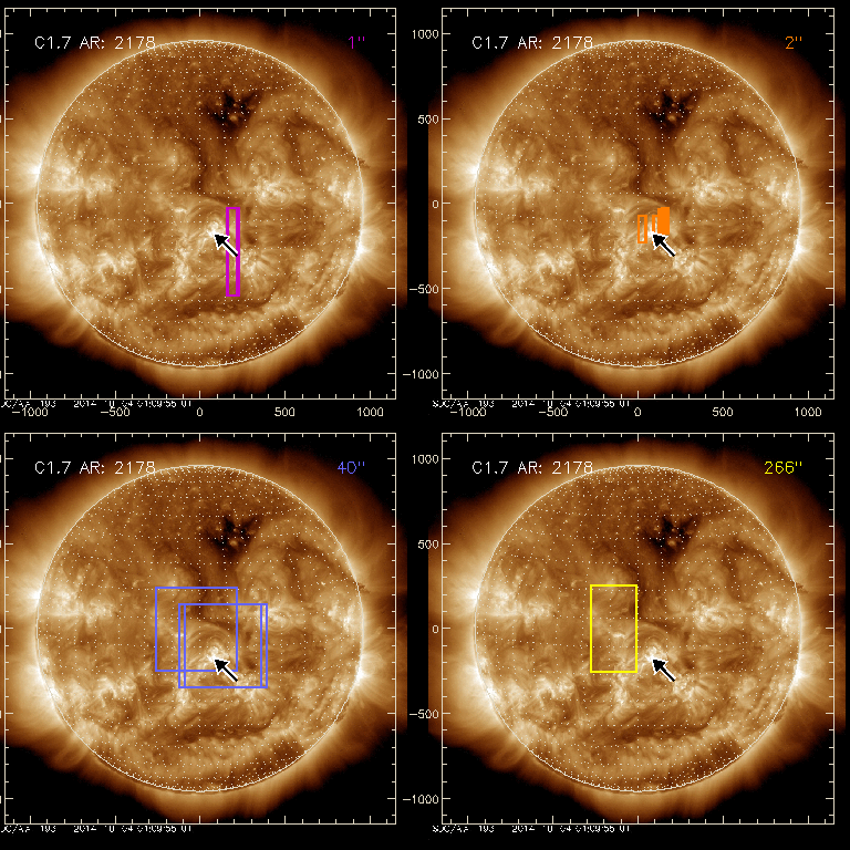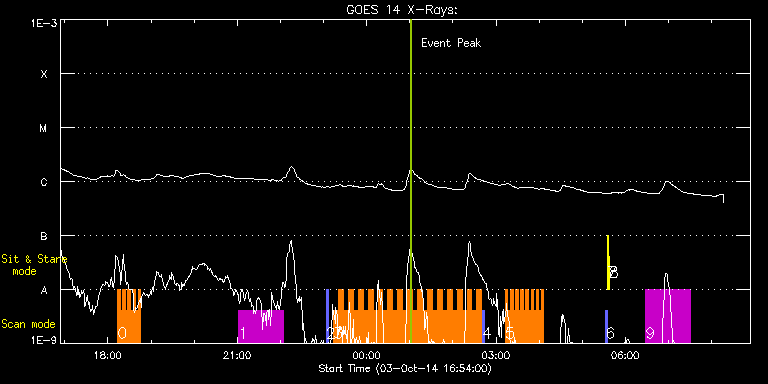 EIS Observation timeline overlay to GOES-Xray curve Code 1" 2" 40" 266" EIS Observations list for this event: STUDY ACRONYM ID DATE OBSERVED DESCRIPTION NOAA# TARGET 0 HH_Flare_raster_v6 | 43121 | 2014/10/03 18:13:34 | flare study | | Flare TIMELINE ID DATE OBSERVED FITS FILE XCEN (+W/-E) YCEN (+N/-S) DUR ----------------------------------------------------------------------------------------------------------------- 43121 | 2014/10/03 18:13:34.000 | eis_l0_20141003_181334.fits.gz | 24.41 | -155.05 | 3m31s 43121 | 2014/10/03 18:17:08.000 | eis_l0_20141003_181708.fits.gz | 24.95 | -154.97 | 3m31s 43121 | 2014/10/03 18:20:42.000 | eis_l0_20141003_182042.fits.gz | 25.49 | -154.90 | 3m31s 43121 | 2014/10/03 18:24:16.000 | eis_l0_20141003_182416.fits.gz | 26.03 | -154.82 | 3m32s 43121 | 2014/10/03 18:27:51.000 | eis_l0_20141003_182751.fits.gz | 26.57 | -154.90 | 3m31s 43121 | 2014/10/03 18:31:25.000 | eis_l0_20141003_183125.fits.gz | 27.12 | -154.97 | 3m31s 43121 | 2014/10/03 18:34:59.000 | eis_l0_20141003_183459.fits.gz | 27.73 | -154.82 | 3m31s 43121 | 2014/10/03 18:38:33.000 | eis_l0_20141003_183833.fits.gz | 28.20 | -154.74 | 3m32s 43121 | 2014/10/03 18:42:07.000 | eis_l0_20141003_184207.fits.gz | 28.89 | -155.05 | 3m32s 1 HPW021_VEL_120x512v1 | 43118 | 2014/10/03 21:01:56 | Flare study | | Active Region TIMELINE ID DATE OBSERVED FITS FILE XCEN (+W/-E) YCEN (+N/-S) DUR ----------------------------------------------------------------------------------------------------------------- 43118 | 2014/10/03 21:01:56.000 | eis_l0_20141003_210156.fits.gz | 198.60 | -286.67 | 1h1m53s 2 PRY_slot_context_v3 | 43131 | 2014/10/03 23:03:34 | HOP267 | 2177 | Active Region TIMELINE ID DATE OBSERVED FITS FILE XCEN (+W/-E) YCEN (+N/-S) DUR ----------------------------------------------------------------------------------------------------------------- 43131 | 2014/10/03 23:03:34.000 | eis_l0_20141003_230334.fits.gz | 120.72 | -106.07 | 2m57s 3 Cool_loop_narrow | 43132 | 2014/10/03 23:13:49 | HOP267 | | Active Region TIMELINE ID DATE OBSERVED FITS FILE XCEN (+W/-E) YCEN (+N/-S) DUR ----------------------------------------------------------------------------------------------------------------- 43132 | 2014/10/03 23:13:49.000 | eis_l0_20141003_231349.fits.gz | 136.58 | -106.07 | 6m50s 43132 | 2014/10/03 23:20:42.000 | eis_l0_20141003_232042.fits.gz | 137.66 | -106.30 | 6m50s 43132 | 2014/10/03 23:27:35.000 | eis_l0_20141003_232735.fits.gz | 138.74 | -106.07 | 6m50s 43132 | 2014/10/03 23:34:28.000 | eis_l0_20141003_233428.fits.gz | 139.75 | -106.07 | 6m50s 43132 | 2014/10/03 23:41:21.000 | eis_l0_20141003_234121.fits.gz | 140.83 | -106.07 | 6m50s 43132 | 2014/10/03 23:48:14.000 | eis_l0_20141003_234814.fits.gz | 141.99 | -105.99 | 6m50s 43132 | 2014/10/03 23:55:07.000 | eis_l0_20141003_235507.fits.gz | 142.99 | -105.76 | 6m50s 43132 | 2014/10/04 00:02:00.000 | eis_l0_20141004_000200.fits.gz | 144.08 | -105.99 | 6m50s 43132 | 2014/10/04 00:08:53.000 | eis_l0_20141004_000853.fits.gz | 145.16 | -105.99 | 6m50s 43132 | 2014/10/04 00:15:46.000 | eis_l0_20141004_001546.fits.gz | 146.24 | -106.07 | 6m50s 43132 | 2014/10/04 00:22:39.000 | eis_l0_20141004_002239.fits.gz | 147.24 | -105.99 | 6m50s 43132 | 2014/10/04 00:29:32.000 | eis_l0_20141004_002932.fits.gz | 148.25 | -105.84 | 6m50s 43132 | 2014/10/04 00:36:25.000 | eis_l0_20141004_003625.fits.gz | 149.33 | -105.84 | 6m50s 43132 | 2014/10/04 00:43:18.000 | eis_l0_20141004_004318.fits.gz | 150.41 | -105.92 | 6m50s 43132 | 2014/10/04 00:50:11.000 | eis_l0_20141004_005011.fits.gz | 151.49 | -106.07 | 6m50s 43132 | 2014/10/04 00:57:04.000 | eis_l0_20141004_005704.fits.gz | 152.57 | -105.84 | 6m50s 43132 | 2014/10/04 01:03:57.000 | eis_l0_20141004_010357.fits.gz | 153.65 | -105.84 | 6m50s 43132 | 2014/10/04 01:10:50.000 | eis_l0_20141004_011050.fits.gz | 154.66 | -105.92 | 6m50s 43132 | 2014/10/04 01:17:43.000 | eis_l0_20141004_011743.fits.gz | 155.74 | -105.68 | 6m50s 43132 | 2014/10/04 01:24:36.000 | eis_l0_20141004_012436.fits.gz | 156.82 | -105.76 | 6m50s 43132 | 2014/10/04 01:31:29.000 | eis_l0_20141004_013129.fits.gz | 157.83 | -105.68 | 6m50s 43132 | 2014/10/04 01:38:22.000 | eis_l0_20141004_013822.fits.gz | 158.91 | -105.61 | 6m50s 43132 | 2014/10/04 01:45:15.000 | eis_l0_20141004_014515.fits.gz | 159.99 | -105.61 | 6m50s 43132 | 2014/10/04 01:52:08.000 | eis_l0_20141004_015208.fits.gz | 161.07 | -105.68 | 6m50s 43132 | 2014/10/04 01:59:01.000 | eis_l0_20141004_015901.fits.gz | 162.00 | -105.68 | 6m50s 43132 | 2014/10/04 02:05:54.000 | eis_l0_20141004_020554.fits.gz | 163.08 | -105.61 | 6m50s 43132 | 2014/10/04 02:12:46.000 | eis_l0_20141004_021246.fits.gz | 164.08 | -105.61 | 6m51s 43132 | 2014/10/04 02:19:39.000 | eis_l0_20141004_021939.fits.gz | 165.24 | -105.61 | 6m51s 43132 | 2014/10/04 02:26:32.000 | eis_l0_20141004_022632.fits.gz | 166.32 | -105.45 | 6m50s 43132 | 2014/10/04 02:33:25.000 | eis_l0_20141004_023325.fits.gz | 167.33 | -105.37 | 6m50s 4 PRY_slot_context_v3 | 43133 | 2014/10/04 02:40:26 | HOP267 | 2178 | Active Region TIMELINE ID DATE OBSERVED FITS FILE XCEN (+W/-E) YCEN (+N/-S) DUR ----------------------------------------------------------------------------------------------------------------- 43133 | 2014/10/04 02:40:26.000 | eis_l0_20141004_024026.fits.gz | 154.17 | -105.37 | 2m56s 5 HH_Flare_raster_v6 | 43126 | 2014/10/04 03:13:03 | Flare study | 2178 | Flare TIMELINE ID DATE OBSERVED FITS FILE XCEN (+W/-E) YCEN (+N/-S) DUR ----------------------------------------------------------------------------------------------------------------- 43126 | 2014/10/04 03:13:03.000 | eis_l0_20141004_031303.fits.gz | 108.07 | -153.97 | 3m32s 43126 | 2014/10/04 03:16:37.000 | eis_l0_20141004_031637.fits.gz | 108.61 | -153.74 | 3m32s 43126 | 2014/10/04 03:20:12.000 | eis_l0_20141004_032012.fits.gz | 109.15 | -153.74 | 3m31s 43126 | 2014/10/04 03:23:46.000 | eis_l0_20141004_032346.fits.gz | 109.69 | -153.74 | 3m32s 43126 | 2014/10/04 03:27:21.000 | eis_l0_2014