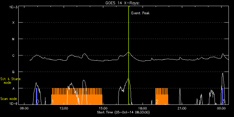 EIS Observation timeline overlay to GOES-Xray curve Code 1" 2" 40" 266" EIS Observations list for this event: STUDY ACRONYM ID DATE OBSERVED DESCRIPTION NOAA# TARGET 0 PRY_slot_context_v3 | 43175 | 2014/10/05 09:54:19 | HOP267 | 2182 | Active Region TIMELINE ID DATE OBSERVED FITS FILE XCEN (+W/-E) YCEN (+N/-S) DUR ----------------------------------------------------------------------------------------------------------------- 43175 | 2014/10/05 09:54:19.000 | eis_l0_20141005_095419.fits.gz | -95.42 | -291.77 | 2m56s 1 HH_Flare_raster_v6 | 43165 | 2014/10/05 11:03:33 | Flare study | | Flare TIMELINE ID DATE OBSERVED FITS FILE XCEN (+W/-E) YCEN (+N/-S) DUR ----------------------------------------------------------------------------------------------------------------- 43165 | 2014/10/05 11:03:33.000 | eis_l0_20141005_110333.fits.gz | 904.44 | -206.07 | 3m31s 43165 | 2014/10/05 11:07:07.000 | eis_l0_20141005_110707.fits.gz | 904.29 | -205.99 | 3m32s 43165 | 2014/10/05 11:10:41.000 | eis_l0_20141005_111041.fits.gz | 904.29 | -206.38 | 3m32s 43165 | 2014/10/05 11:14:16.000 | eis_l0_20141005_111416.fits.gz | 904.37 | -206.45 | 3m31s 43165 | 2014/10/05 11:17:50.000 | eis_l0_20141005_111750.fits.gz | 904.21 | -206.22 | 3m32s 43165 | 2014/10/05 11:21:25.000 | eis_l0_20141005_112125.fits.gz | 904.37 | -206.38 | 3m31s 43165 | 2014/10/05 11:24:58.000 | eis_l0_20141005_112458.fits.gz | 904.29 | -206.30 | 3m32s 43165 | 2014/10/05 11:28:33.000 | eis_l0_20141005_112833.fits.gz | 904.37 | -206.22 | 3m31s 43165 | 2014/10/05 11:32:07.000 | eis_l0_20141005_113207.fits.gz | 904.29 | -206.30 | 3m31s 43165 | 2014/10/05 11:35:41.000 | eis_l0_20141005_113541.fits.gz | 904.37 | -206.22 | 3m32s 43165 | 2014/10/05 11:39:16.000 | eis_l0_20141005_113916.fits.gz | 904.29 | -206.38 | 3m10s 43165 | 2014/10/05 11:43:11.000 | eis_l0_20141005_114311.fits.gz | 904.21 | -206.45 | 3m10s 43165 | 2014/10/05 11:46:24.000 | eis_l0_20141005_114624.fits.gz | 904.37 | -206.45 | 3m31s 43165 | 2014/10/05 11:49:58.000 | eis_l0_20141005_114958.fits.gz | 904.29 | -206.30 | 3m32s 43165 | 2014/10/05 11:53:33.000 | eis_l0_20141005_115333.fits.gz | 904.29 | -206.22 | 3m31s 43165 | 2014/10/05 11:57:07.000 | eis_l0_20141005_115707.fits.gz | 904.29 | -206.22 | 3m31s 43165 | 2014/10/05 12:00:41.000 | eis_l0_20141005_120041.fits.gz | 904.29 | -206.22 | 3m32s 43165 | 2014/10/05 12:04:16.000 | eis_l0_20141005_120416.fits.gz | 904.29 | -206.22 | 3m31s 43165 | 2014/10/05 12:07:50.000 | eis_l0_20141005_120750.fits.gz | 904.29 | -206.22 | 3m31s 43165 | 2014/10/05 12:11:24.000 | eis_l0_20141005_121124.fits.gz | 904.29 | -206.38 | 3m31s 43165 | 2014/10/05 12:14:58.000 | eis_l0_20141005_121458.fits.gz | 904.37 | -206.30 | 3m32s 43165 | 2014/10/05 12:18:33.000 | eis_l0_20141005_121833.fits.gz | 904.21 | -206.30 | 3m31s 43165 | 2014/10/05 12:22:07.000 | eis_l0_20141005_122207.fits.gz | 904.29 | -206.30 | 3m32s 43165 | 2014/10/05 12:25:42.000 | eis_l0_20141005_122542.fits.gz | 904.37 | -206.38 | 3m31s 43165 | 2014/10/05 12:29:16.000 | eis_l0_20141005_122916.fits.gz | 904.44 | -206.38 | 3m31s 43165 | 2014/10/05 12:32:50.000 | eis_l0_20141005_123250.fits.gz | 904.29 | -206.30 | 3m32s 43165 | 2014/10/05 12:36:25.000 | eis_l0_20141005_123625.fits.gz | 904.37 | -206.22 | 3m31s 43165 | 2014/10/05 12:39:59.000 | eis_l0_20141005_123959.fits.gz | 904.21 | -206.30 | 3m31s 43165 | 2014/10/05 12:43:33.000 | eis_l0_20141005_124333.fits.gz | 904.29 | -206.22 | 3m31s 43165 | 2014/10/05 12:47:07.000 | eis_l0_20141005_124707.fits.gz | 904.29 | -206.14 | 3m32s 43165 | 2014/10/05 12:50:41.000 | eis_l0_20141005_125041.fits.gz | 904.37 | -206.30 | 3m32s 43165 | 2014/10/05 12:54:16.000 | eis_l0_20141005_125416.fits.gz | 904.37 | -206.38 | 3m31s 43165 | 2014/10/05 12:57:50.000 | eis_l0_20141005_125750.fits.gz | 904.37 | -206.38 | 3m32s 43165 | 2014/10/05 13:01:25.000 | eis_l0_20141005_130125.fits.gz | 904.37 | -206.30 | 3m31s 43165 | 2014/10/05 13:04:58.000 | eis_l0_20141005_130458.fits.gz | 904.37 | -206.30 | 3m32s 43165 | 2014/10/05 13:08:33.000 | eis_l0_20141005_130833.fits.gz | 904.29 | -206.45 | 3m31s 43165 | 2014/10/05 13:12:07.000 | eis_l0_20141005_131207.fits.gz | 904.29 | -206.30 | 3m31s 43165 | 2014/10/05 13:15:41.000 | eis_l0_20141005_131541.fits.gz | 904.37 | -206.38 | 3m31s 43165 | 2014/10/05 13:19:15.000 | eis_l0_20141005_131915.fits.gz | 904.21 | -206.30 | 3m31s 43165 | 2014/10/05 13:22:49.000 | eis_l0_20141005_132249.fits.gz | 904.29 | -206.38 | 3m32s 43165 | 2014/10/05 13:26:24.000 | eis_l0_20141005_132624.fits.gz | 904.29 | -206.30 | 3m32s 43165 | 2014/10/05 13:29:58.000 | eis_l0_20141005_132958.fits.gz | 904.37 | -206.22 | 3m32s 43165 | 2014/10/05 13:33:33.000 | eis_l0_20141005_133333.fits.gz | 904.37 | -206.07 | 3m32s 43165 | 2014/10/05 13:37:08.000 | eis_l0_20141005_133708.fits.gz | 904.29 | -206.22 | 3m31s 43165 | 2014/10/05 13:40:42.000 | eis_l0_20141005_134042.fits.gz | 904.21 | -206.22 | 3m32s 43165 | 2014/10/05 13:44:17.000 | eis_l0_20141005_134417.fits.gz | 904.37 | -206.38 | 3m31s 43165 | 2014/10/05 13:47:51.000 | eis_l0_20141005_134751.fits.gz | 904.37 | -206.30 | 3m31s 43165 | 2014/10/05 13:51:25.000 | eis_l0_20141005_135125.fits.gz | 904.29 | -206.38 | 3m31s 43165 | 2014/10/05 13:54:59.000 | eis_l0_20141005_135459.fits.gz | 904.37 | -206.38 | 3m32s 43165 | 2014/10/05 13:58:33.000 | eis_l0_20141005_135833.fits.gz | 904.29 | -206.14 | 3m32s 43165 | 2014/10/05 14:02:08.000 | eis_l0_20141005_140208.fits.gz | 904.37 | -206.38 | 3m32s 43165 | 2014/10/05 14:05:43.000 | eis_l0_20141005_140543.fits.gz | 904.29 | -206.30 | 3m31s 43165 | 2014/10/05 14:09:17.000 | eis_l0_20141005_140917.fits.gz | 904.37 | -206.45 | 3m31s 43165 | 2014/10/05 14:12:50.000 | eis_l0_20141005_141250.fits.gz | 904.37 | -206.30 | 3m33s 43165 | 2014/10/05 14:16:26.000 | eis_l0_20141005_141626.fits.gz | 904.29 | -206.22 | 3m31s 43165 | 2014/10/05 14:20:00.000 | eis_l0_20141005_142000.fits.gz | 904.29 | -206.30 | 3m31s 43165 | 2014/10/05 14:23:34.000 | eis_l0_20141005_142334.fits.gz | 904.