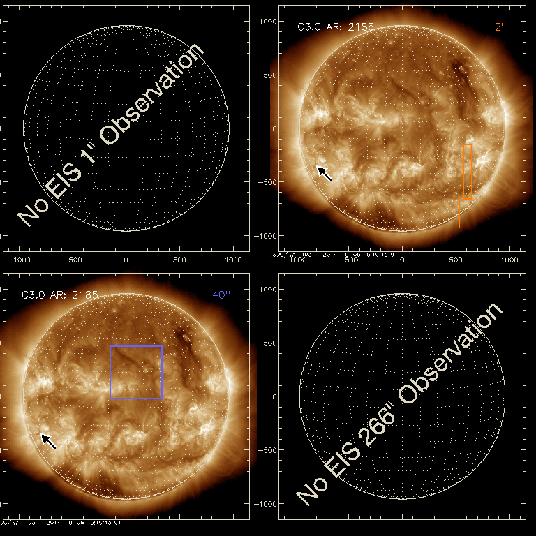 EIS Observation timeline overlay to GOES-Xray curve Code 1" 2" 40" 266" EIS Observations list for this event: STUDY ACRONYM ID DATE OBSERVED DESCRIPTION NOAA# TARGET 0 YKK_EqCHab_160x512 | 43161 | 2014/10/06 11:03:26 | Filament Footprints | 2181 | Quiet Sun TIMELINE ID DATE OBSERVED FITS FILE XCEN (+W/-E) YCEN (+N/-S) DUR ----------------------------------------------------------------------------------------------------------------- 43161 | 2014/10/06 11:03:26.000 | eis_l0_20141006_110326.fits.gz | 613.58 | -406.95 | 4h29m10s 1 vhh_slowar_sas_1h6m | 43150 | 2014/10/06 18:08:12 | HOP249 | | Active Region TIMELINE ID DATE OBSERVED FITS FILE XCEN (+W/-E) YCEN (+N/-S) DUR ----------------------------------------------------------------------------------------------------------------- 43150 | 2014/10/06 18:08:12.000 | eis_l0_20141006_180812.fits.gz | 531.96 | -784.68 | 1h2m49s 43150 | 2014/10/06 19:11:04.000 | eis_l0_20141006_191104.fits.gz | 531.88 | -784.68 | 1h2m49s 43150 | 2014/10/06 20:13:56.000 | eis_l0_20141006_201356.fits.gz | 531.80 | -784.61 | 1h2m53s 2 PRY_slot_context_v3 | 43155 | 2014/10/07 00:03:18 | HOP267 | | Active Region TIMELINE ID DATE OBSERVED FITS FILE XCEN (+W/-E) YCEN (+N/-S) DUR ----------------------------------------------------------------------------------------------------------------- 43155 | 2014/10/07 00:03:18.000 | eis_l0_20141007_000318.fits.gz | 94.22 | 217.75 | 2m57s : Check study information : Download file : View thumbnails For this event, also check for:
