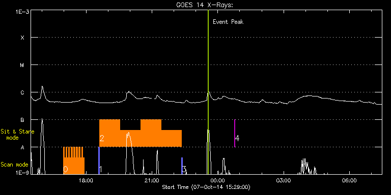 EIS Observation timeline overlay to GOES-Xray curve Code 1" 2" 40" 266" EIS Observations list for this event: STUDY ACRONYM ID DATE OBSERVED DESCRIPTION NOAA# TARGET 0 HH_Flare_raster_v6 | 43232 | 2014/10/07 16:57:27 | flare study | 2178 | Flare TIMELINE ID DATE OBSERVED FITS FILE XCEN (+W/-E) YCEN (+N/-S) DUR ----------------------------------------------------------------------------------------------------------------- 43232 | 2014/10/07 16:57:27.000 | eis_l0_20141007_165727.fits.gz | 776.96 | -104.53 | 3m31s 43232 | 2014/10/07 17:01:01.000 | eis_l0_20141007_170101.fits.gz | 777.27 | -104.53 | 3m32s 43232 | 2014/10/07 17:04:35.000 | eis_l0_20141007_170435.fits.gz | 777.66 | -104.53 | 3m32s 43232 | 2014/10/07 17:08:10.000 | eis_l0_20141007_170810.fits.gz | 777.89 | -104.38 | 3m32s 43232 | 2014/10/07 17:11:44.000 | eis_l0_20141007_171144.fits.gz | 778.27 | -104.30 | 3m32s 43232 | 2014/10/07 17:15:19.000 | eis_l0_20141007_171519.fits.gz | 778.43 | -104.30 | 3m31s 43232 | 2014/10/07 17:18:52.000 | eis_l0_20141007_171852.fits.gz | 778.81 | -104.07 | 3m32s 43232 | 2014/10/07 17:22:27.000 | eis_l0_20141007_172227.fits.gz | 779.12 | -104.14 | 3m32s 43232 | 2014/10/07 17:26:01.000 | eis_l0_20141007_172601.fits.gz | 779.43 | -104.22 | 3m32s 43232 | 2014/10/07 17:29:35.000 | eis_l0_20141007_172935.fits.gz | 779.66 | -103.99 | 3m32s 43232 | 2014/10/07 17:33:10.000 | eis_l0_20141007_173310.fits.gz | 779.97 | -103.99 | 3m31s 43232 | 2014/10/07 17:36:44.000 | eis_l0_20141007_173644.fits.gz | 780.20 | -103.84 | 3m31s 43232 | 2014/10/07 17:40:18.000 | eis_l0_20141007_174018.fits.gz | 780.51 | -103.76 | 3m31s 43232 | 2014/10/07 17:43:52.000 | eis_l0_20141007_174352.fits.gz | 780.82 | -103.84 | 3m31s 43232 | 2014/10/07 17:47:26.000 | eis_l0_20141007_174726.fits.gz | 781.13 | -103.60 | 3m32s 43232 | 2014/10/07 17:51:01.000 | eis_l0_20141007_175101.fits.gz | 781.44 | -103.76 | 3m30s 1 PRY_slot_context_v3 | 43234 | 2014/10/07 18:33:50 | flare study | 2178 | Active Region TIMELINE ID DATE OBSERVED FITS FILE XCEN (+W/-E) YCEN (+N/-S) DUR ----------------------------------------------------------------------------------------------------------------- 43234 | 2014/10/07 18:33:50.000 | eis_l0_20141007_183350.fits.gz | 800.88 | -103.14 | 2m56s 2 FLAREDOP_EIS | 43235 | 2014/10/07 18:37:12 | Flare study | | Flare TIMELINE ID DATE OBSERVED FITS FILE XCEN (+W/-E) YCEN (+N/-S) DUR ----------------------------------------------------------------------------------------------------------------- 43235 | 2014/10/07 18:37:12.000 | eis_l0_20141007_183712.fits.gz | 795.63 | -103.14 | 55m49s 43235 | 2014/10/07 19:33:03.000 | eis_l0_20141007_193303.fits.gz | 800.11 | -102.21 | 55m49s 43235 | 2014/10/07 20:28:54.000 | eis_l0_20141007_202854.fits.gz | 804.44 | -101.21 | 55m41s 43235 | 2014/10/07 21:24:48.000 | eis_l0_20141007_212448.fits.gz | 808.84 | -100.51 | 55m50s 3 PRY_slot_context_v3 | 43236 | 2014/10/07 22:20:49 | Flare study | 2178 | Active Region TIMELINE ID DATE OBSERVED FITS FILE XCEN (+W/-E) YCEN (+N/-S) DUR ----------------------------------------------------------------------------------------------------------------- 43236 | 2014/10/07 22:20:49.000 | eis_l0_20141007_222049.fits.gz | 818.49 | -99.51 | 2m57s 4 regcal076 | 43237 | 2014/10/08 00:46:12 | Flatfield, 1 exposure, led 100ms, ccd | 2178 | Engineering TIMELINE ID DATE OBSERVED FITS FILE XCEN (+W/-E) YCEN (+N/-S) DUR ----------------------------------------------------------------------------------------------------------------- 43237 | 2014/10/08 00:46:12.000 | eis_l0_20141008_004612.fits.gz | 863.85 | -142.35 | 1s : Check study information : Download file : View thumbnails For this event, also check for: