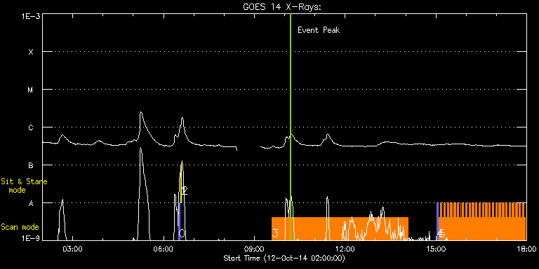 EIS Observation timeline overlay to GOES-Xray curve Code 1" 2" 40" 266" EIS Observations list for this event: STUDY ACRONYM ID DATE OBSERVED DESCRIPTION NOAA# TARGET 0 PRY_slot_contextLITE | 43269 | 2014/10/12 06:30:20 | EIS pointing monitoring. | | Active Region TIMELINE ID DATE OBSERVED FITS FILE XCEN (+W/-E) YCEN (+N/-S) DUR ----------------------------------------------------------------------------------------------------------------- 43269 | 2014/10/12 06:30:20.000 | eis_l0_20141012_063020.fits.gz | -15.21 | -0.19 | 2m56s 1 Alignment_266 | 43270 | 2014/10/12 06:33:34 | EIS pointing monitoring. | | Quiet Sun TIMELINE ID DATE OBSERVED FITS FILE XCEN (+W/-E) YCEN (+N/-S) DUR ----------------------------------------------------------------------------------------------------------------- 43270 | 2014/10/12 06:33:34.000 | eis_l0_20141012_063334.fits.gz | -132.57 | -0.27 | 1m22s 2 XRT_synop_AIA | 43271 | 2014/10/12 06:35:41 | EIS pointing monitoring. | | Quiet Sun TIMELINE ID DATE OBSERVED FITS FILE XCEN (+W/-E) YCEN (+N/-S) DUR ----------------------------------------------------------------------------------------------------------------- 43271 | 2014/10/12 06:35:41.000 | eis_l0_20141012_063541.fits.gz | -132.49 | -0.42 | 11s 3 YKK_EqCHab_160x512 | 43278 | 2014/10/12 09:35:19 | Composition of active region and filam | | Quiet Sun TIMELINE ID DATE OBSERVED FITS FILE XCEN (+W/-E) YCEN (+N/-S) DUR ----------------------------------------------------------------------------------------------------------------- 43278 | 2014/10/12 09:35:19.000 | eis_l0_20141012_093519.fits.gz | 625.65 | 198.33 | 4h29m11s 4 PRY_slot_contextLITE | 43267 | 2014/10/12 15:02:19 | Context image for flare observations w | 2182 | Active Region TIMELINE ID DATE OBSERVED FITS FILE XCEN (+W/-E) YCEN (+N/-S) DUR ----------------------------------------------------------------------------------------------------------------- 43267 | 2014/10/12 15:02:19.000 | eis_l0_20141012_150219.fits.gz | 888.55 | -270.68 | 2m57s 5 qub_hi-cad_flare_v2 | 43268 | 2014/10/12 15:05:41 | Flare observations with DST, IRIS, ROS | 2182 | Flare TIMELINE ID DATE OBSERVED FITS FILE XCEN (+W/-E) YCEN (+N/-S) DUR ----------------------------------------------------------------------------------------------------------------- 43268 | 2014/10/12 15:05:41.000 | eis_l0_20141012_150541.fits.gz | 903.29 | -270.45 | 3m17s 43268 | 2014/10/12 15:09:01.000 | eis_l0_20141012_150901.fits.gz | 903.29 | -270.45 | 3m16s 43268 | 2014/10/12 15:12:19.000 | eis_l0_20141012_151219.fits.gz | 903.29 | -270.37 | 3m16s 43268 | 2014/10/12 15:15:38.000 | eis_l0_20141012_151538.fits.gz | 903.37 | -270.45 | 3m16s 43268 | 2014/10/12 15:18:57.000 | eis_l0_20141012_151857.fits.gz | 903.29 | -270.75 | 3m16s 43268 | 2014/10/12 15:22:16.000 | eis_l0_20141012_152216.fits.gz | 903.37 | -270.52 | 3m16s 43268 | 2014/10/12 15:25:35.000 | eis_l0_20141012_152535.fits.gz | 903.29 | -270.68 | 3m16s 43268 | 2014/10/12 15:28:54.000 | eis_l0_20141012_152854.fits.gz | 903.29 | -270.37 | 3m16s 43268 | 2014/10/12 15:32:12.000 | eis_l0_20141012_153212.fits.gz | 903.29 | -270.45 | 3m17s 43268 | 2014/10/12 15:35:31.000 | eis_l0_20141012_153531.fits.gz | 903.37 | -270.45 | 3m16s 43268 | 2014/10/12 15:38:50.000 | eis_l0_20141012_153850.fits.gz | 903.37 | -270.60 | 3m16s 43268 | 2014/10/12 15:42:09.000 | eis_l0_20141012_154209.fits.gz | 903.37 | -270.60 | 3m16s 43268 | 2014/10/12 15:45:28.000 | eis_l0_20141012_154528.fits.gz | 903.29 | -270.60 | 3m15s 43268 | 2014/10/12 15:48:46.000 | eis_l0_20141012_154846.fits.gz | 903.37 | -270.45 | 49s 43268 | 2014/10/12 15:49:31.000 | eis_l0_20141012_154931.fits.gz | 903.29 | -270.52 | 2m31s 43268 | 2014/10/12 15:52:05.000 | eis_l0_20141012_155205.fits.gz | 903.21 | -270.52 | 3m16s 43268 | 2014/10/12 15:55:24.000 | eis_l0_20141012_155524.fits.gz | 903.37 | -270.52 | 3m16s 43268 | 2014/10/12 15:58:42.000 | eis_l0_20141012_155842.fits.gz | 903.29 | -270.60 | 3m16s 43268 | 2014/10/12 16:02:01.000 | eis_l0_20141012_160201.fits.gz | 903.29 | -270.52 | 3m16s 43268 | 2014/10/12 16:05:20.000 | eis_l0_20141012_160520.fits.gz | 903.29 | -270.60 | 3m16s 43268 | 2014/10/12 16:08:39.000 | eis_l0_20141012_160839.fits.gz | 903.29 | -270.52 | 3m16s 43268 | 2014/10/12 16:11:57.000 | eis_l0_20141012_161157.fits.gz | 903.29 | -270.60 | 3m17s 43268 | 2014/10/12 16:15:16.000 | eis_l0_20141012_161516.fits.gz | 903.37 | -270.60 | 3m16s 43268 | 2014/10/12 16:18:35.000 | eis_l0_20141012_161835.fits.gz | 903.29 | -270.45 | 3m16s 43268 | 2014/10/12 16:21:53.000 | eis_l0_20141012_162153.fits.gz | 903.29 | -270.60 | 3m16s 43268 | 2014/10/12 16:25:12.000 | eis_l0_20141012_162512.fits.gz | 903.29 | -270.52 | 3m16s 43268 | 2014/10/12 16:28:30.000 | eis_l0_20141012_162830.fits.gz | 903.29 | -270.45 | 3m17s 43268 | 2014/10/12 16:31:50.000 | eis_l0_20141012_163150.fits.gz | 903.37 | -270.52 | 3m15s 43268 | 2014/10/12 16:35:08.000 | eis_l0_20141012_163508.fits.gz | 903.29 | -270.52 | 3m16s 43268 | 2014/10/12 16:38:27.000 | eis_l0_20141012_163827.fits.gz | 903.29 | -270.75 | 3m16s 43268 | 2014/10/12 16:41:46.000 | eis_l0_20141012_164146.fits.gz | 903.29 | -270.52 | 3m15s 43268 | 2014/10/12 16:45:04.000 | eis_l0_20141012_164504.fits.gz | 903.21 | -270.45 | 3m15s 43268 | 2014/10/12 16:48:22.000 | eis_l0_20141012_164822.fits.gz | 903.37 | -270.37 | 3m16s 43268 | 2014/10/12 16:51:41.000 | eis_l0_20141012_165141.fits.gz | 903.21 | -270.60 | 3m16s 43268 | 2014/10/12 16:55:00.000 | eis_l0_20141012_165500.fits.gz | 903.37 | -270.68 | 3m16s 43268 | 2014/10/12 16:58:19.000 | eis_l0_20141012_165819.fits.gz | 903.29 | -270.45 | 3m17s 43268 | 2014/10/12 17:01:39.000 | eis_l0_20141012_170139.fits.gz | 903.37 | -270.52 | 3m15s 43268 | 2014/10/12 17:04:57.000 | eis_l0_20141012_170457.fits.gz | 903.29 | -270.60 | 3m16s 43268 | 2014/10/12 17:08:16.000 | eis_l0_20141012_170816.fits.gz | 903.37 | -270.68 | 3m15s 43268 | 2014/10/12 17:11:34.000 | eis_l0_20141012_171134.fits.gz | 903.37 | -270.37 | 3m16s 43268 | 2014/10/1