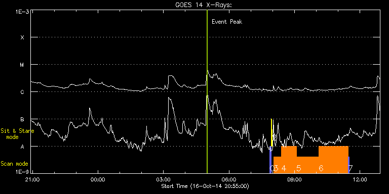 EIS Observation timeline overlay to GOES-Xray curve Code 1" 2" 40" 266" EIS Observations list for this event: STUDY ACRONYM ID DATE OBSERVED DESCRIPTION NOAA# TARGET 0 PRY_slot_contextLITE | 43312 | 2014/10/17 07:52:20 | EIS pointing monitoring. | | Active Region TIMELINE ID DATE OBSERVED FITS FILE XCEN (+W/-E) YCEN (+N/-S) DUR ----------------------------------------------------------------------------------------------------------------- 43312 | 2014/10/17 07:52:20.000 | eis_l0_20141017_075220.fits.gz | -15.14 | -0.42 | 2m56s 1 Alignment_266 | 43313 | 2014/10/17 07:55:34 | EIS pointing monitoring. | | Quiet Sun TIMELINE ID DATE OBSERVED FITS FILE XCEN (+W/-E) YCEN (+N/-S) DUR ----------------------------------------------------------------------------------------------------------------- 43313 | 2014/10/17 07:55:34.000 | eis_l0_20141017_075534.fits.gz | -132.49 | -0.35 | 1m22s 2 XRT_synop_AIA | 43314 | 2014/10/17 07:58:09 | EIS pointing monitoring. | | Quiet Sun TIMELINE ID DATE OBSERVED FITS FILE XCEN (+W/-E) YCEN (+N/-S) DUR ----------------------------------------------------------------------------------------------------------------- 43314 | 2014/10/17 07:58:09.000 | eis_l0_20141017_075809.fits.gz | -132.57 | -0.35 | 10s 3 CompS_NonMax_30 | 43306 | 2014/10/17 08:02:20 | Searching for Non-Maxwellian Distribut | | Quiet Sun TIMELINE ID DATE OBSERVED FITS FILE XCEN (+W/-E) YCEN (+N/-S) DUR ----------------------------------------------------------------------------------------------------------------- 43306 | 2014/10/17 08:02:20.000 | eis_l0_20141017_080220.fits.gz | -9958.81 | -9966.20 | 21m14s 4 CompS_NonMax_60 | 43307 | 2014/10/17 08:23:40 | Searching for Non-Maxwellian Distribut | | Quiet Sun TIMELINE ID DATE OBSERVED FITS FILE XCEN (+W/-E) YCEN (+N/-S) DUR ----------------------------------------------------------------------------------------------------------------- 43307 | 2014/10/17 08:23:40.000 | eis_l0_20141017_082340.fits.gz | -9958.81 | -9966.20 | 41m15s 5 CompS_NonMax_90 | 43308 | 2014/10/17 09:05:01 | Searching for Non-Maxwellian Distribut | | Quiet Sun TIMELINE ID DATE OBSERVED FITS FILE XCEN (+W/-E) YCEN (+N/-S) DUR ----------------------------------------------------------------------------------------------------------------- 43308 | 2014/10/17 09:05:01.000 | eis_l0_20141017_090501.fits.gz | -9958.81 | -9966.20 | 1h1m14s 6 CompS_NonMax_120 | 43309 | 2014/10/17 10:06:22 | Searching for Non-Maxwellian Distribut | | Quiet Sun TIMELINE ID DATE OBSERVED FITS FILE XCEN (+W/-E) YCEN (+N/-S) DUR ----------------------------------------------------------------------------------------------------------------- 43309 | 2014/10/17 10:06:22.000 | eis_l0_20141017_100622.fits.gz | -9959.06 | -9966.20 | 1h21m14s 7 PRY_slot_context_v3 | 43310 | 2014/10/17 11:27:48 | Searching for Non-Maxwellian Distribut | | Active Region TIMELINE ID DATE OBSERVED FITS FILE XCEN (+W/-E) YCEN (+N/-S) DUR ----------------------------------------------------------------------------------------------------------------- 43310 | 2014/10/17 11:27:48.000 | eis_l0_20141017_112748.fits.gz | -9891.68 | -9966.20 | 2m56s : Check study information : Download file : View thumbnails For this event, also check for: