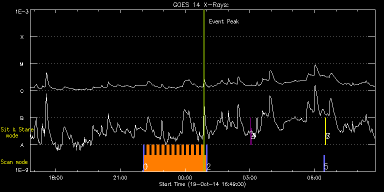 EIS Observation timeline overlay to GOES-Xray curve Code 1" 2" 40" 266" EIS Observations list for this event: STUDY ACRONYM ID DATE OBSERVED DESCRIPTION NOAA# TARGET 0 PRY_slot_context_v3 | 43362 | 2014/10/19 22:03:19 | HOP267 | | Active Region TIMELINE ID DATE OBSERVED FITS FILE XCEN (+W/-E) YCEN (+N/-S) DUR ----------------------------------------------------------------------------------------------------------------- 43362 | 2014/10/19 22:03:19.000 | eis_l0_20141019_220319.fits.gz | -361.19 | -187.57 | 2m57s 1 Cool_loop_narrow | 43363 | 2014/10/19 22:06:41 | HOP267 | | Active Region TIMELINE ID DATE OBSERVED FITS FILE XCEN (+W/-E) YCEN (+N/-S) DUR ----------------------------------------------------------------------------------------------------------------- 43363 | 2014/10/19 22:06:41.000 | eis_l0_20141019_220641.fits.gz | -466.87 | -237.49 | 6m51s 43363 | 2014/10/19 22:13:34.000 | eis_l0_20141019_221334.fits.gz | -465.94 | -237.73 | 6m51s 43363 | 2014/10/19 22:20:28.000 | eis_l0_20141019_222028.fits.gz | -464.86 | -237.65 | 6m50s 43363 | 2014/10/19 22:27:21.000 | eis_l0_20141019_222721.fits.gz | -463.93 | -237.80 | 6m49s 43363 | 2014/10/19 22:34:13.000 | eis_l0_20141019_223413.fits.gz | -462.85 | -237.96 | 6m50s 43363 | 2014/10/19 22:41:06.000 | eis_l0_20141019_224106.fits.gz | -462.00 | -237.88 | 6m50s 43363 | 2014/10/19 22:47:59.000 | eis_l0_20141019_224759.fits.gz | -460.92 | -237.96 | 6m50s 43363 | 2014/10/19 22:54:52.000 | eis_l0_20141019_225452.fits.gz | -460.07 | -237.80 | 6m50s 43363 | 2014/10/19 23:01:45.000 | eis_l0_20141019_230145.fits.gz | -458.91 | -237.88 | 6m50s 43363 | 2014/10/19 23:08:38.000 | eis_l0_20141019_230838.fits.gz | -457.98 | -237.96 | 6m50s 43363 | 2014/10/19 23:15:31.000 | eis_l0_20141019_231531.fits.gz | -456.98 | -237.96 | 6m50s 43363 | 2014/10/19 23:22:24.000 | eis_l0_20141019_232224.fits.gz | -455.98 | -238.03 | 6m50s 43363 | 2014/10/19 23:29:17.000 | eis_l0_20141019_232917.fits.gz | -454.97 | -237.96 | 6m50s 43363 | 2014/10/19 23:36:10.000 | eis_l0_20141019_233610.fits.gz | -453.97 | -238.03 | 6m50s 43363 | 2014/10/19 23:43:03.000 | eis_l0_20141019_234303.fits.gz | -452.96 | -238.03 | 6m50s 43363 | 2014/10/19 23:49:56.000 | eis_l0_20141019_234956.fits.gz | -452.04 | -238.11 | 6m50s 43363 | 2014/10/19 23:56:48.000 | eis_l0_20141019_235648.fits.gz | -450.95 | -238.26 | 6m51s 43363 | 2014/10/20 00:03:41.000 | eis_l0_20141020_000341.fits.gz | -449.95 | -238.34 | 6m51s 43363 | 2014/10/20 00:10:34.000 | eis_l0_20141020_001034.fits.gz | -449.02 | -238.19 | 6m50s 43363 | 2014/10/20 00:17:27.000 | eis_l0_20141020_001727.fits.gz | -448.02 | -238.34 | 6m50s 43363 | 2014/10/20 00:24:20.000 | eis_l0_20141020_002420.fits.gz | -447.02 | -238.42 | 6m50s 43363 | 2014/10/20 00:31:13.000 | eis_l0_20141020_003113.fits.gz | -446.09 | -238.34 | 6m50s 43363 | 2014/10/20 00:38:06.000 | eis_l0_20141020_003806.fits.gz | -445.08 | -238.34 | 6m50s 43363 | 2014/10/20 00:44:59.000 | eis_l0_20141020_004459.fits.gz | -444.00 | -238.26 | 6m50s 43363 | 2014/10/20 00:51:52.000 | eis_l0_20141020_005152.fits.gz | -443.08 | -238.34 | 6m51s 2 PRY_slot_context_v3 | 43364 | 2014/10/20 00:58:53 | HOP267 | 2193 | Active Region TIMELINE ID DATE OBSERVED FITS FILE XCEN (+W/-E) YCEN (+N/-S) DUR ----------------------------------------------------------------------------------------------------------------- 43364 | 2014/10/20 00:58:53.000 | eis_l0_20141020_005853.fits.gz | -336.18 | -188.50 | 2m57s 3 regcal078 | 43367 | 2014/10/20 03:03:10 | Dark exposures, 0s, 2 exposures, botto | | Engineering TIMELINE ID DATE OBSERVED FITS FILE XCEN (+W/-E) YCEN (+N/-S) DUR ----------------------------------------------------------------------------------------------------------------- 43367 | 2014/10/20 03:03:10.000 | eis_l0_20141020_030310.fits.gz | -671.91 | -618.43 | 2s 4 regcal079 | 43368 | 2014/10/20 03:04:03 | Dark exposures, 0s, 2 exposures, top c | | Engineering TIMELINE ID DATE OBSERVED FITS FILE XCEN (+W/-E) YCEN (+N/-S) DUR ----------------------------------------------------------------------------------------------------------------- 43368 | 2014/10/20 03:04:03.000 | eis_l0_20141020_030403.fits.gz | -671.83 | -107.28 | 2s 5 PRY_slot_contextLITE | 43335 | 2014/10/20 06:26:13 | alignment | 2193 | Active Region TIMELINE ID DATE OBSERVED FITS FILE XCEN (+W/-E) YCEN (+N/-S) DUR ----------------------------------------------------------------------------------------------------------------- 43335 | 2014/10/20 06:26:13.000 | eis_l0_20141020_062613.fits.gz | -23.87 | -4.42 | 2m56s 6 Alignment_266 | 43336 | 2014/10/20 06:29:27 | alignment | 2193 | Quiet Sun TIMELINE ID DATE OBSERVED FITS FILE XCEN (+W/-E) YCEN (+N/-S) DUR ----------------------------------------------------------------------------------------------------------------- 43336 | 2014/10/20 06:29:27.000 | eis_l0_20141020_062927.fits.gz | -141.55 | -4.35 | 1m23s 7 XRT_synop_AIA | 43337 | 2014/10/20 06:31:35 | alignment | 2193 | Quiet Sun TIMELINE ID DATE OBSERVED FITS FILE XCEN (+W/-E) YCEN (+N/-S) DUR ----------------------------------------------------------------------------------------------------------------- 43337 | 2014/10/20 06:31:35.000 | eis_l0_20141020_063135.fits.gz | -141.47 | -4.58 | 10s : Check study information : Download file : View thumbnails For this event, also check for: