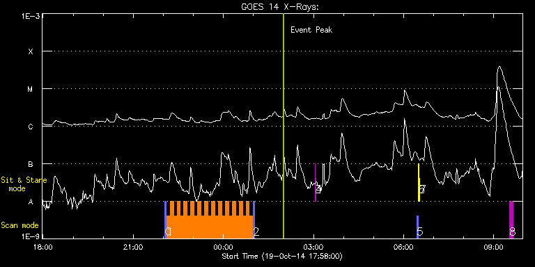 EIS Observation timeline overlay to GOES-Xray curve