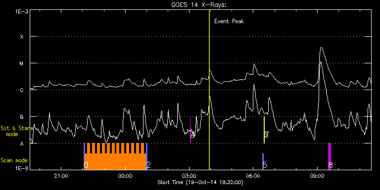 EIS Observation timeline overlay to GOES-Xray curve